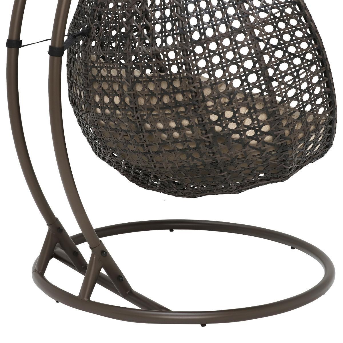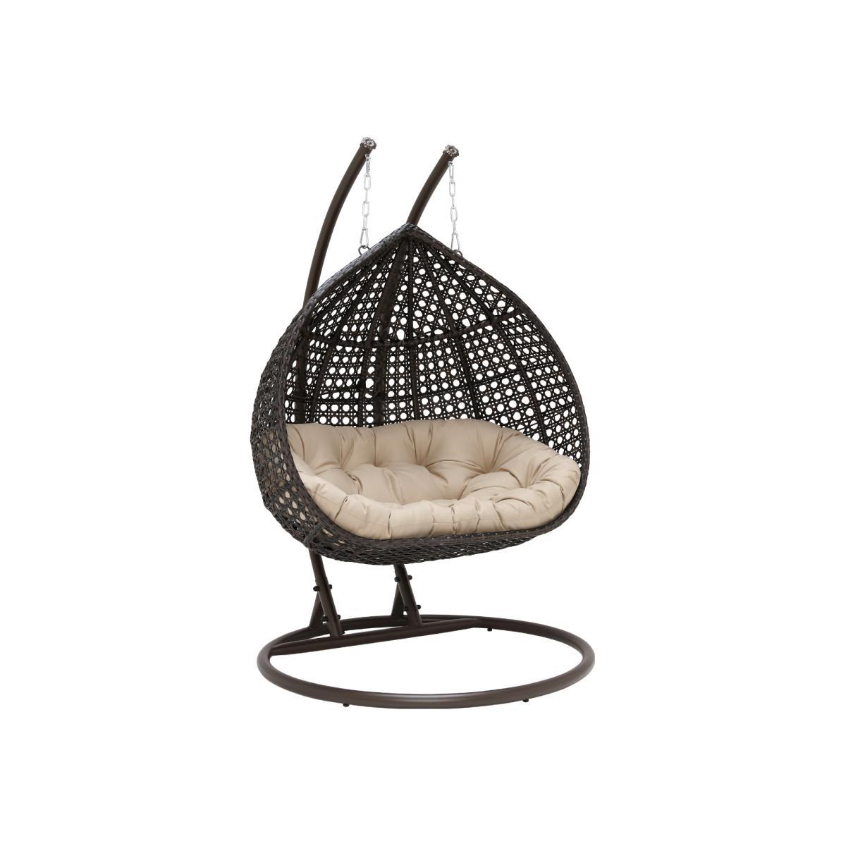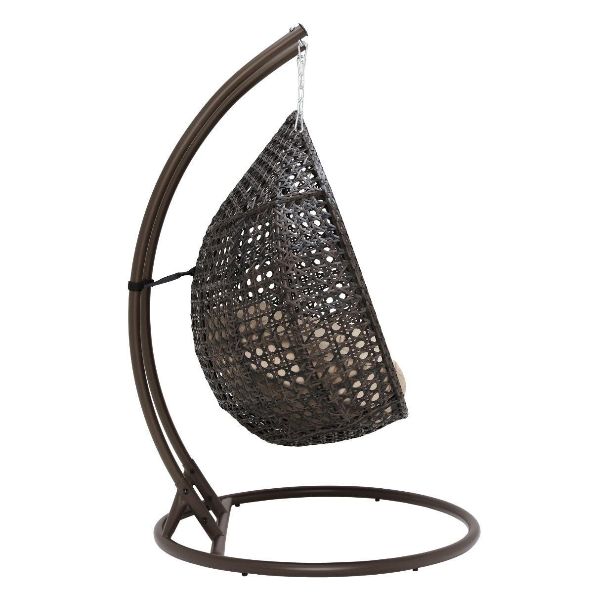 Willow Hanging Garden Chair in Brown Weave and Beige Fabric