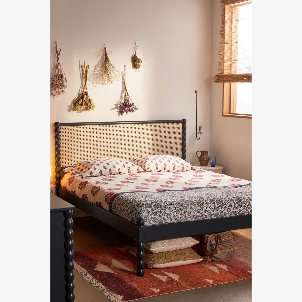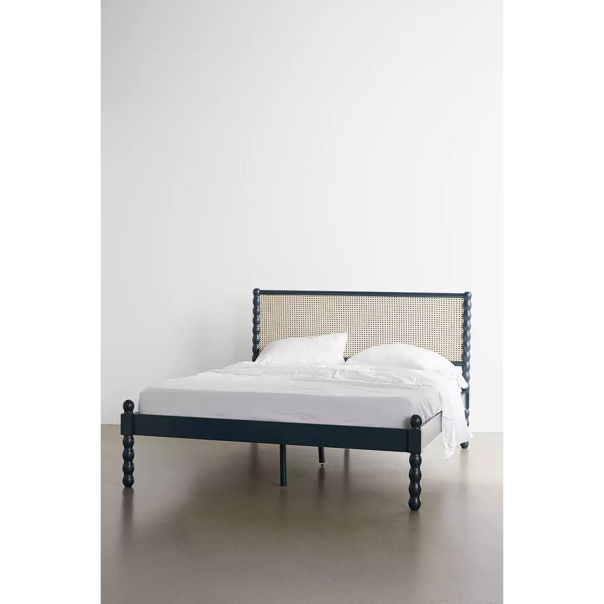 Add a statement piece to your sleeping space with the folk-inspired Willow bed. Features a 70s-style woven cane headboard and a sturdy wooden frame with curved bobbin detailing. *Online return only. This item cannot be returned instore. Please note furniture items currently cannot be shipped to Northern Ireland or The Republic of Ireland. Delivery of large furniture items may take 1-2 weeks and are therefore not eligible for Next Day Delivery.* **Content + Care** \- Assembly required - instructions and hardware included \- Poplar wood, MDF, Plywood, Kauri veneer, Pine wood,Cane \- Wipe clean **Size** \- King \- Headboad dimensions: W: 164cm x D: 6.2cm x H: 98cm \- Mattress space: W: 155cm x D: 206cm \- Leg height: 28.5cm \- Weight: 44kgs \- Shipping package dimensions: W: 216cm x D: 119cm x H: 19cm \- Shipping package weight: 56.5kg