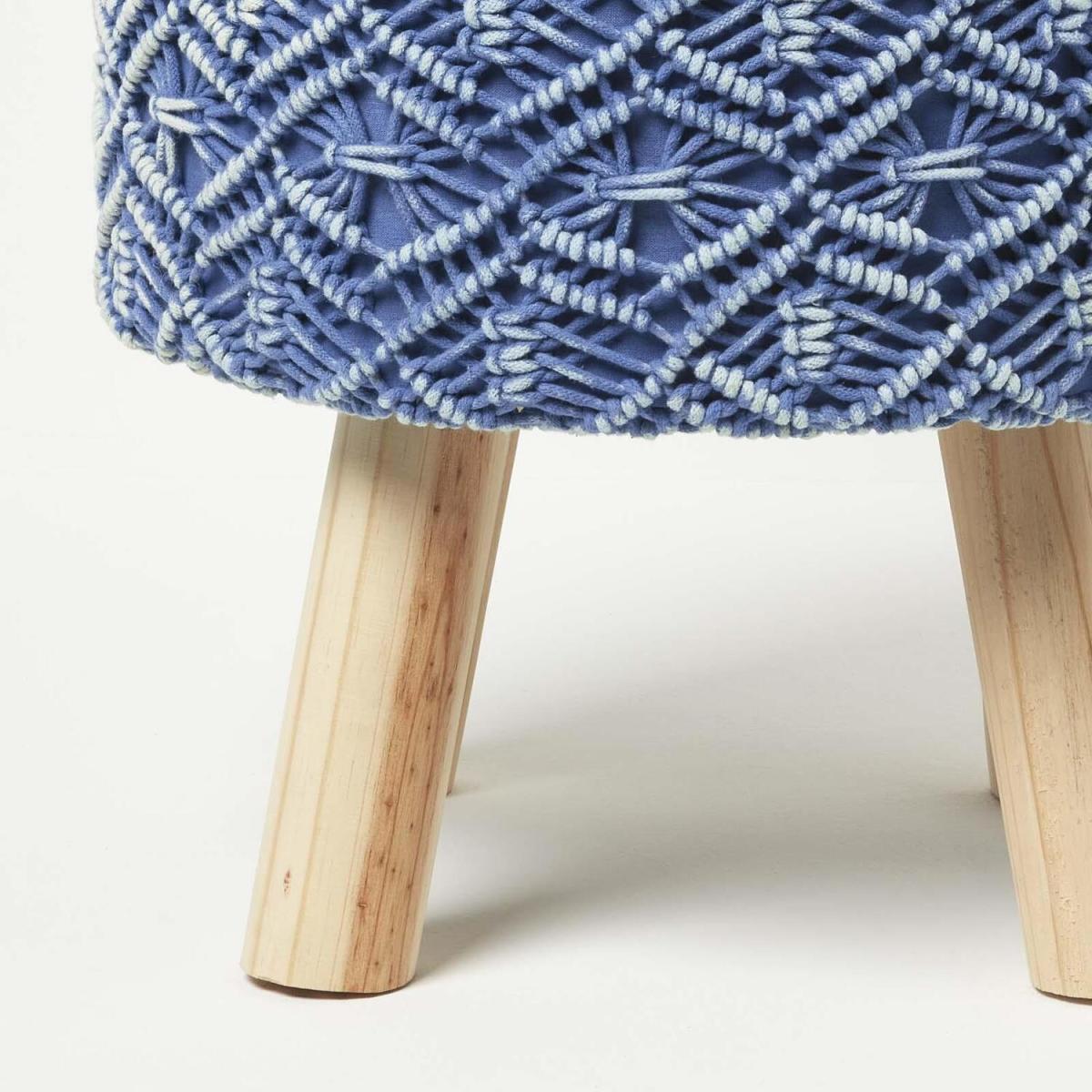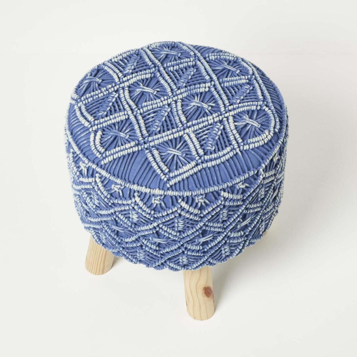 An exclusive collection of macrame style crochet pouffes woven from cotton. Available in a range of colours including teal, blue and yellow, this colourful home accessory is sturdy and lasting with a decorative crochet cover. Adding style and texture to any room, these versatile footstools are available in one size and feature a flat top making them perfect for use as a pouffe, occasional seat or even make-do coffee table. Injecting a splash of colour to your interiors they are ideal for styling in living spaces, nurseries and also make the perfect gift! Part of Homescapes exclusive homeware collection, pair with our collection of crochet rugs, braided rugs or macram indoor hanging plants to create an on-trend bohemian look. Covers are not removable, spot clean only.