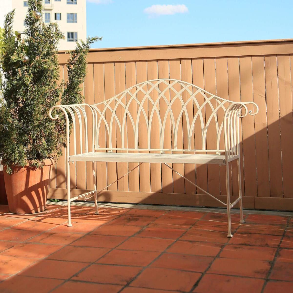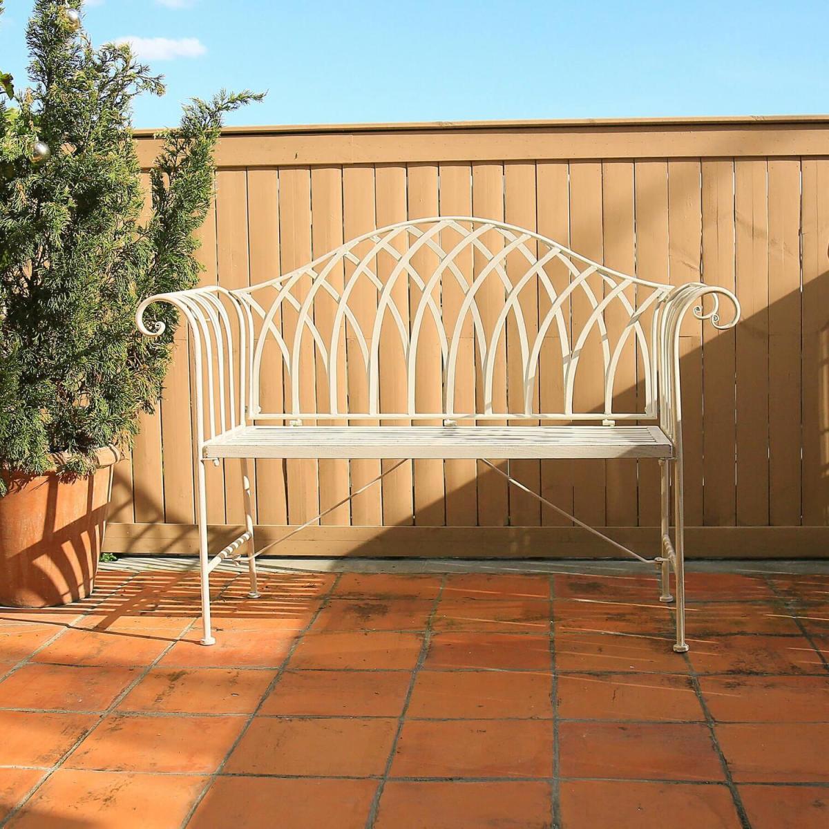 Part of the Willow Collection, this Willow Arched Garden Bench is inspired by the architecture of classic Norman arches. It has an overlapping arch design, a gently arched back and scrolled armrests. It's a tranquil escape in a sunny or shady spot where you can enjoy your outdoor space. Give yourself some me-time with a book or magazine, a drink and a snack. Plus, when friends pop over for a party, barbecue or afternoon tea, you have the perfect seat for them too. Crafted from high quality metal, it's sturdy and strong and covered in a protective weather-resistant paint. Please Note We recommend a cover to help protect your furniture or to store it inside from the elements during the colderwetter seasons.