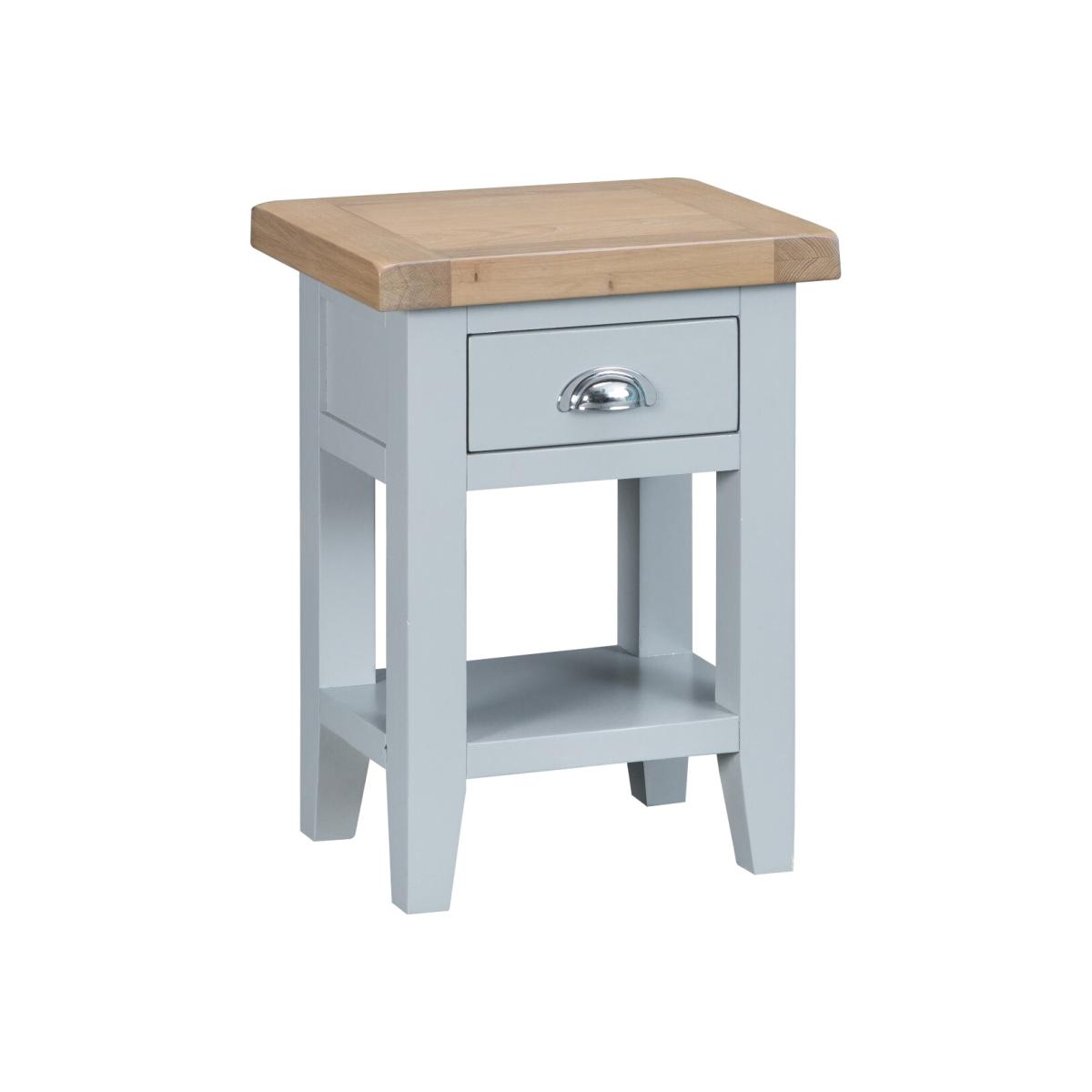 I love this side table for its versatile mix of natural timber and muted grey, making it an adaptable piece for numerous interior styles. It works particularly well in Scandi, coastal, or farmhouse-inspired spaces where a balance of warmth and calm is desired. The neutral colours and straightforward design allow it to be styled with a range of décor accessories, from potted plants to cosy lamps. Practical styling tips include using the drawer for small essentials like coasters or remote controls, while the surface can hold statement vases or books. Its compact size also makes it perfect for snug spots beside armchairs or beds, adding both functionality and visual interest without overwhelming the space.