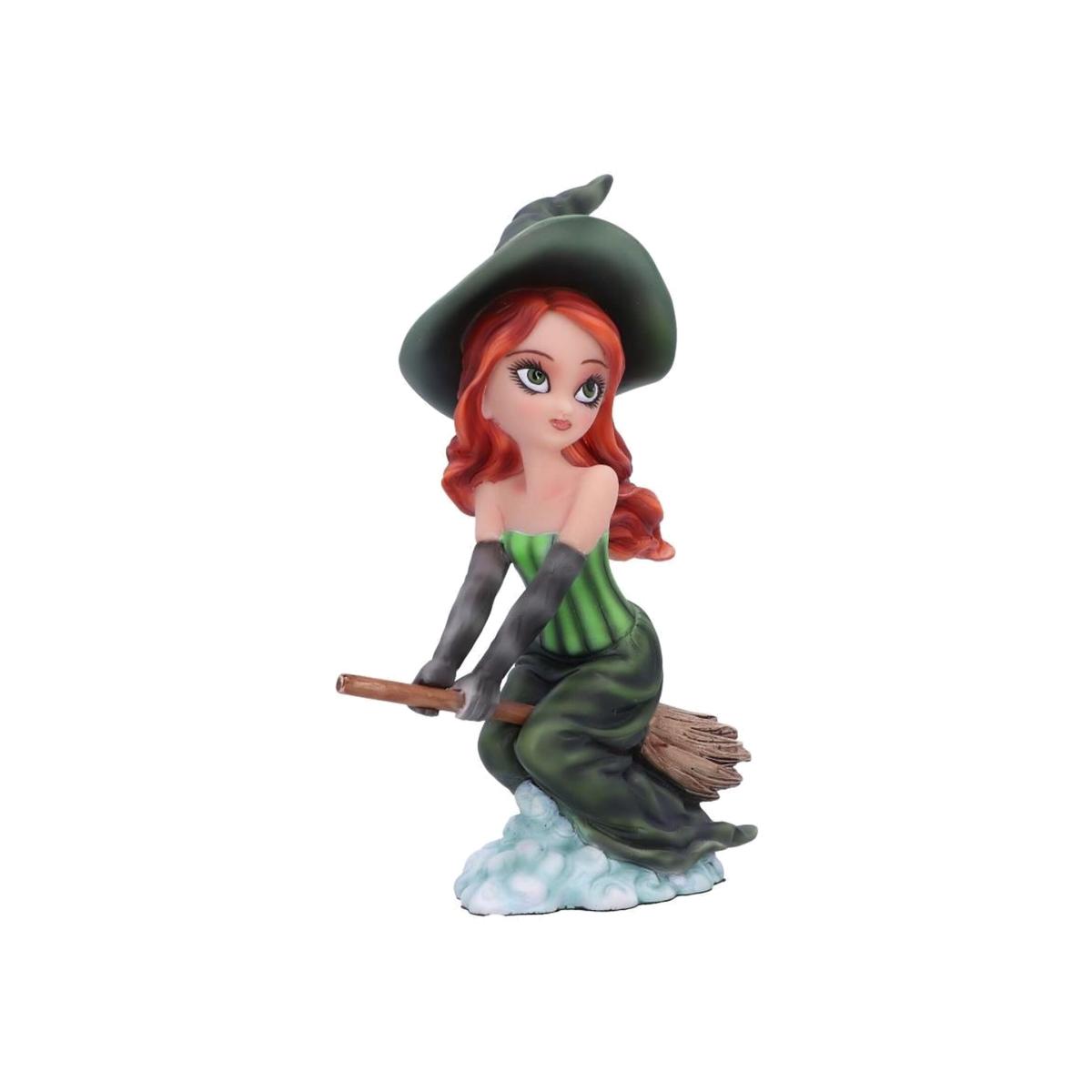 Willow is dressed in a long green skirt, corset and witches hat. Her firery red hair blows in the wind as she rides her broomstick through the thick of the clouds. Cast in the finest resin before being expertly hand-painted, this cute little witch will make the perfect addition to any lover of fantasy and witchcraft.