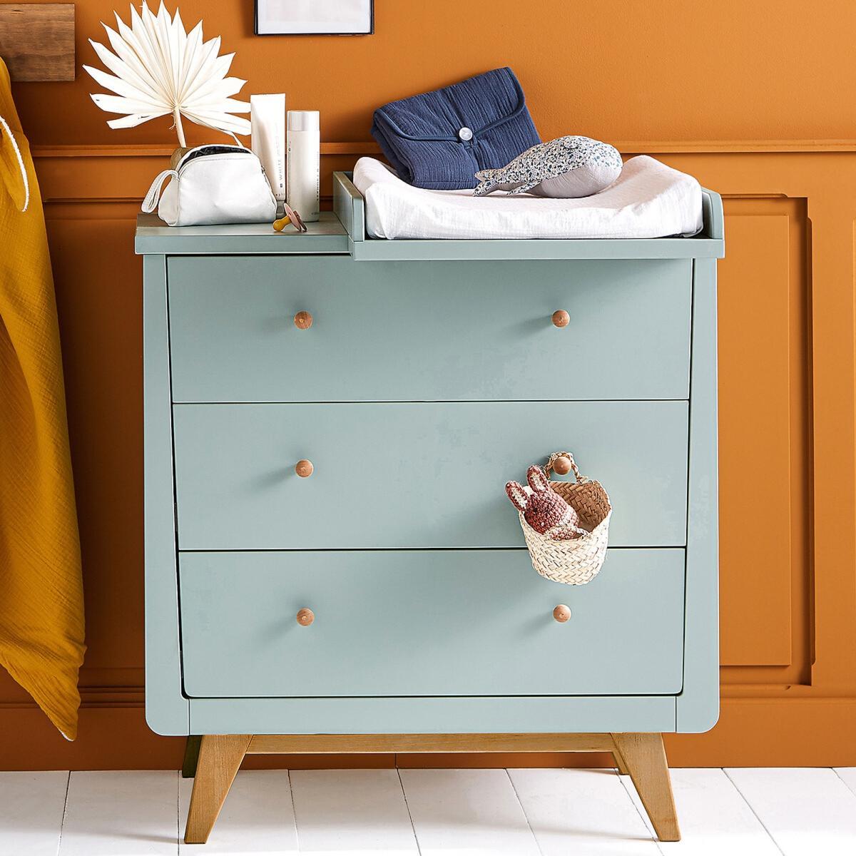 I love this little changing table because of its soft, pastel hue which works perfectly in both modern and Scandi-inspired nurseries. Its compact size and clean lines mean it can sit comfortably alongside other furniture, without overwhelming the space. The three drawers are practical for storing essentials like nappies, wipes, and child clothes, keeping everything within easy reach. For styling, pair it with a neutral or patterned rug and simple accessories, like a few tasteful wall decals or a soft changing pad. It’s versatile enough to work well in both gender-neutral nurseries and more playful, colourful spaces, making it a functional yet charming addition to your child's room.