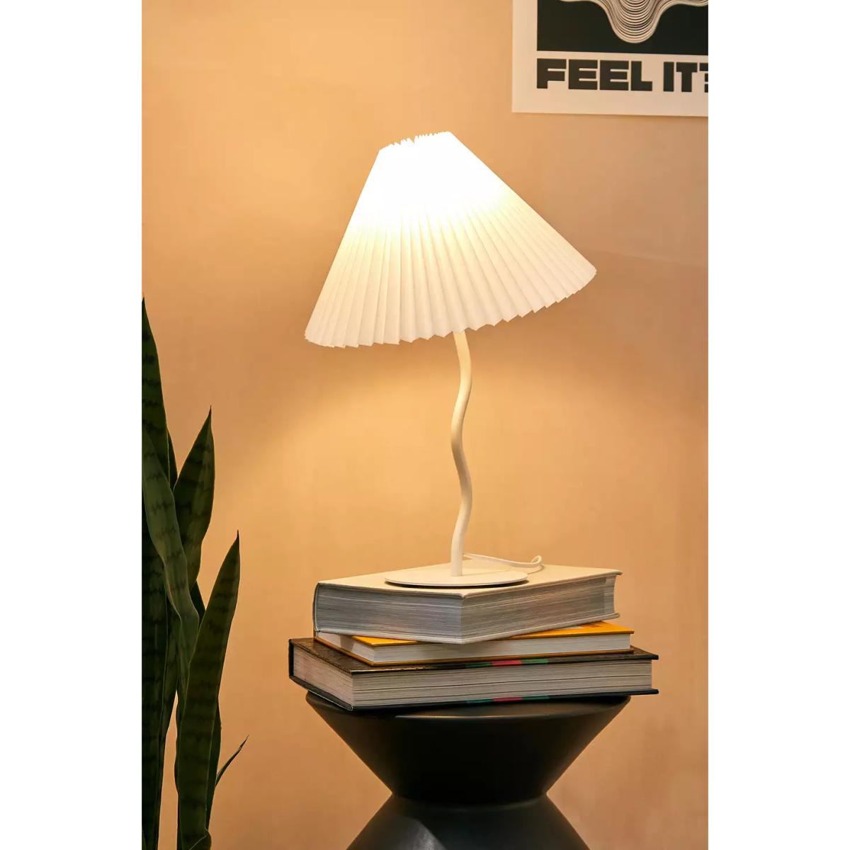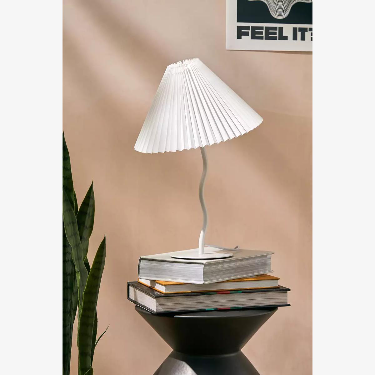 Add a wonky addition to your space with Wilma table lamp. This angled lamp features a traditional angled lamp shade, a zeb-zag frame and a round base. Plug in to power on with an in-line switch. **Content + Care** \- Iron \- Wipe clean \- Includes UK plug \- Requires E27 bulb (not included) **Size** \- 30cm x 30cm x 46cm \- Shipping dimensions: 38cm x 25cm x 30cm