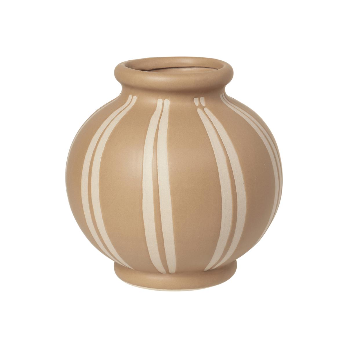 Wilma vase 17. 8 cm from Danish Broste Copenhagen is made of ceramic and has a rounded design with stripes on the outside. This ceramic vase looks lovely on a side table or on the dinner table and is perfect with or without flowers.