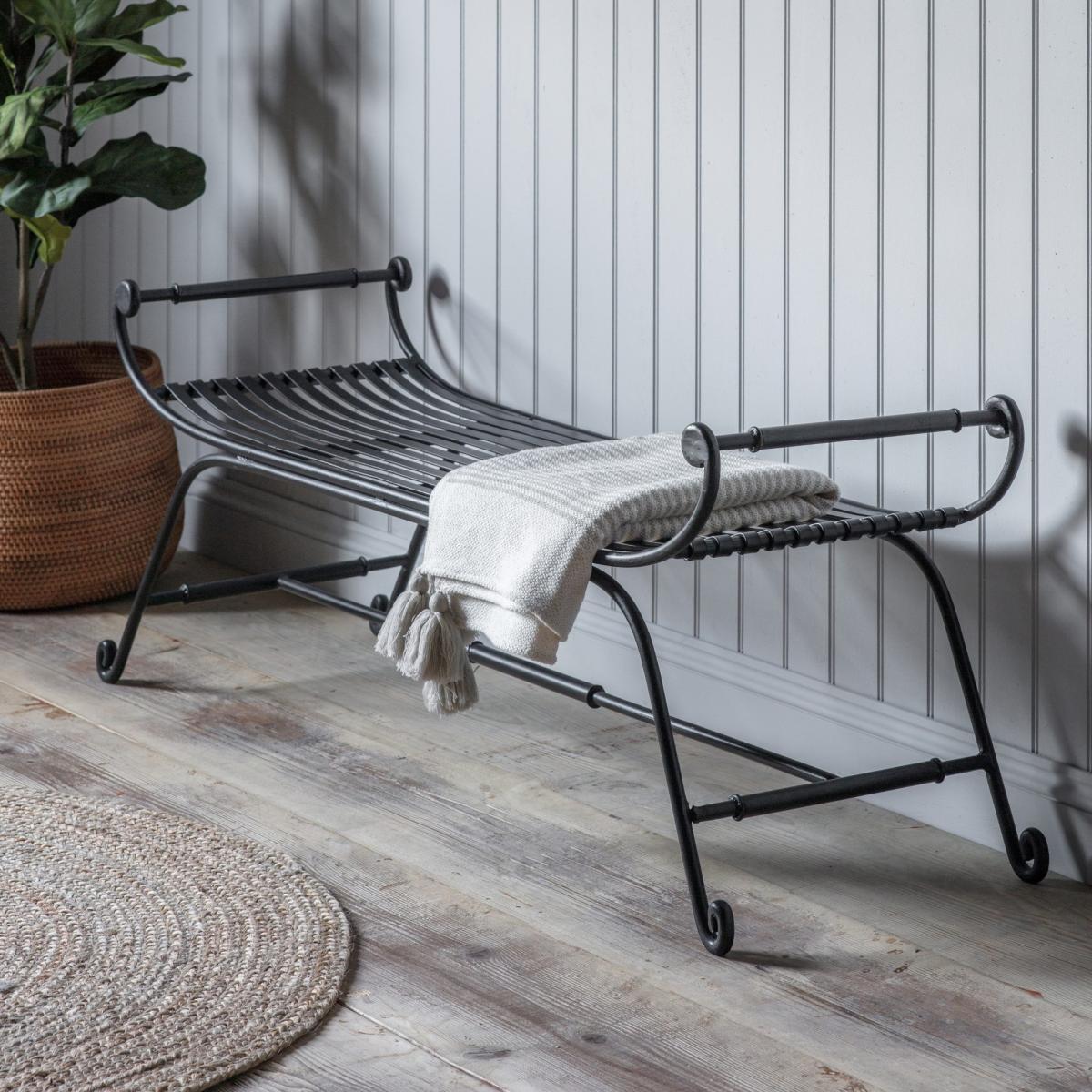I love this bench for its minimalist, industrial appeal and its versatility. The black metal frame makes it a great choice for contemporary, loft-style interiors, but it also works well in more eclectic or rustic settings when teamed with wooden or woven accessories. It’s perfect as additional seating in a hallway or as a stylish window seat. Practical styling tips include adding a cosy cushion or a textured throw to soften the look, or grouping it with other metal or vintage-inspired pieces for a curated feel. It’s a sturdy, functional piece that can be effortlessly styled to suit various interior moods.