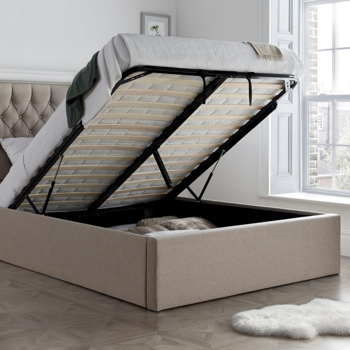 Wilson Oatmeal Fabric Ottoman Bed - Oatmeal / Double
