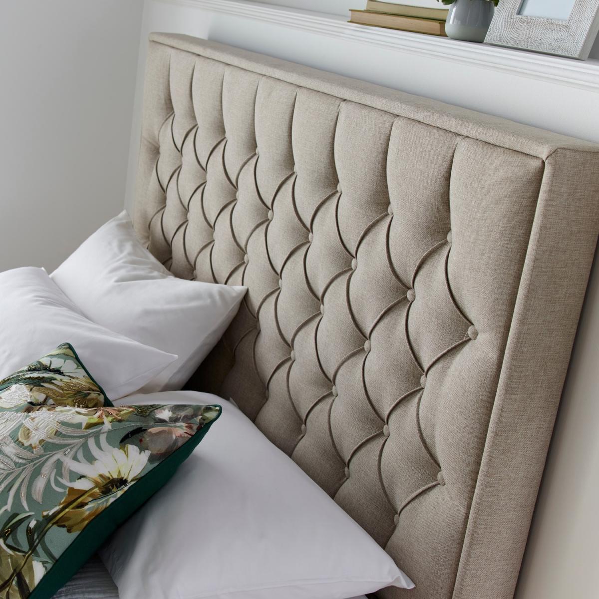 The Wilson Fabric Ottoman Bed comes with a new, fully boarded design which is perfect for storing your items without them touching the floor. The bed comes in a beautiful grey or oatmeal colour with a fantastic buttoned headboard. A very high quality ottoman bed with a contemporary design.