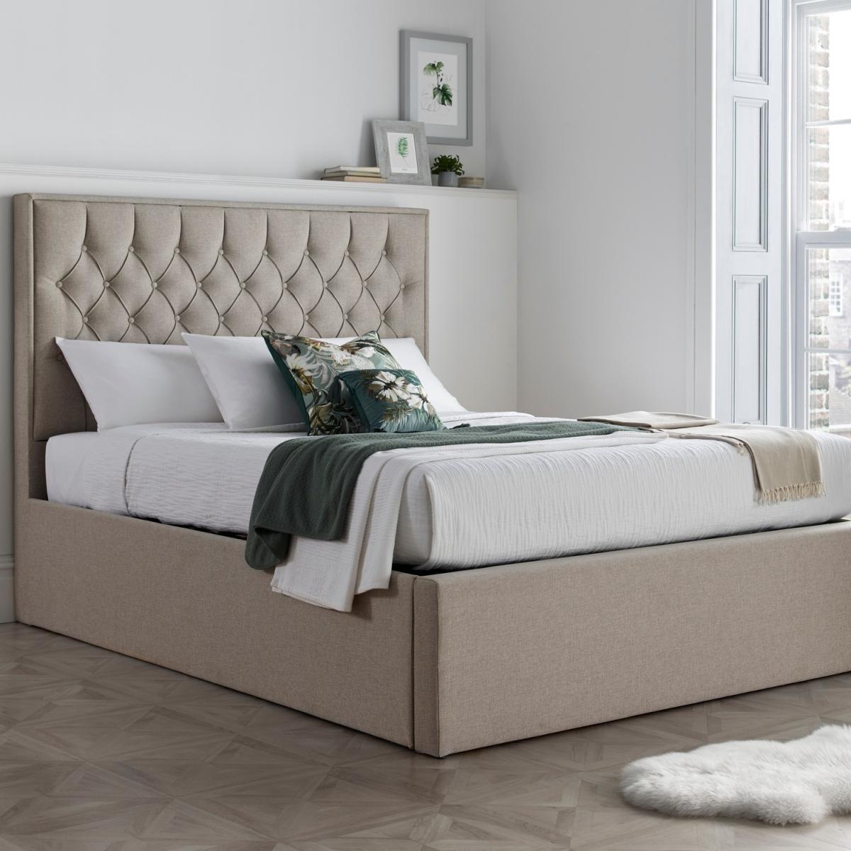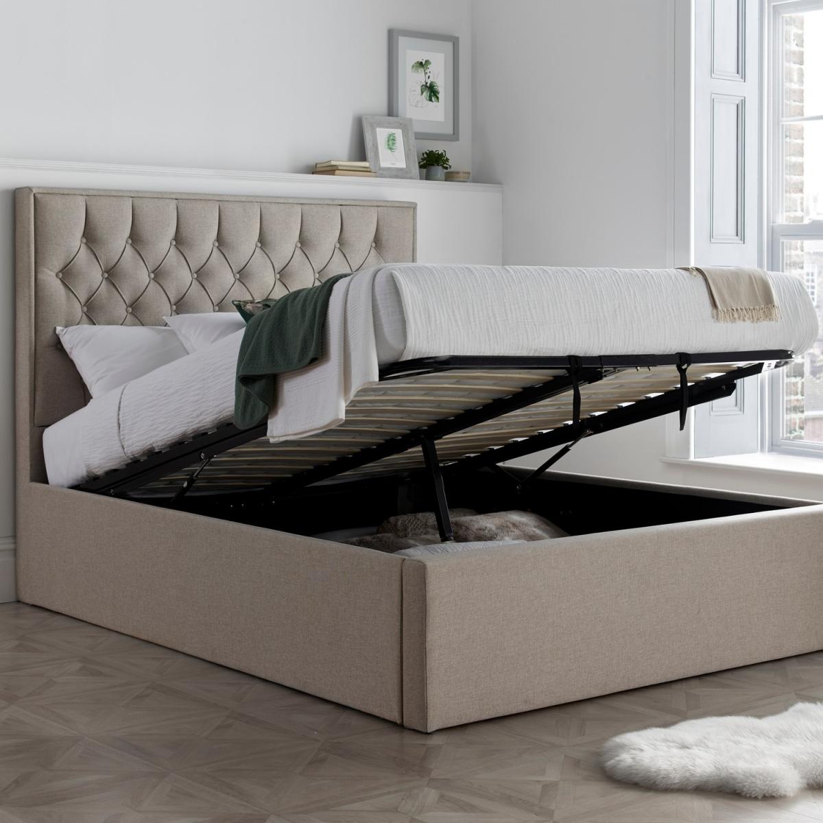 Wilson Oatmeal Fabric Ottoman Bed - Oatmeal / King