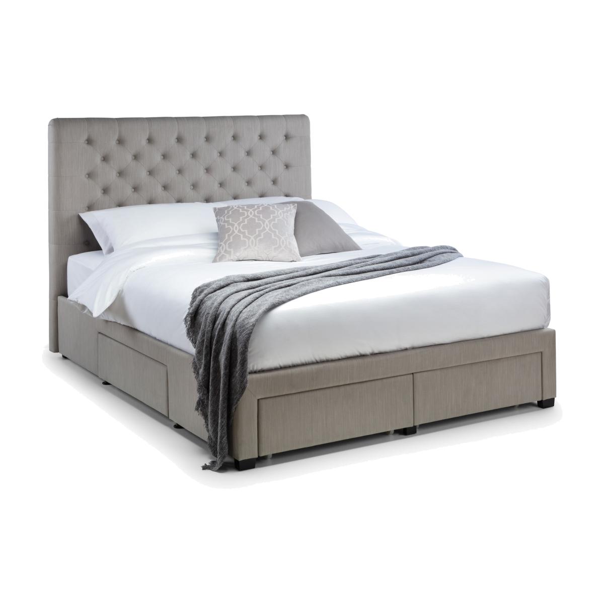 Crafted from beautiful grey fabric, the Wilton Bed exudes sophistication and grace. With a deep buttoned headboard and 4 drawers, not only is this bed gorgeous to look at, it provides additional space for all your storage needs.