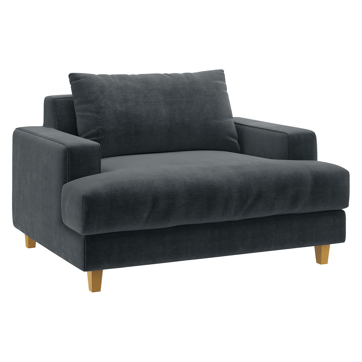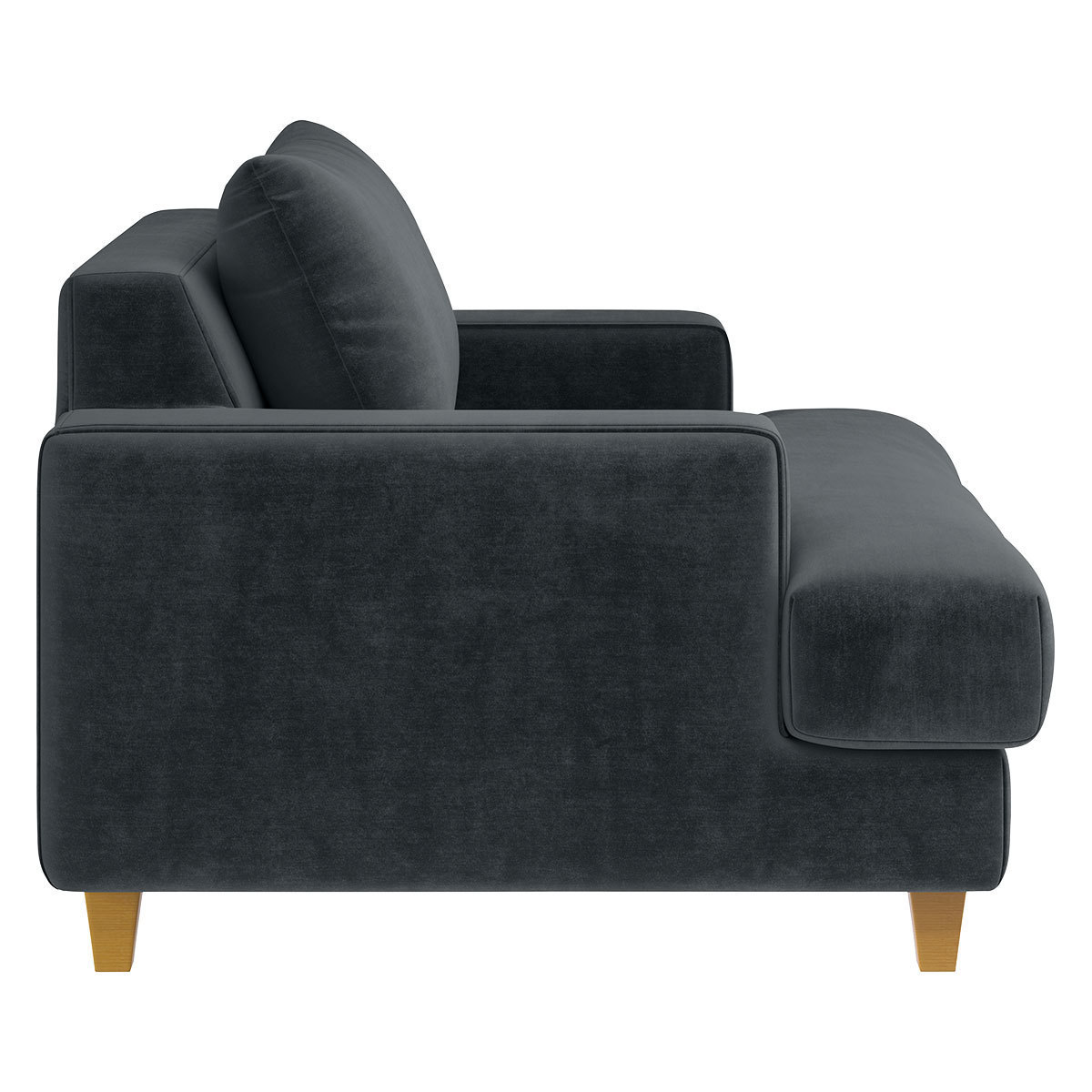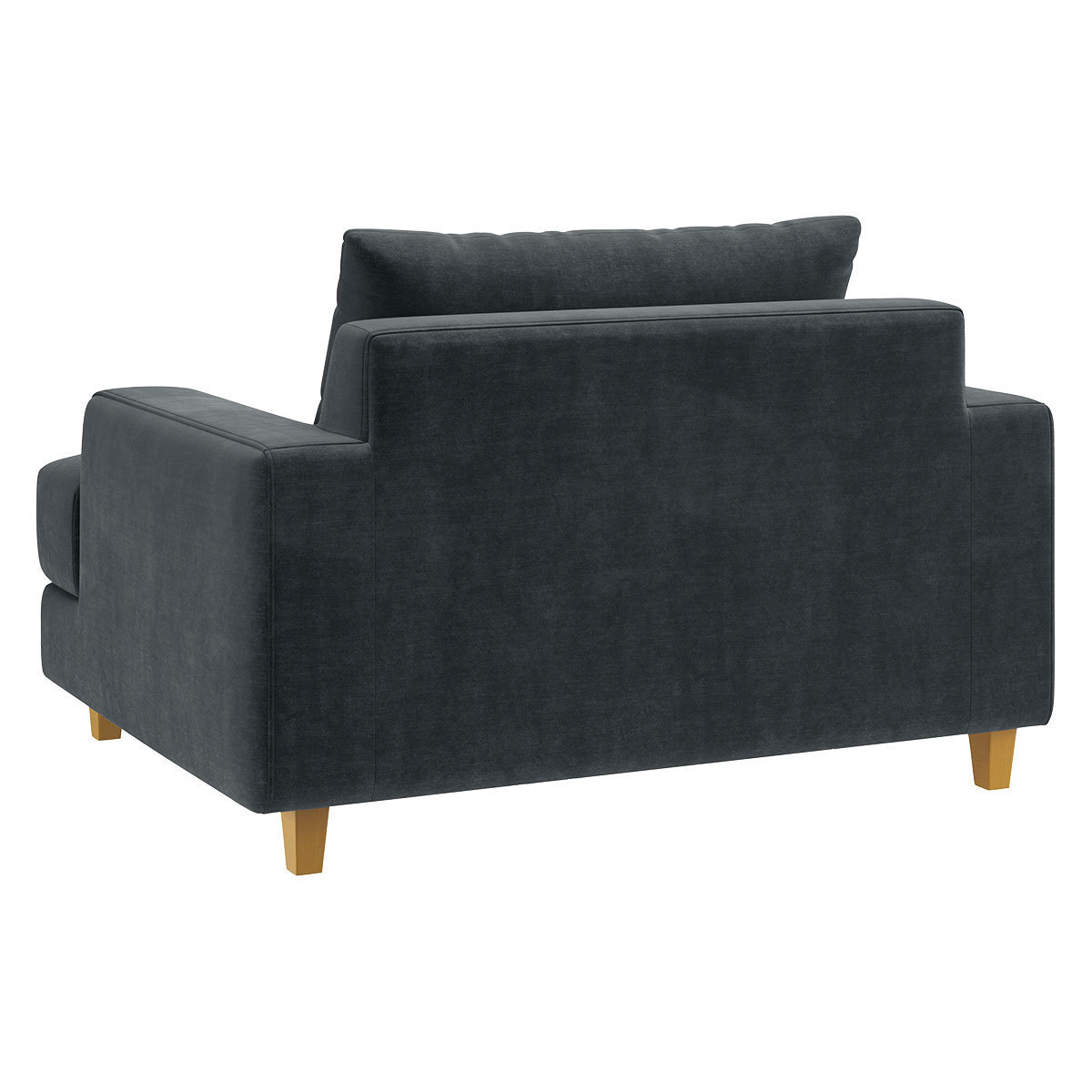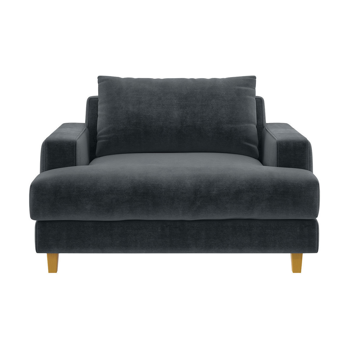 The Wiltons dark grey velvet fabric armchair is a magnificent beast, with generous proportions and soft, pillowy back cushions. Made in Italy, the sumptuous sofa has an extra-deep seat with classic T-shaped, feather-topped foam cushions, feather- and fibre-filled back cushions, padded box arms and oak-stained legs. Exclusive to Habitat, Wiltons is made to order and available in a variety of configurations, all with removable covers for cleaning, in 4 fabrics and a wide choice of colours. Read our Sofa Measuring Guide to ensure the sofa of your dreams will fit in your house.
