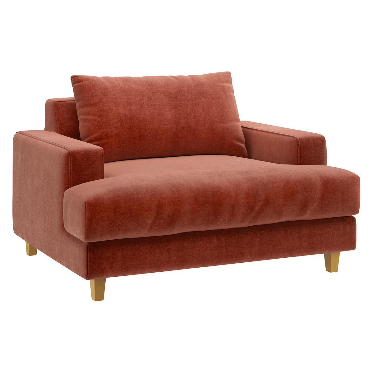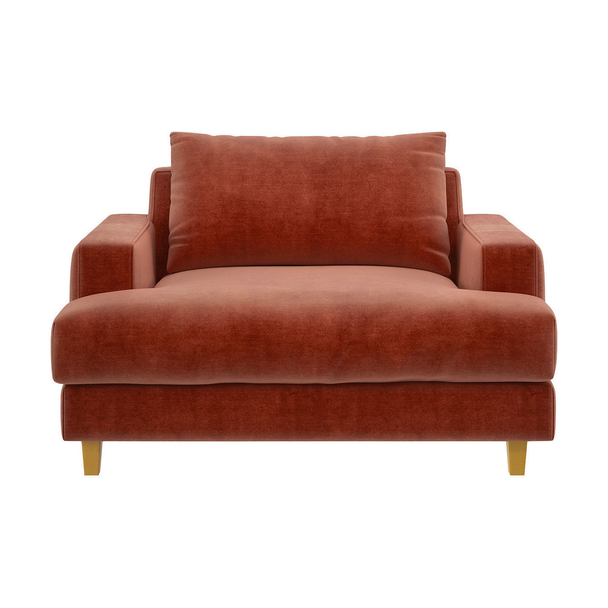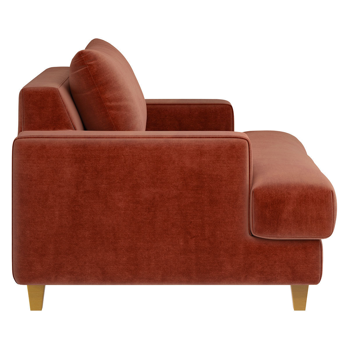 The Wiltons orange velvet armchair is a magnificent beast, with generous proportions and soft, pillowy back cushions. Made in Italy, the sumptuous sofa has an extra-deep seat with classic T-shaped, feather-topped foam cushions, feather- and fibre-filled back cushions, padded box arms and oak-stained legs. Exclusive to Habitat, Wiltons is made to order and available in a variety of configurations, all with removable covers for cleaning, in 4 fabrics and a wide choice of colours. Read our Sofa Measuring Guide to ensure the sofa of your dreams will fit in your house.