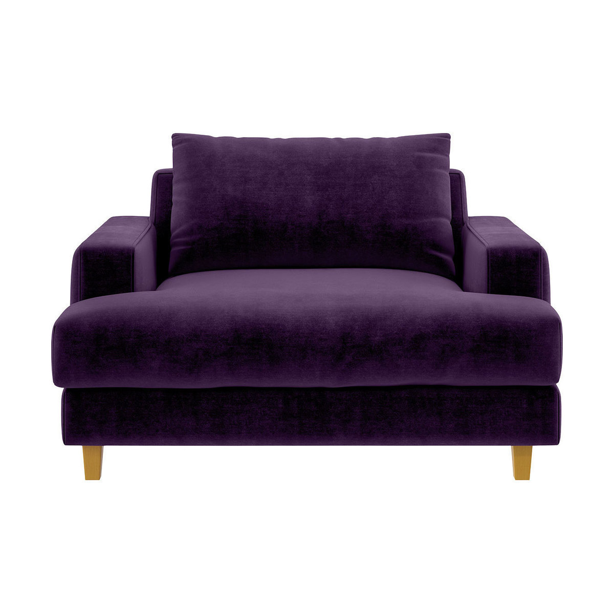 The Wiltons purple velvet armchair is a magnificent beast, with generous proportions and soft, pillowy back cushions. Made in Italy, the sumptuous sofa has an extra-deep seat with classic T-shaped, feather-topped foam cushions, feather- and fibre-filled back cushions, padded box arms and oak-stained legs. Exclusive to Habitat, Wiltons is made to order and available in a variety of configurations, all with removable covers for cleaning, in 4 fabrics and a wide choice of colours. Read our Sofa Measuring Guide to ensure the sofa of your dreams will fit in your house.