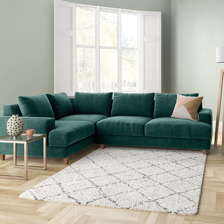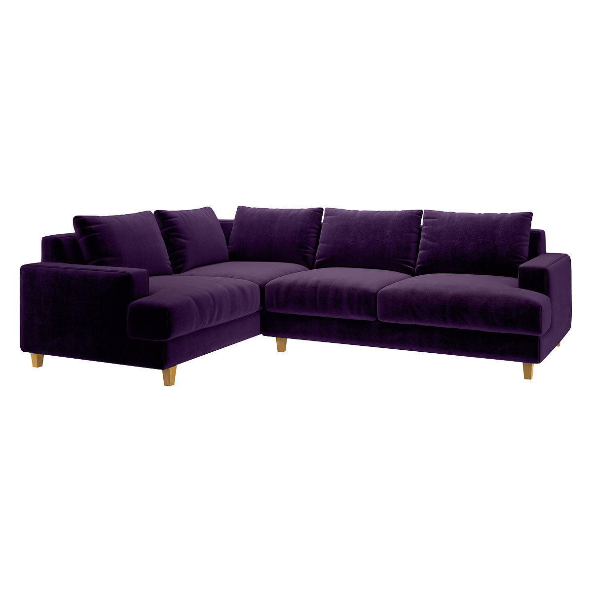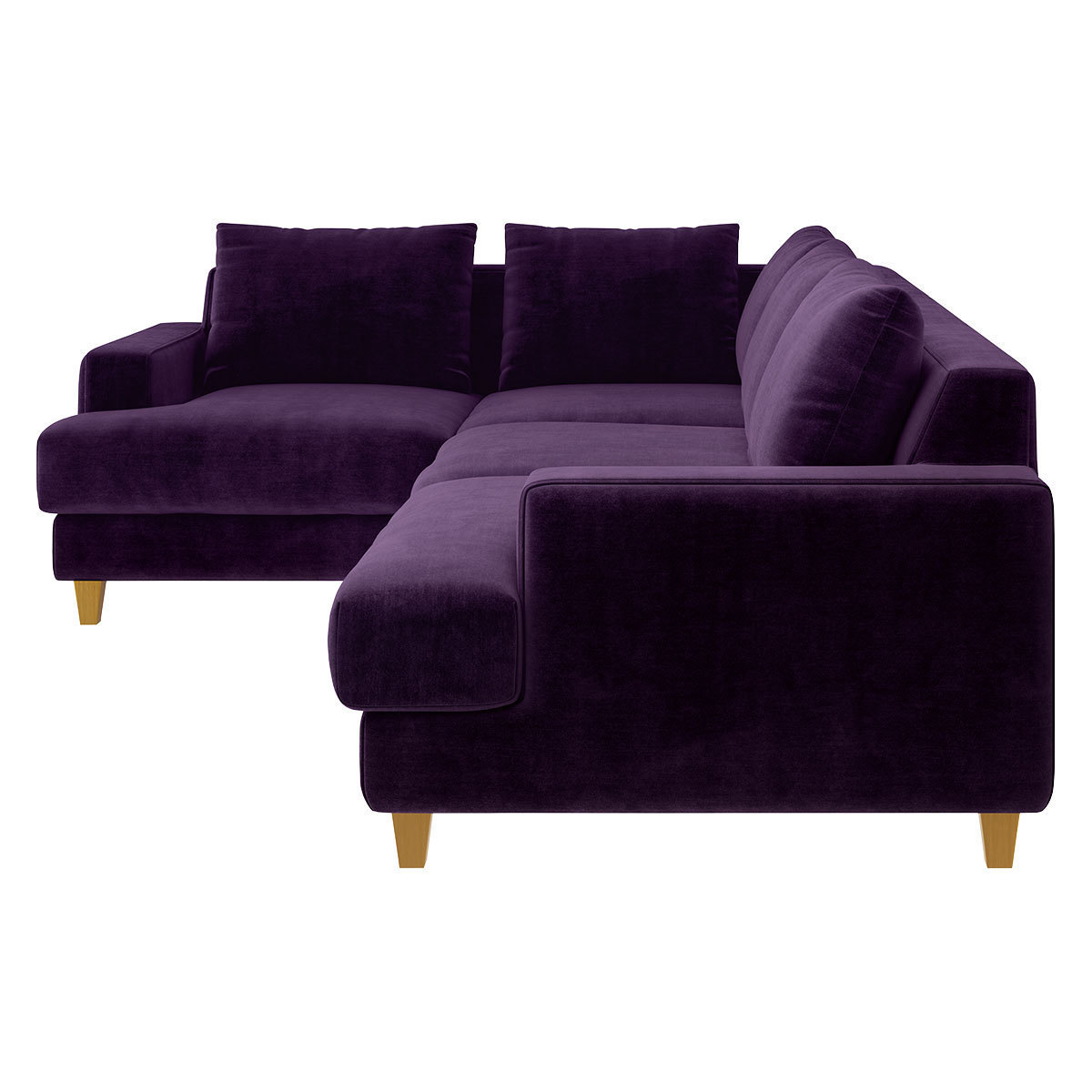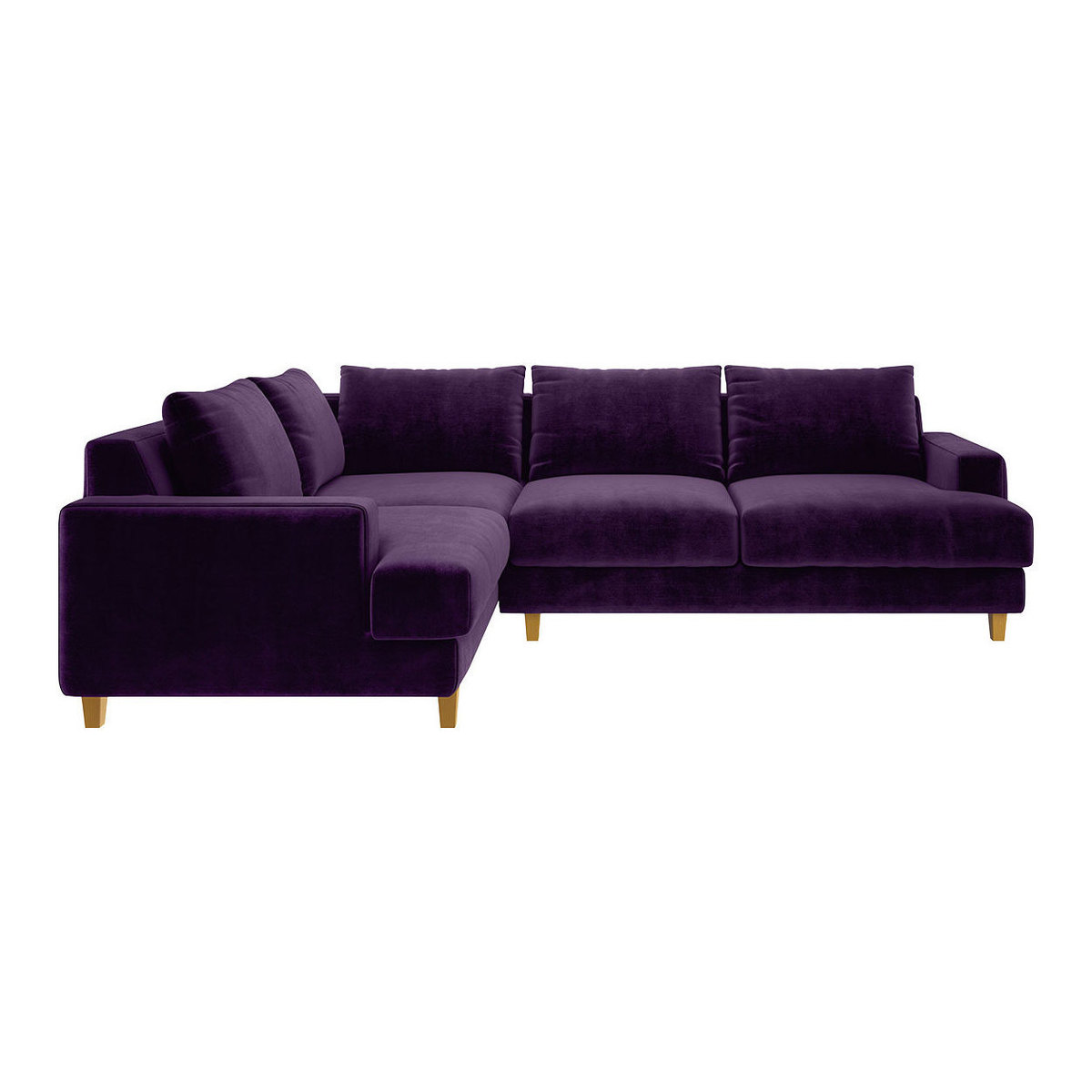 The Wiltons purple velvet 4 seater right-arm corner sofa has a contemporary style that’s great for modern homes. With clean lines, generous proportions and soft, pillowy back cushions, it doesn’t compromise on comfort. Made in Italy, the sumptuous sofa has an extra-deep seat with classic T-shaped, feather-topped foam cushions, feather-and-fibre back cushions, padded box arms and oak-stained legs. Exclusive to Habitat, Wiltons is made to order and available in a variety of configurations, making it even easier to create the perfect sized sofa. The sofa is available in 4 fabrics and a wide choice of colours and the covers are easily removable for cleaning.