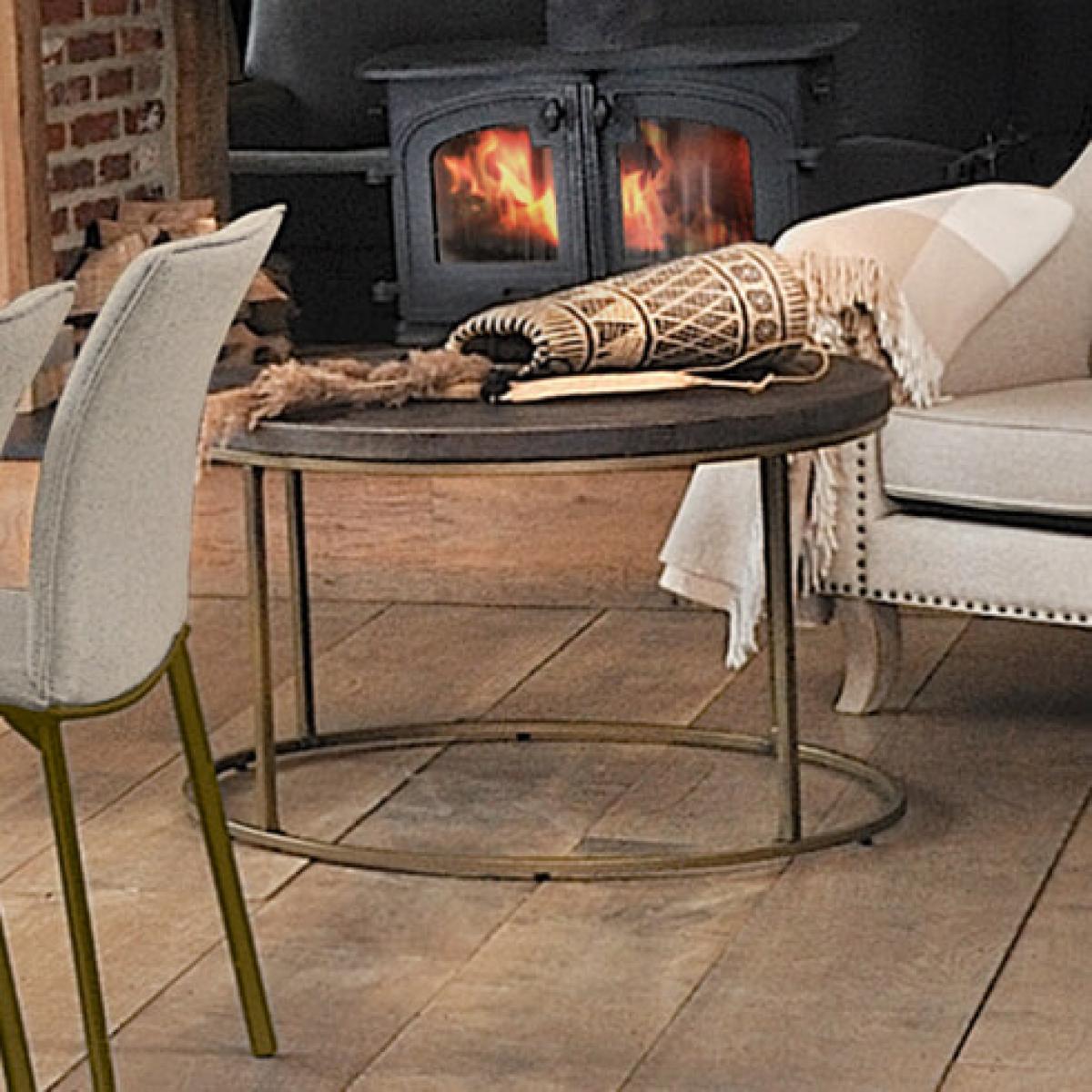 I love this round coffee table for its versatile, contemporary look with a warm nutmeg finish that adds subtle richness to any space. It works particularly well in modern or eclectic interiors, where its understated elegance can be paired with textured textiles or statement accessories. Practical styling tips include layering with a mix of decorative trays, candles, or small plants to create a inviting vignette. Its open metal frame keeps it feeling light and airy, making it ideal for smaller living rooms or open-plan spaces. Overall, this table offers a stylish balance between function and form, easily complementing a variety of colour palettes and interior styles.