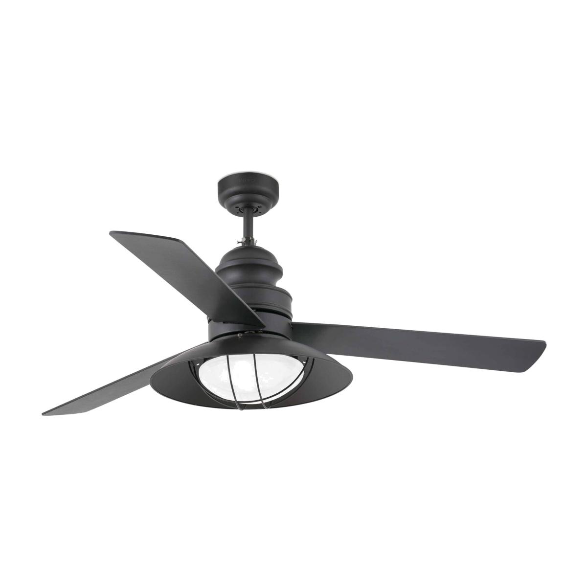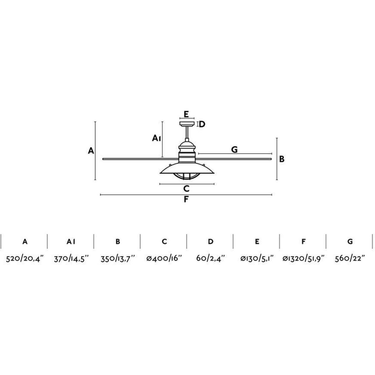 The fitting is inspired by old-fashioned fishing lanterns. The fitting has a metal grate over the opal glass diffuser, adding to its character. The dark brown finish of this ceiling fan gives it an unobtrusive look. This is a large fitting, suitable for rooms between 17.6 and 28m2 in size. Suitable for mounting as a flush fitting. Remote control included. Summerwinter function. Suitable for mounting on sloping ceilings. Longer rods available for order separately. Wattage 15-30-60. RPM 90-145-190.