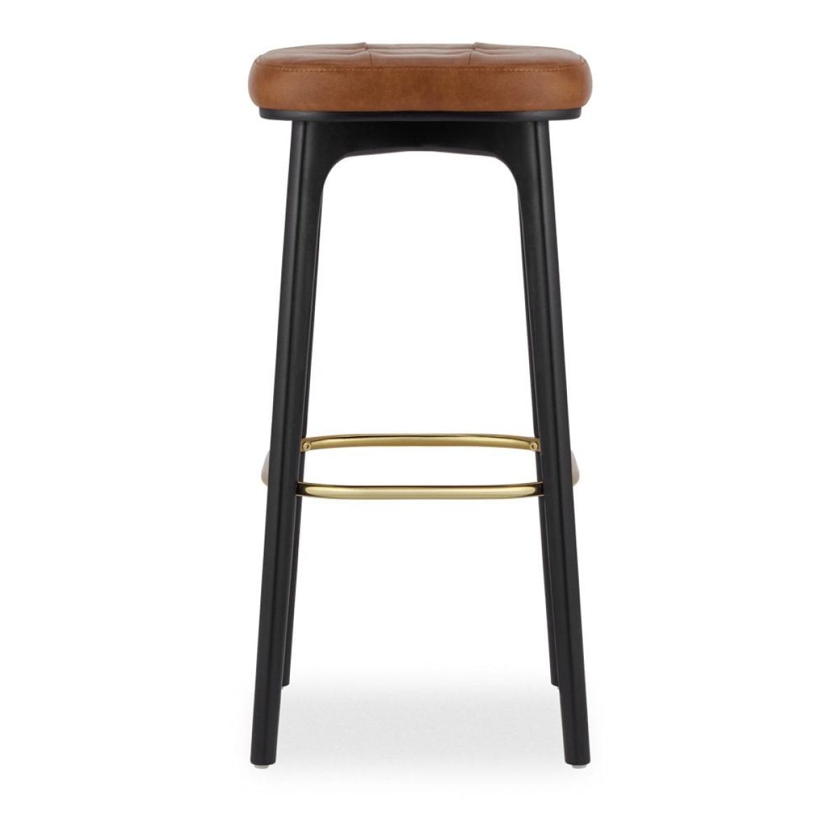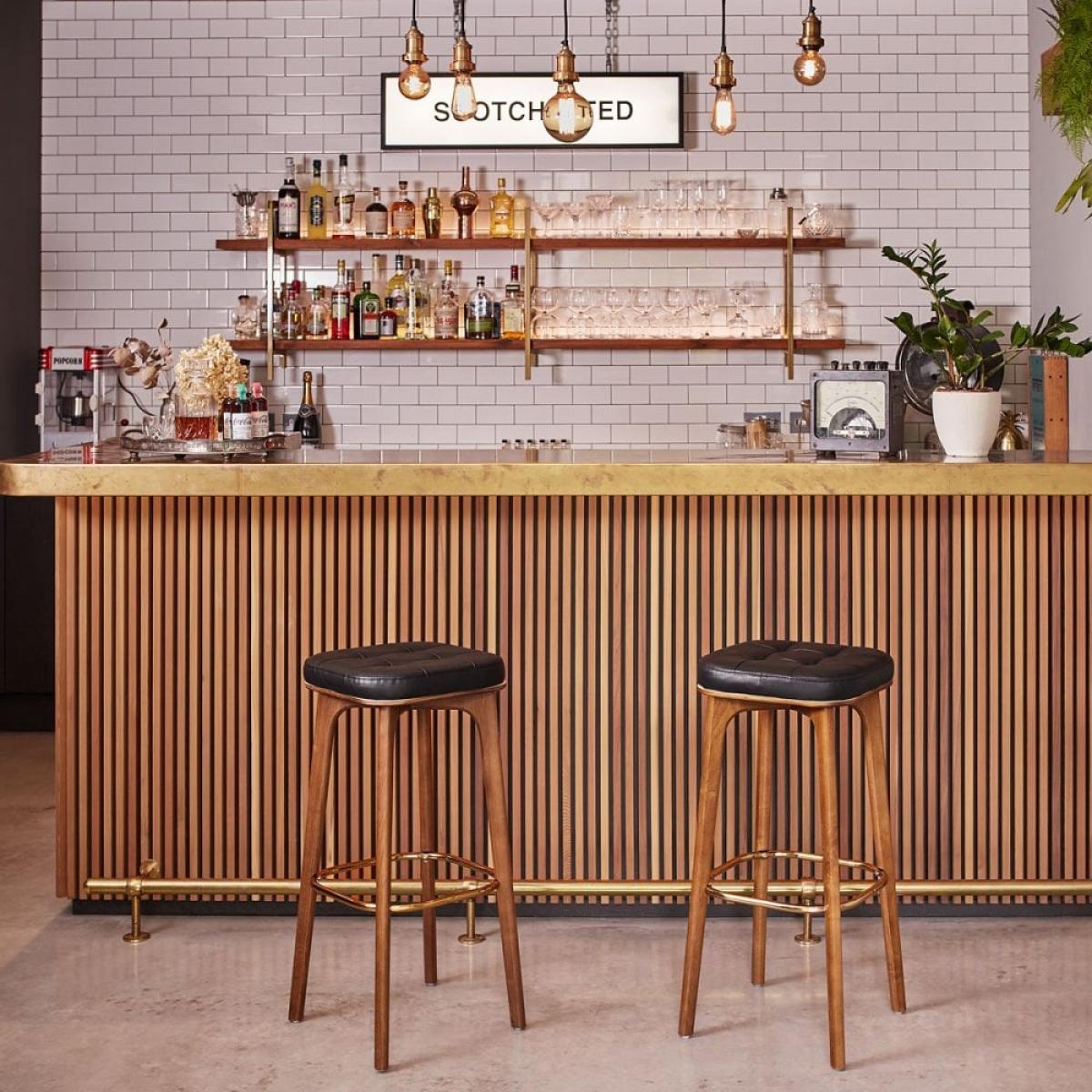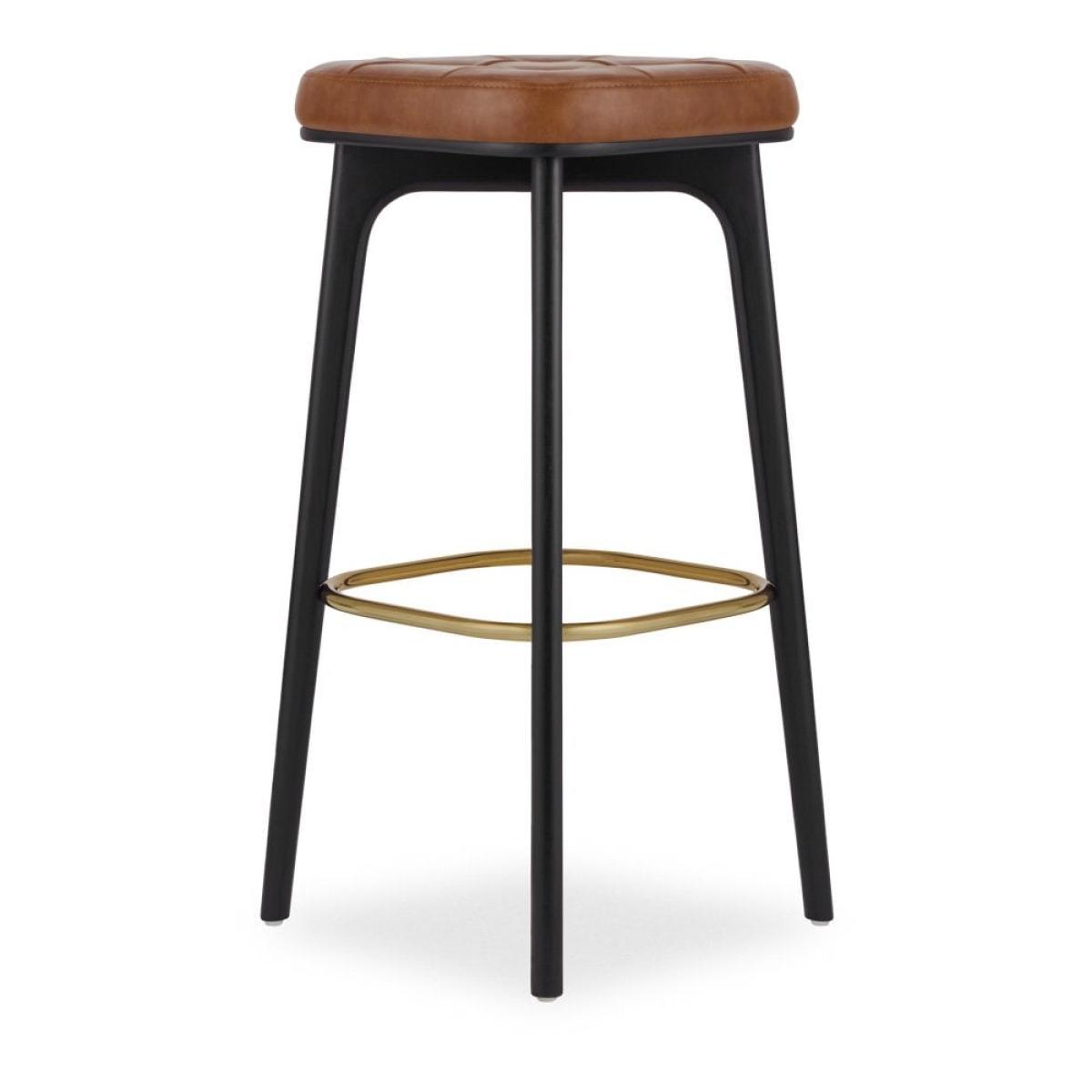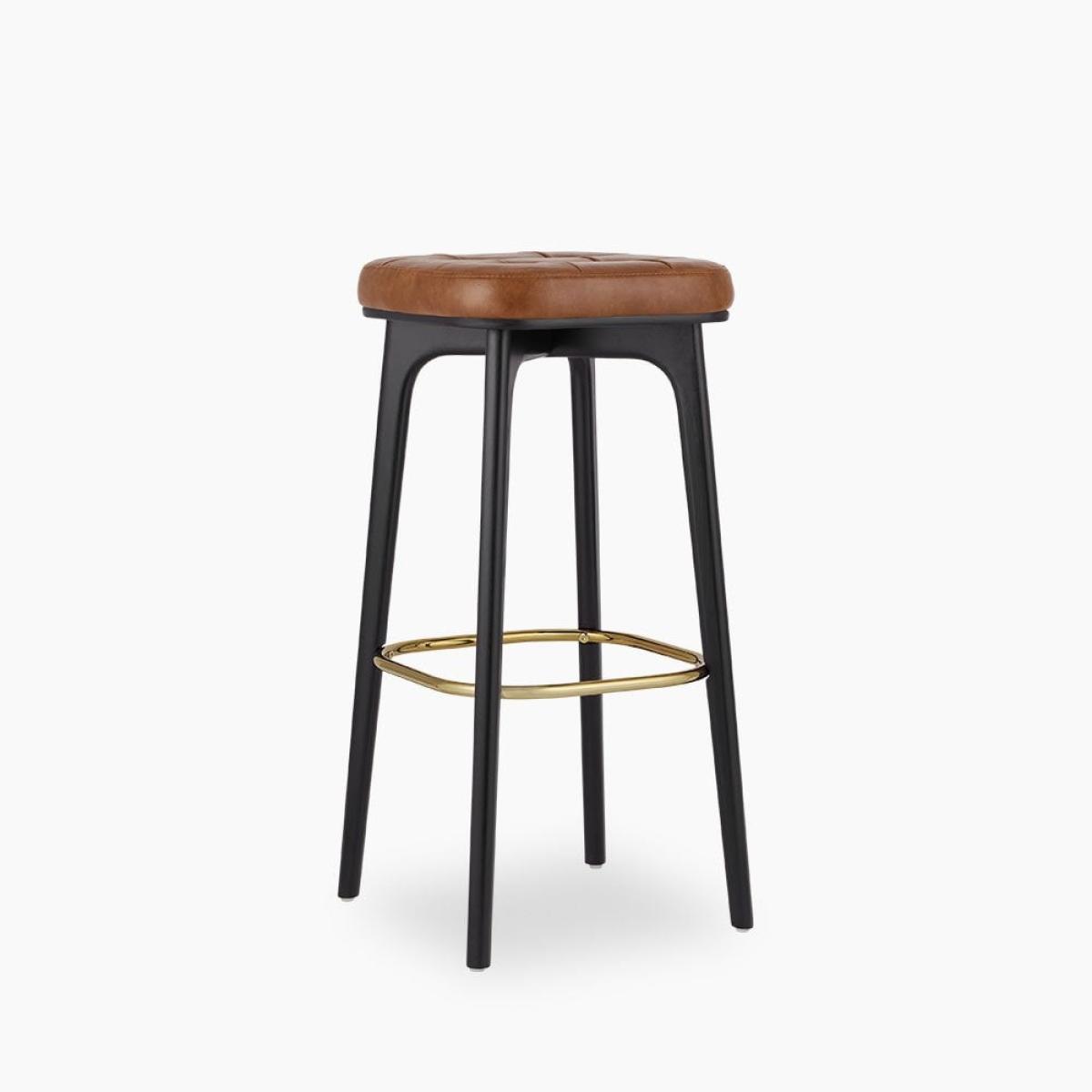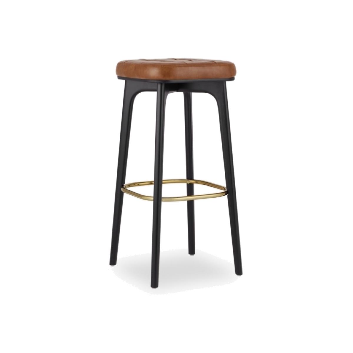 I’m a fan of this tan and black stool for its smart mix of materials - the warm, tufted seat pairs neatly with the matte-black legs and brass footrest, making it both comfortable and hard-wearing. It sits well in industrial-style kitchens, contemporary city flats or even a modern farmhouse bar area where you want a touch of refinement without fuss. For styling, line up two or three along your island, then hang slimline pendant lights above to balance the height. Keep the palette simple - think greys, charcoals and natural wood - and add a small sheepskin drape over the seat for extra texture. Because it wipes clean easily, it’s ideal for busy kitchens or an informal breakfast bar.