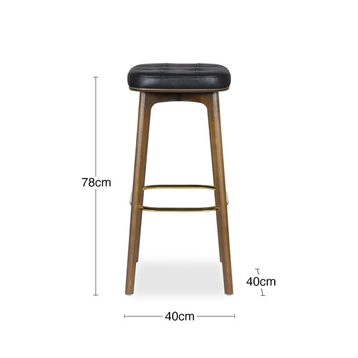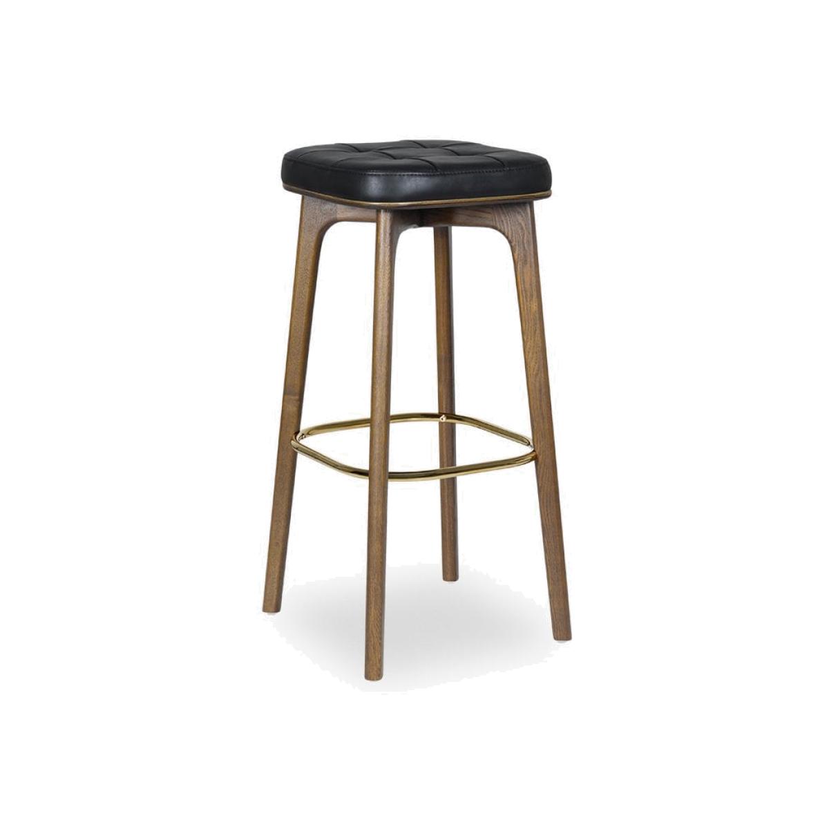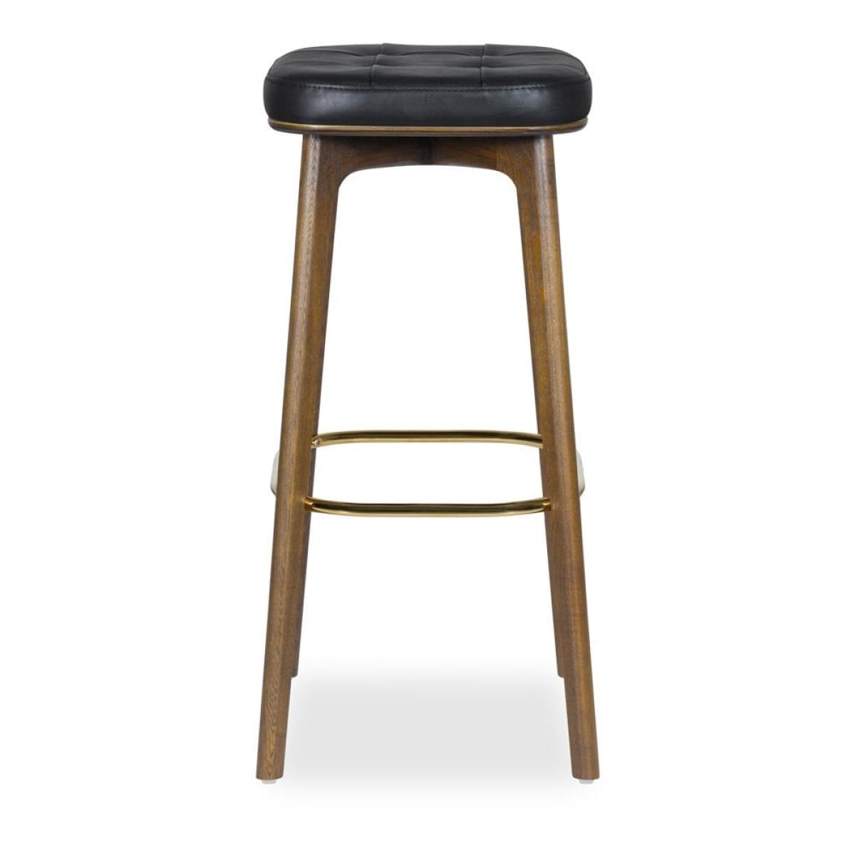 I’m drawn to this bar stool’s clean lines and mix of black upholstery with walnut-toned legs and a brass footrest - it feels both polished and unfussy. It works equally well in a city loft with exposed brick, a modern kitchen with marble counters or a pared-back Scandinavian-inspired nook. For styling, tuck two under a timber breakfast bar and hang slim pendant lights above for a casual yet organised look. Keep surrounding surfaces clear, add a couple of low-maintenance potted plants and lean into a neutral colour palette so the stool’s materials really stand out.