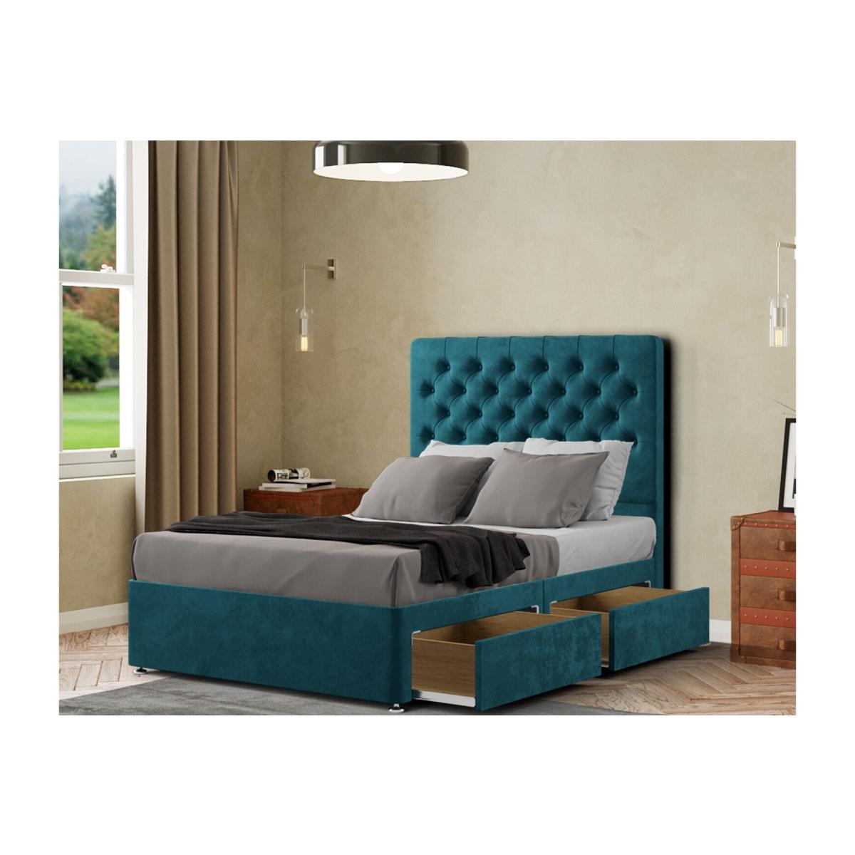 Winchester Divan Bed 2 Drawers Floor Standing Headboard Matching Buttons Plush - Emerald / Single