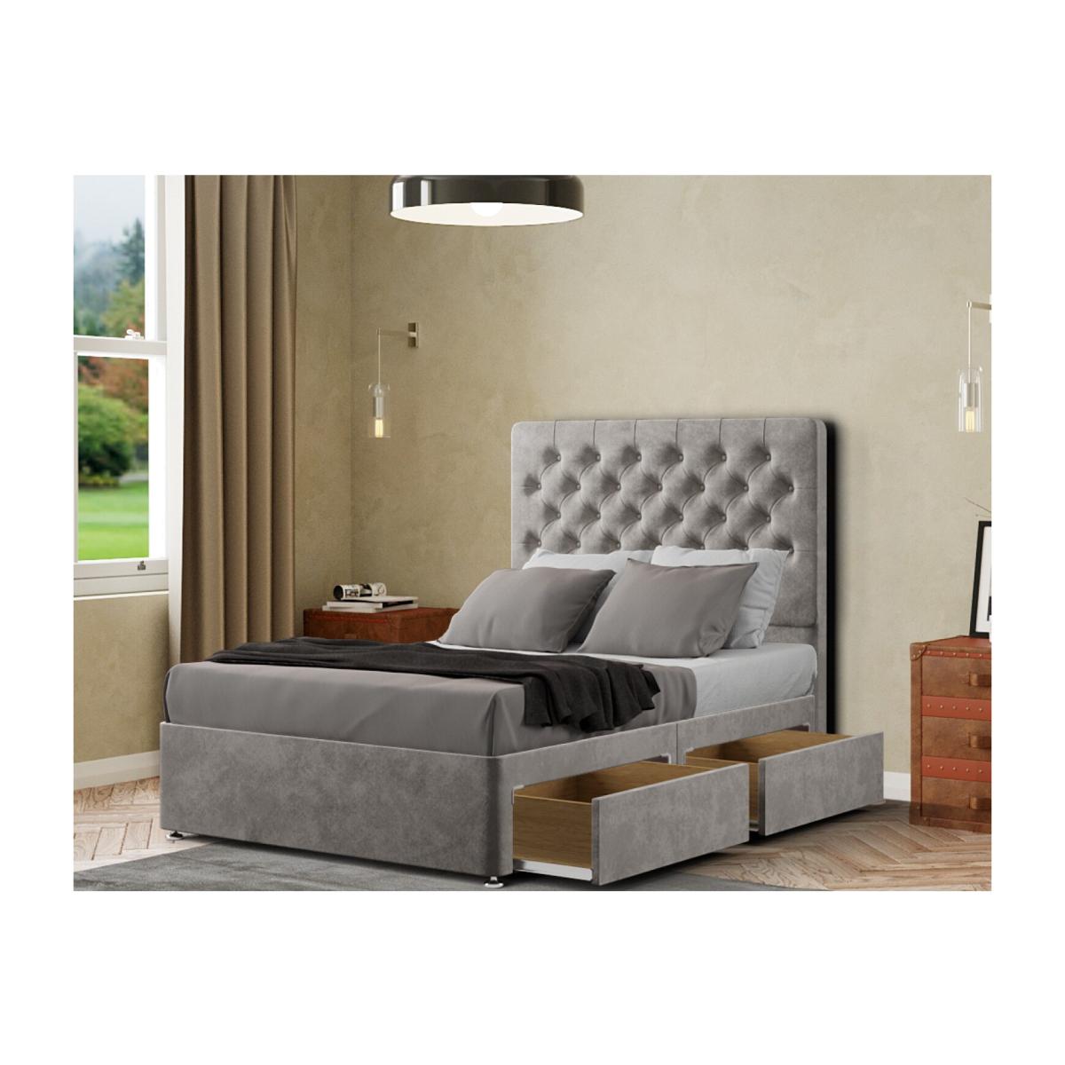 Introducing the Winchester Divan Bed - Elevate Your Bedroom with British Craftsmanship. Crafted in the UK The Winchester Divan Bed is a shining example of British craftsmanship, meticulously designed and built for enduring quality. Impeccable Design Elevate your bedroom with its floor-standing 54-inch headboard adorned with matching buttons, radiating sophistication and adding a touch of luxury to your space. Customized to Your Style Express your unique taste with a range of colors and fabric choices. The Winchester Divan Bed offers various options to effortlessly complement your decor. Available in All Sizes Whether you need a single, small double, double, king, or super king size, we have the perfect bed ready and waiting to suit your space. Mattress Not Included Designed to pair seamlessly with your preferred mattress, the Winchester Divan Bed allows you to create a personalized sleep sanctuary. Premium Quality Crafted with top-tier materials, this divan bed ensures durability and comfort, promising years of restful nights. Elevate your bedroom with the Winchester Divan Bed and experience the perfect fusion of style, functionality, and quality. Transform your space into a haven of comfort and sophistication,order yours today.