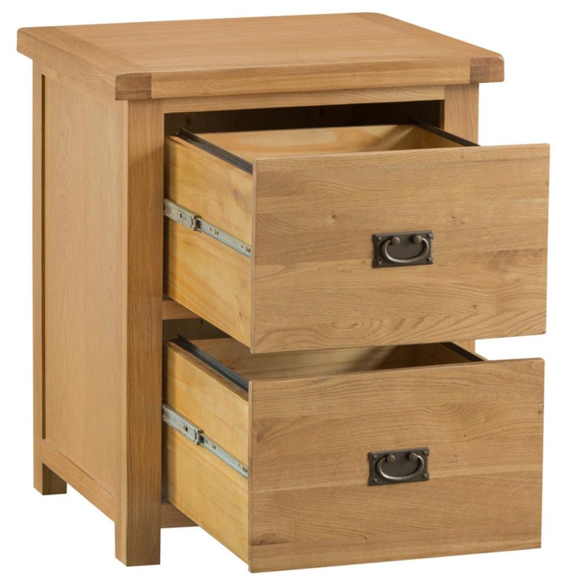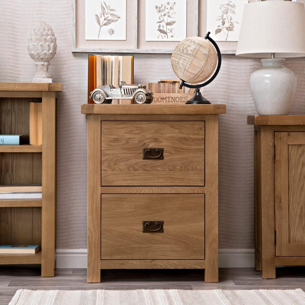 Working from home? Place the Winchester oak filing cabinet next to your desk to make sure you have all your essential documents in one handy place. This cabinet is made from durable wood with a natural oak finish that gives it a traditional feel. The solid surface is a good spot for your phone, a pen holder and a couple of books. The main features are two deep drawers – they’re 42cm by 40cm – set on smooth rollers. Use these to pack away files, folders and notebooks in a space you know you’ll be able to easily find them when you need them.