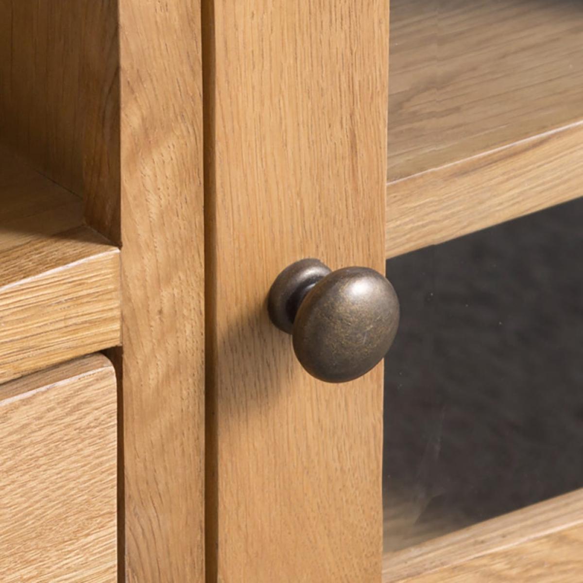 Weekend movie marathon? All you need is some good films, enough popcorn for everyone and one of our Winchester oak large TV units to give your telly a great place to sit. This natural oak cabinet has so much room. The chunky surface is for the TV, then beneath this there is an open shelf for a DVD player or games console. This sits above a 64cm x 42cm cupboard for the accompanying DVDs and games. Finally, at either side there’s a glass-fronted cupboard for you to display a few of your more impressive film choices.