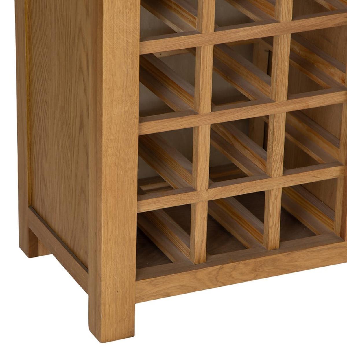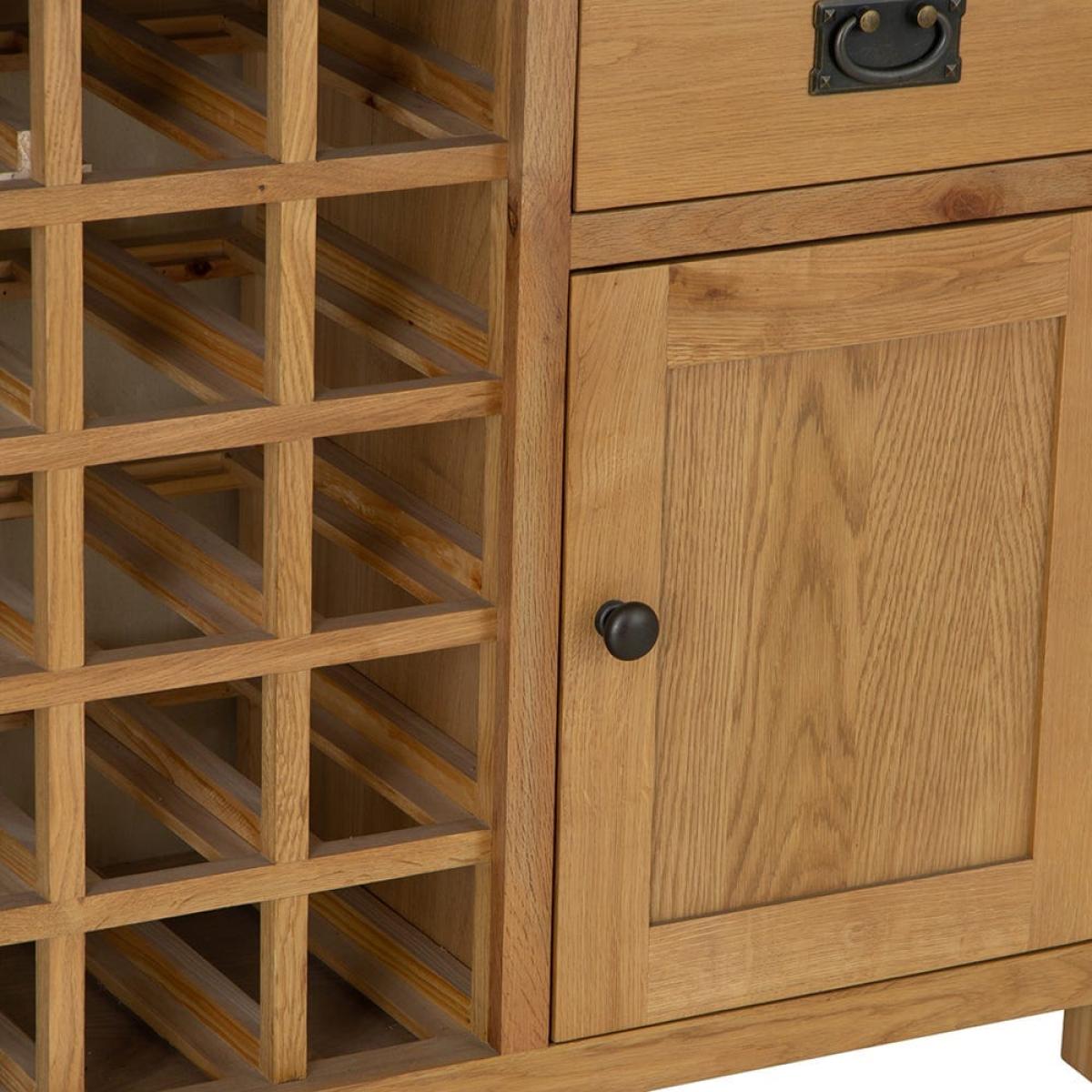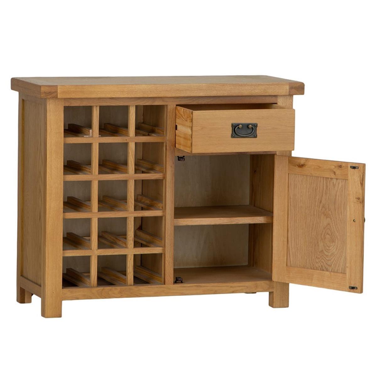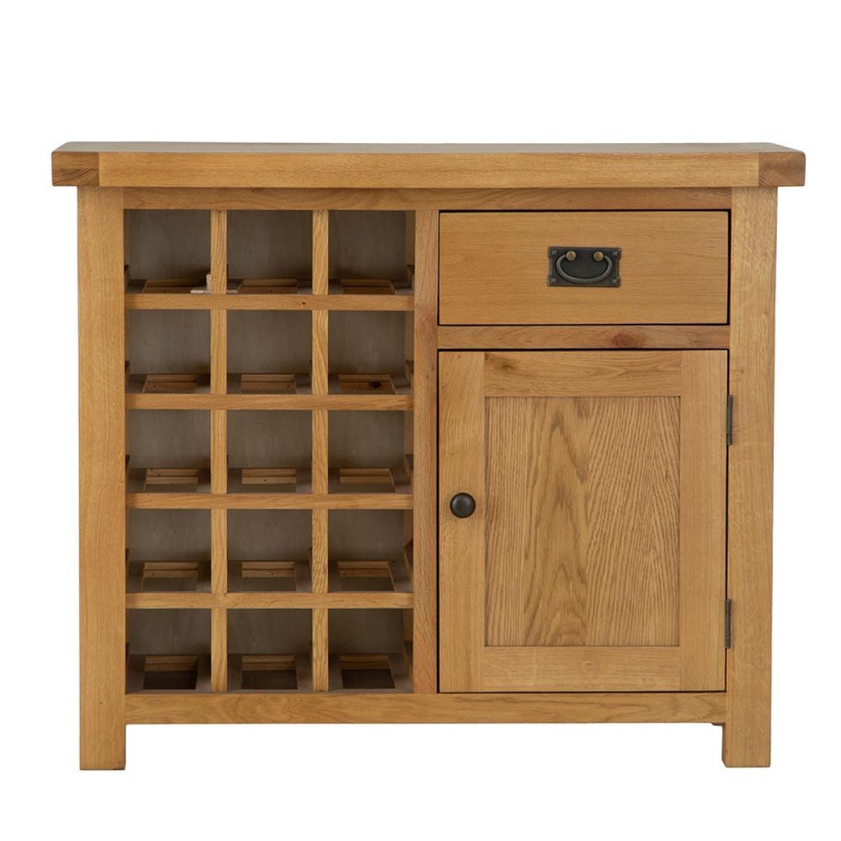 Our Winchester oak small sideboard with wine rack is sure to get any party started. It’s got 15 cubbies for your best bottles, plus a handy cupboard for glassware, coasters and plates. You can use the spacious drawer for corkscrews and bottle openers, and leave the top clear for decanting, aerating and pouring. This petite sideboard looks the part too, with its blend of solid oak and real oak veneer bringing a dash of traditional charm to any corner of your home. The chunky proportions, dovetailed joints and brass-effect handles further enhance its old-school appeal.