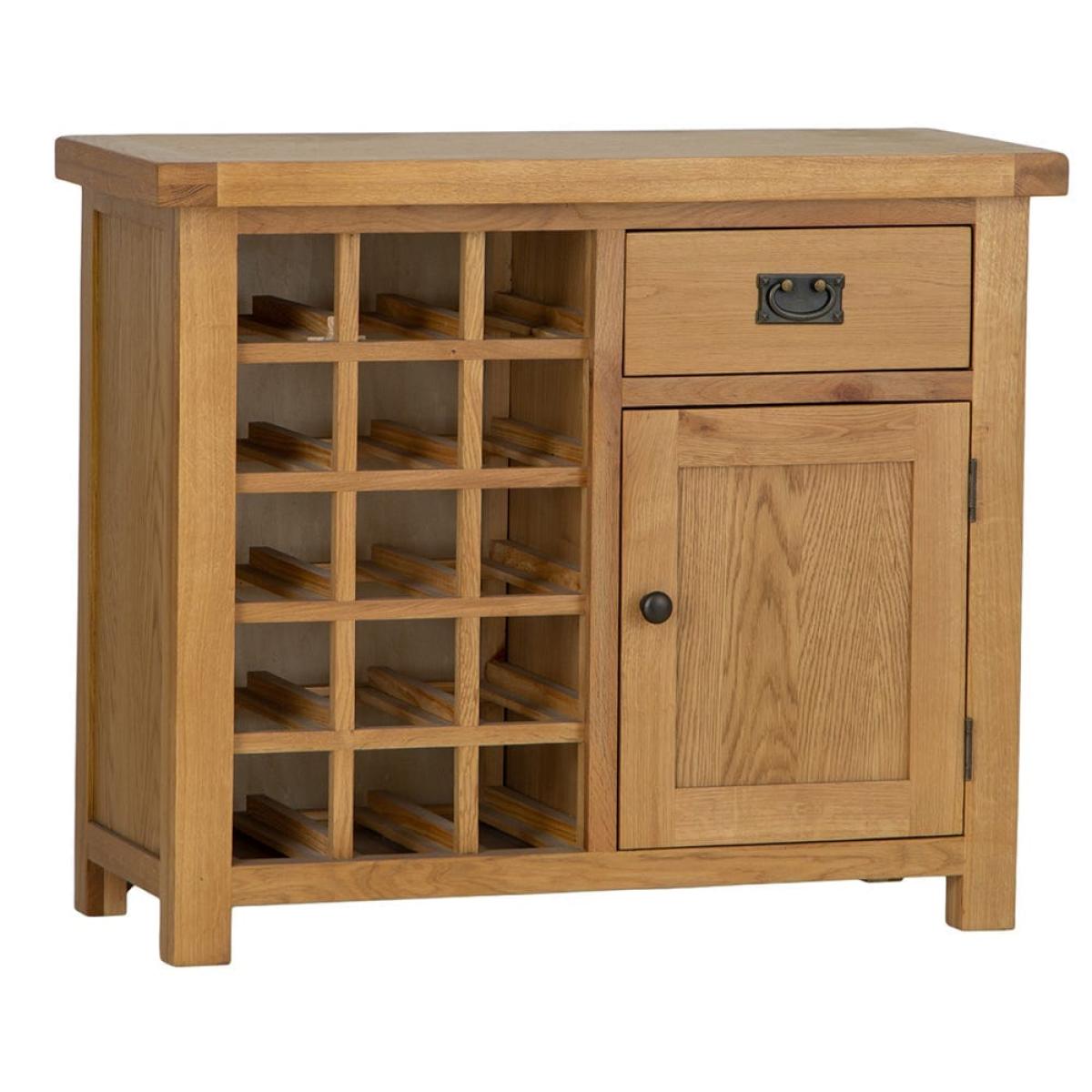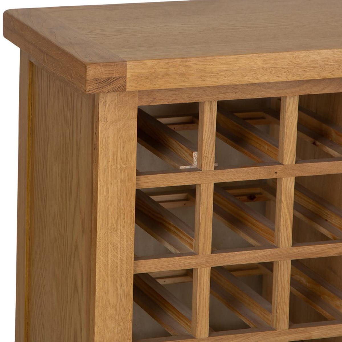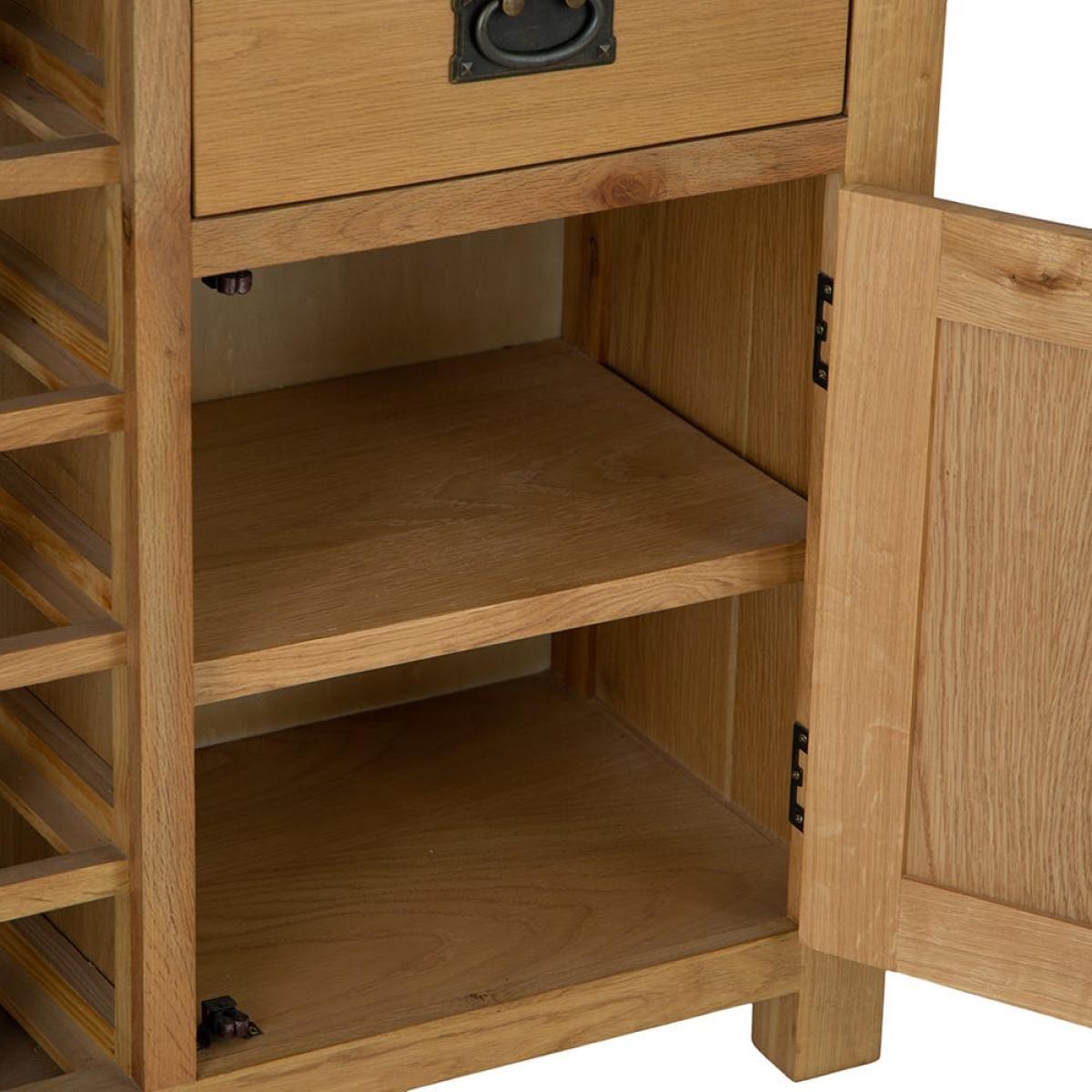 Our Winchester oak small sideboard with wine rack is sure to get any party started. It’s got 15 cubbies for your best bottles, plus a handy cupboard for glassware, coasters and plates. You can use the spacious drawer for corkscrews and bottle openers, and leave the top clear for decanting, aerating and pouring. This petite sideboard looks the part too, with its blend of solid oak and real oak veneer bringing a dash of traditional charm to any corner of your home. The chunky proportions, dovetailed joints and brass-effect handles further enhance its old-school appeal.