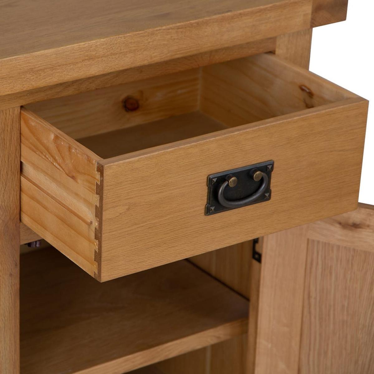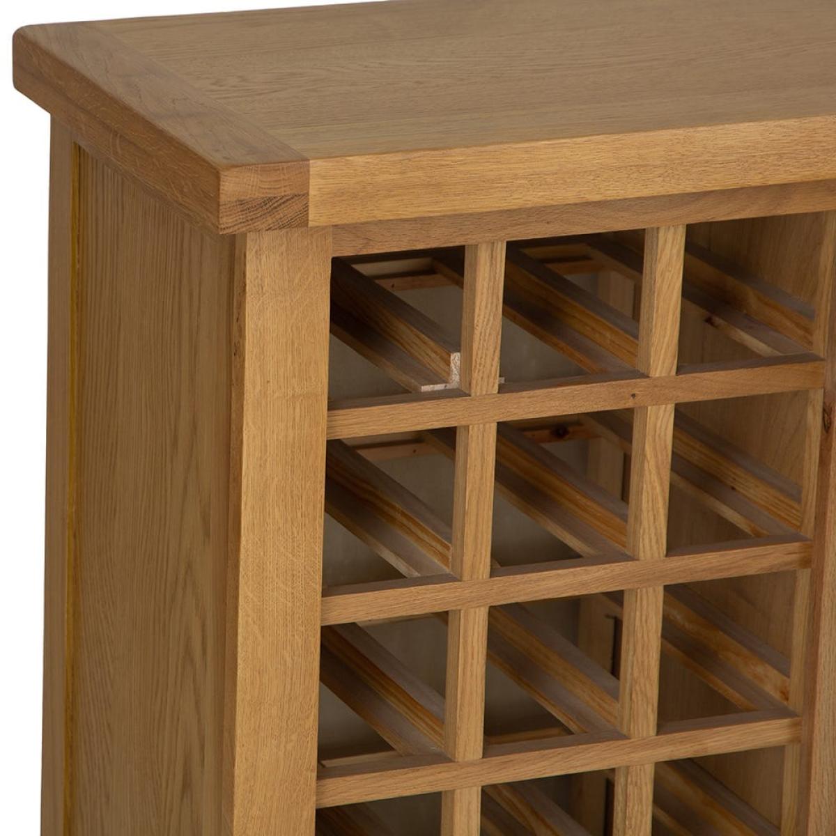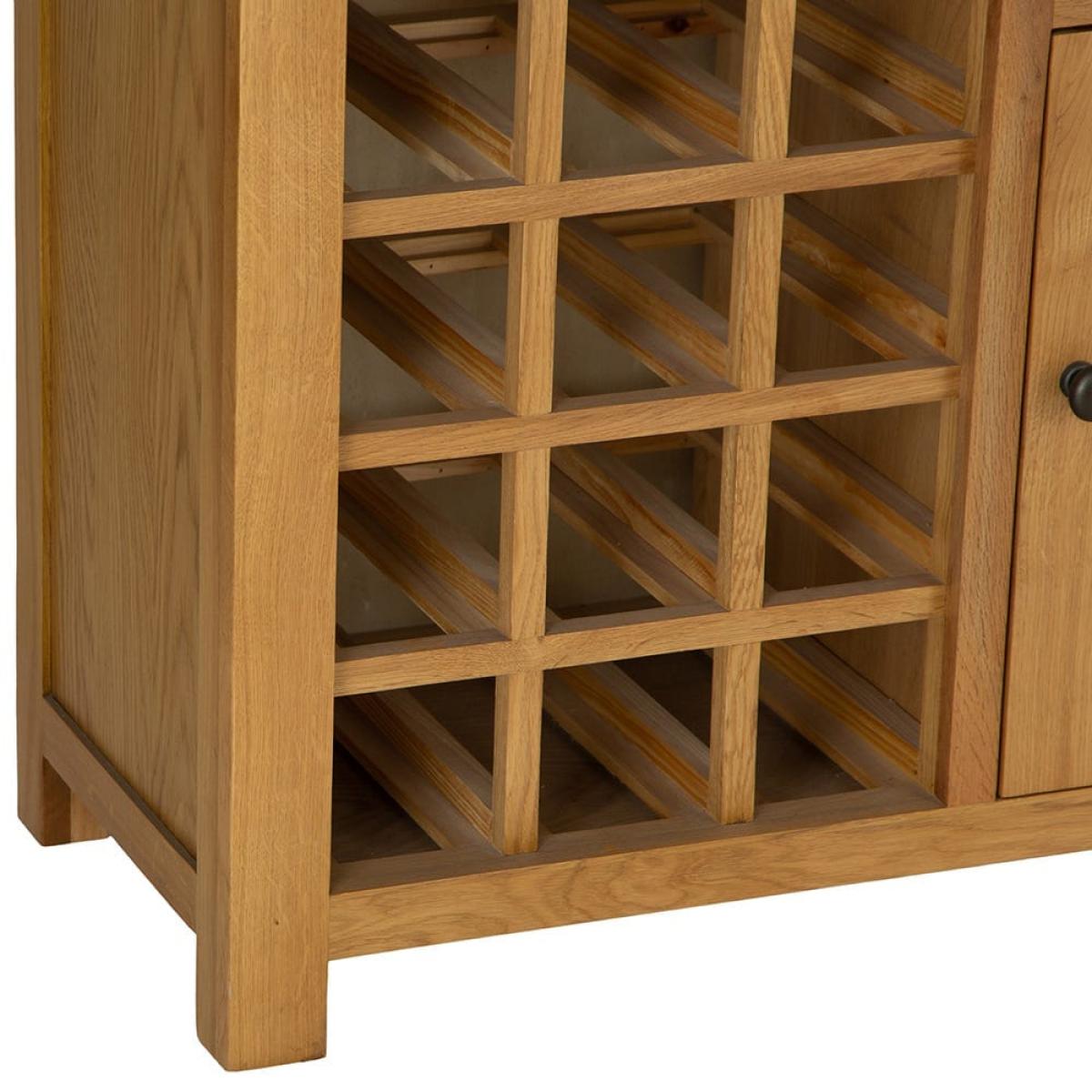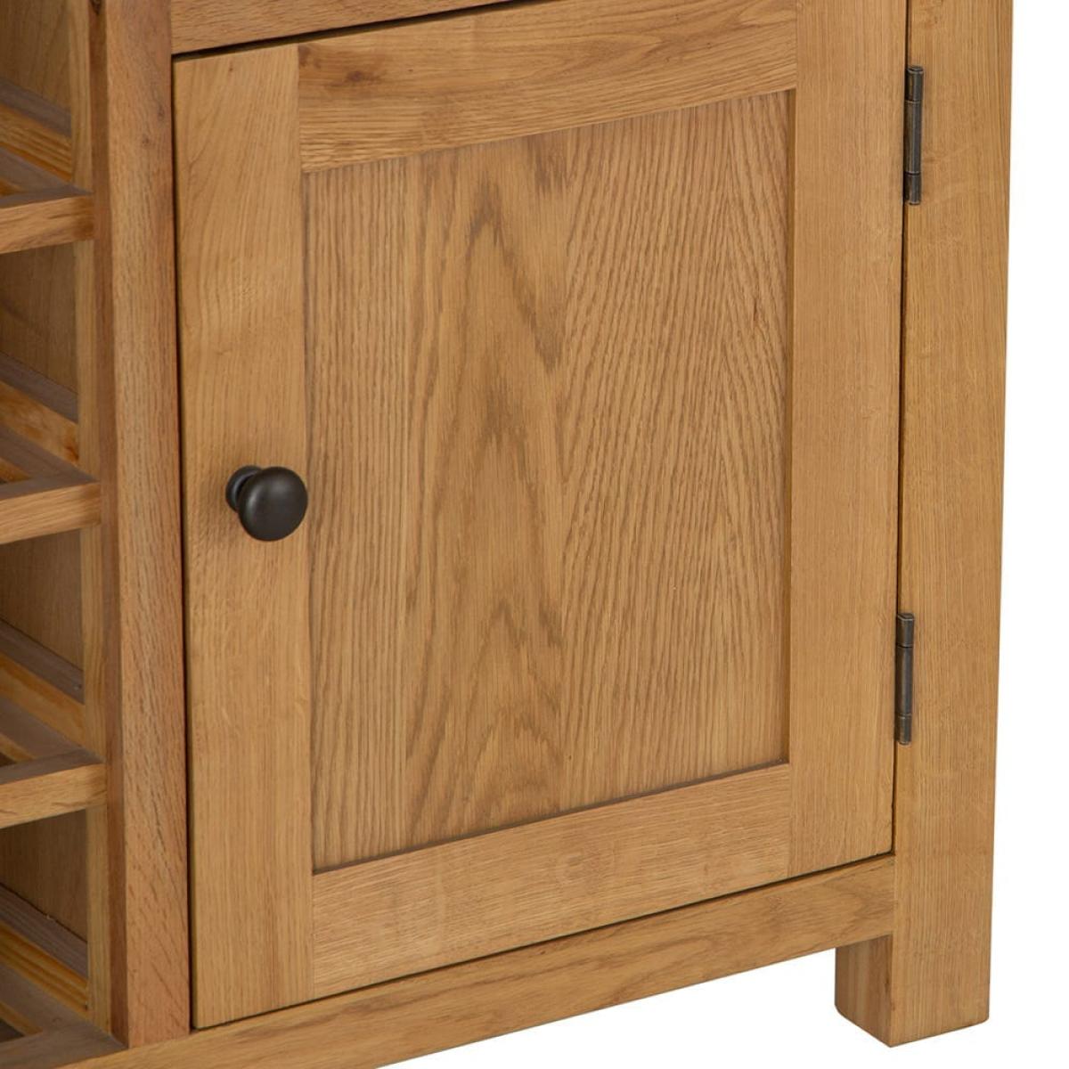 Our Winchester oak small sideboard with wine rack is sure to get any party started. It’s got 15 cubbies for your best bottles, plus a handy cupboard for glassware, coasters and plates. You can use the spacious drawer for corkscrews and bottle openers, and leave the top clear for decanting, aerating and pouring. This petite sideboard looks the part too, with its blend of solid oak and real oak veneer bringing a dash of traditional charm to any corner of your home. The chunky proportions, dovetailed joints and brass-effect handles further enhance its old-school appeal.