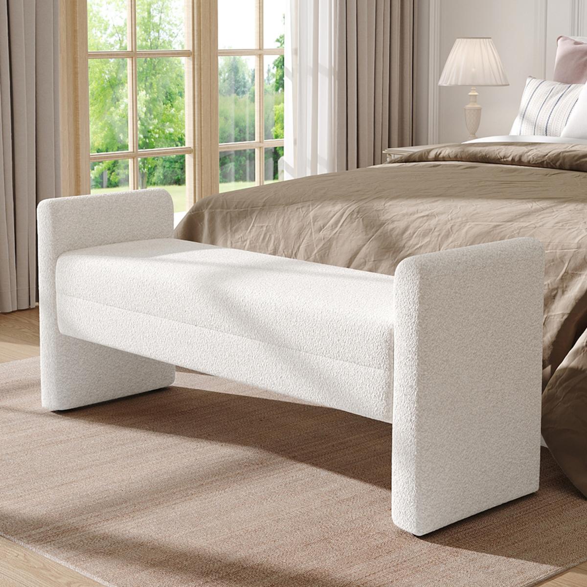 I’m a fan of this white upholstered bench for its clean lines and soft bouclé texture - it slips seamlessly into Scandi, contemporary or modern farmhouse schemes. Positioned at the foot of the bed or beneath a window, it adds both seating and a subtle focal point without overwhelming a neutral palette. Keep styling simple: drape a folded wool throw over one end, top with a slim tray holding a small vase or a couple of design books, and add a single muted cushion for contrast. In a hallway it doubles as a shoe bench - just tuck a low wicker basket underneath for extra storage.