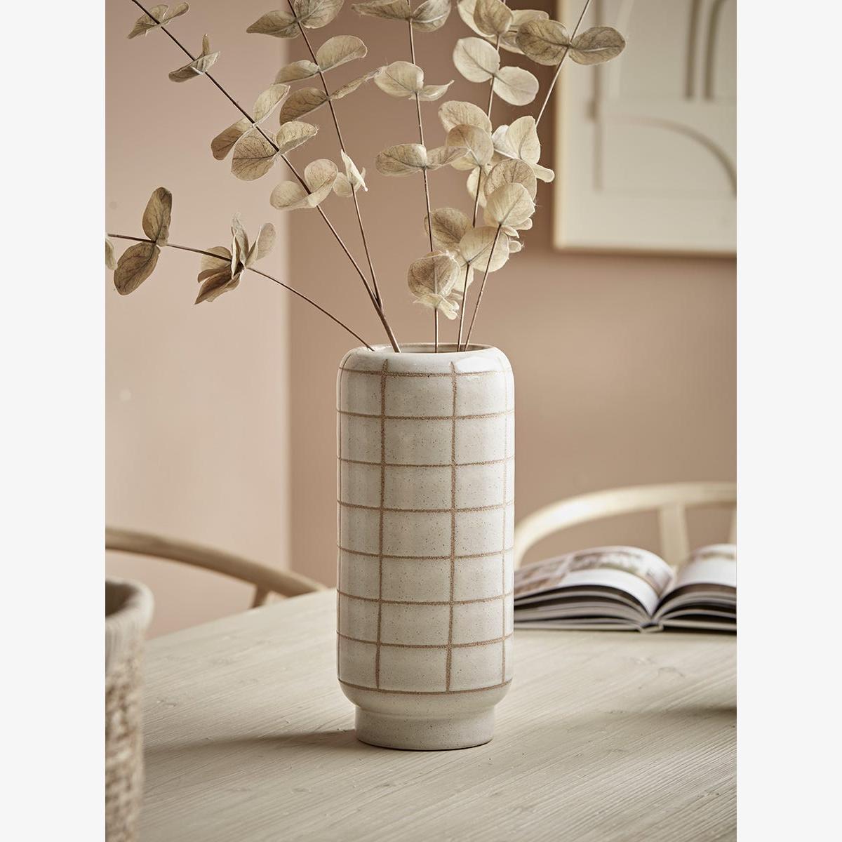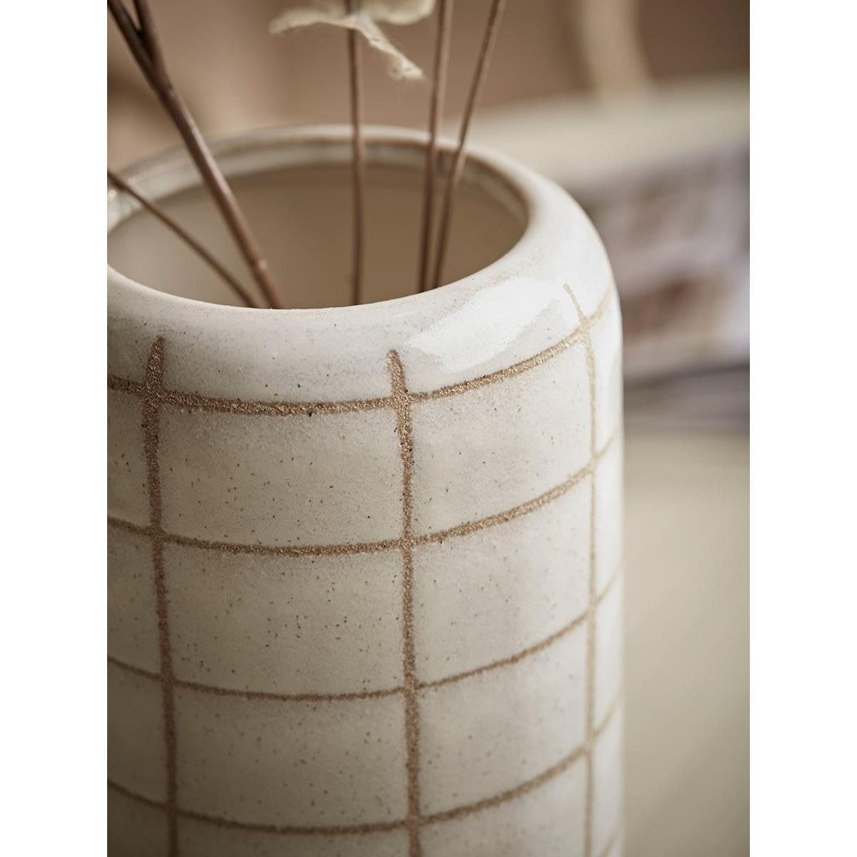 Slender and tall, this elegant vase is crafted from a neutral ceramic that is perfect for holding taller stems. Finished with a delicate grid line detailing in neutral tones, this vase works beautifully in a variety of interior schemes.