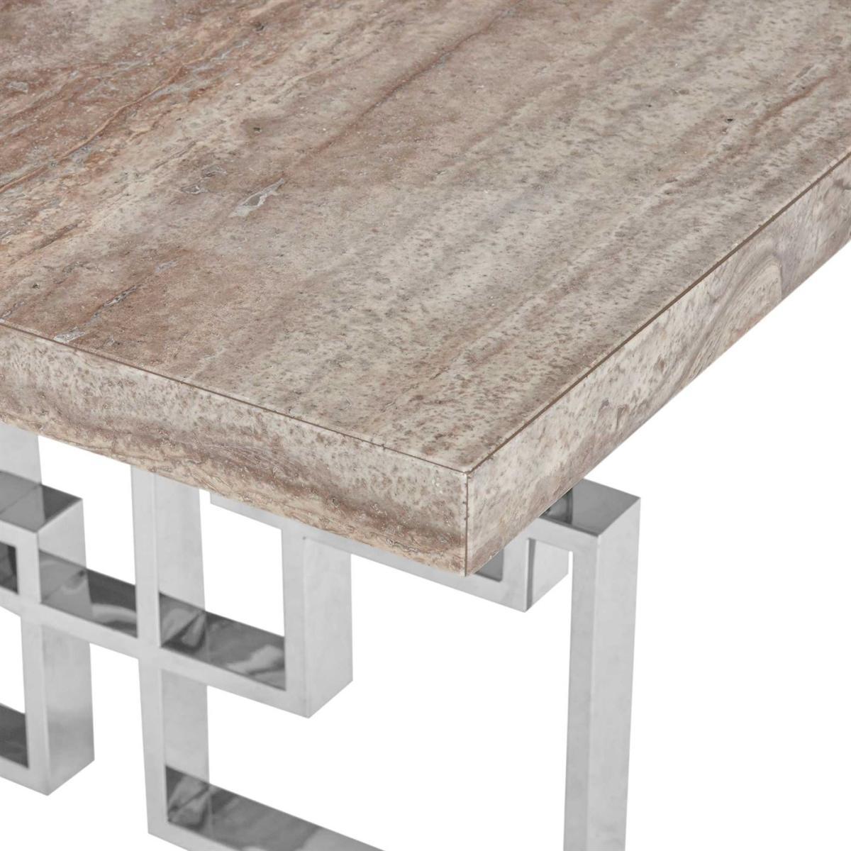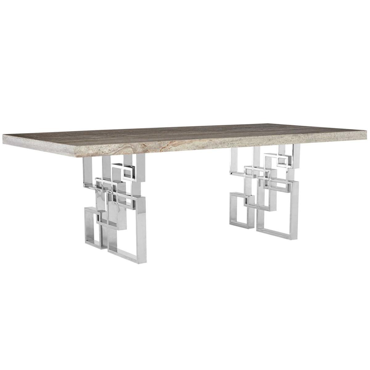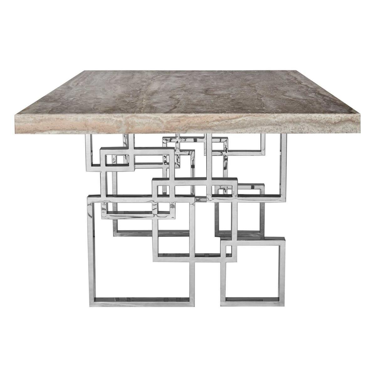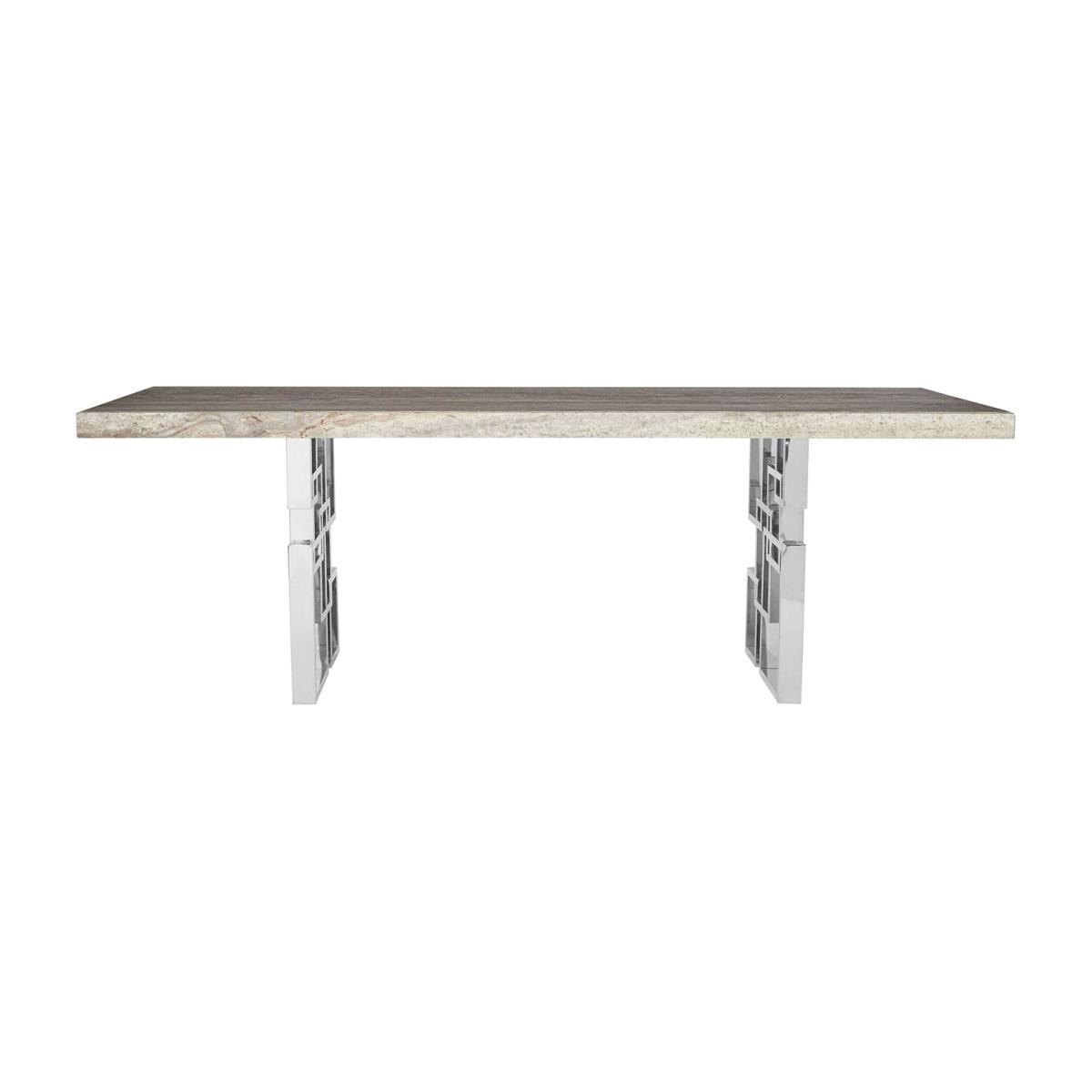 Design. A striking combination of luxurious stone and stainless steel fashioned into a simple yet quirky design, the Windows dining table offers glamour and brings dramatic impact to your dining space. Channelling a modern, contemporary look, this stunning table is all about that mixed material trend, with captivating legs in a intriguing collage style providing sturdy support while its thick stone top shows off all the fabulous detail of the stone for a truly beautiful finish with lots of lasting appeal. The Windows table is perfect for those who love to entertain.