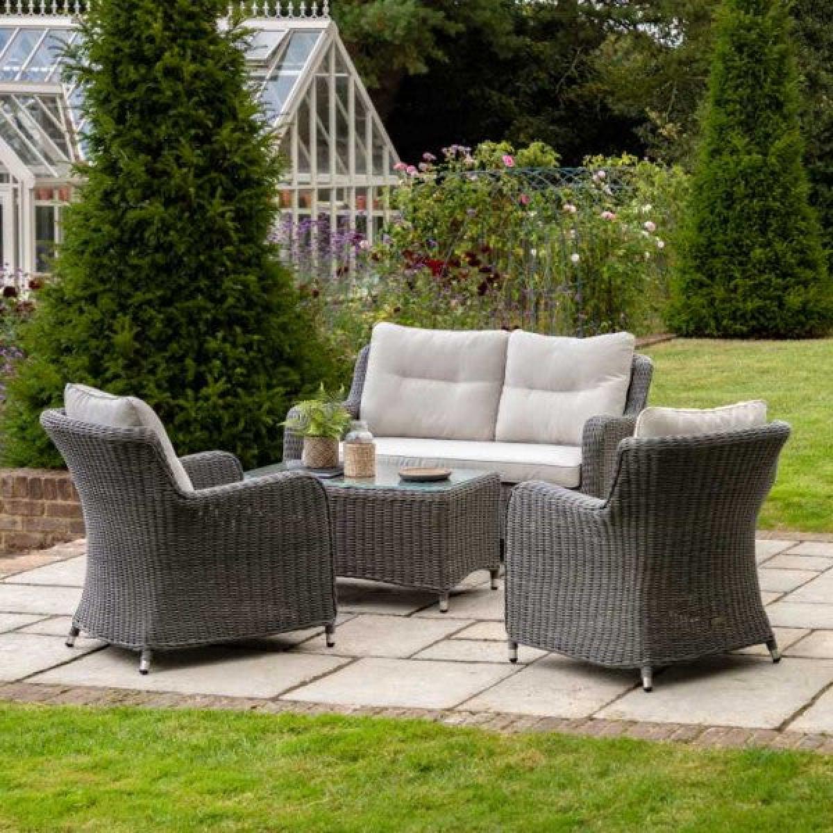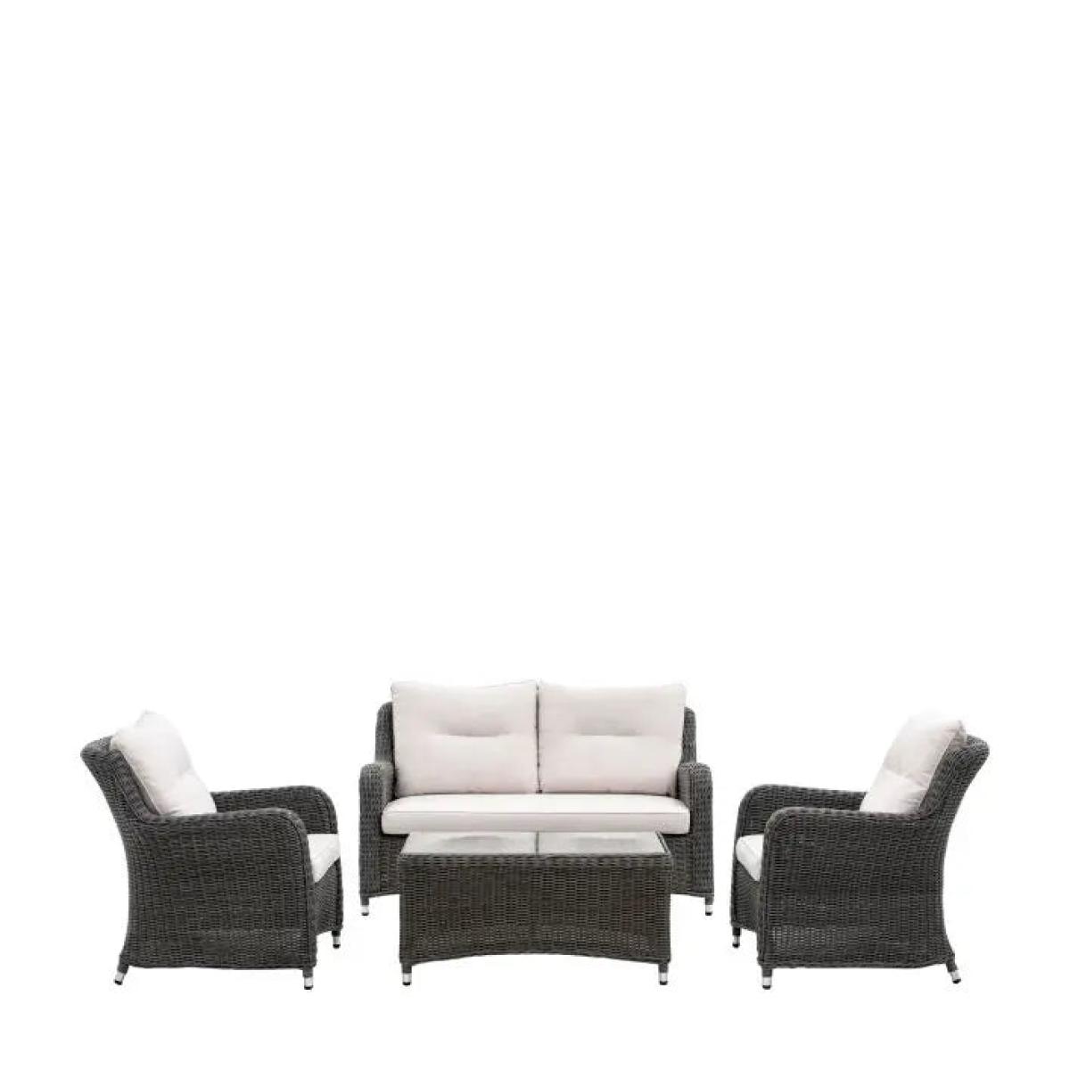 This stylish outdoor seating set includes two armchairs, a sofa and a coffee table, all crafted with a blend of wicker and plush cushions. The neutral color palette complements any outdoor decor, while the durable construction ensures years of enjoyment. Perfect for relaxing with family or entertaining guests, this set adds a touch of sophistication to your outdoor living space. This stylish outdoor seating set includes two armchairs, a sofa and a coffee table, all crafted with a blend of wicker and plush cushions. The neutral color palette complements any outdoor decor, while the durable construction ensures years of enjoyment. Perfect for relaxing with family or entertaining guests, this set adds a touch of sophistication to your outdoor living space.