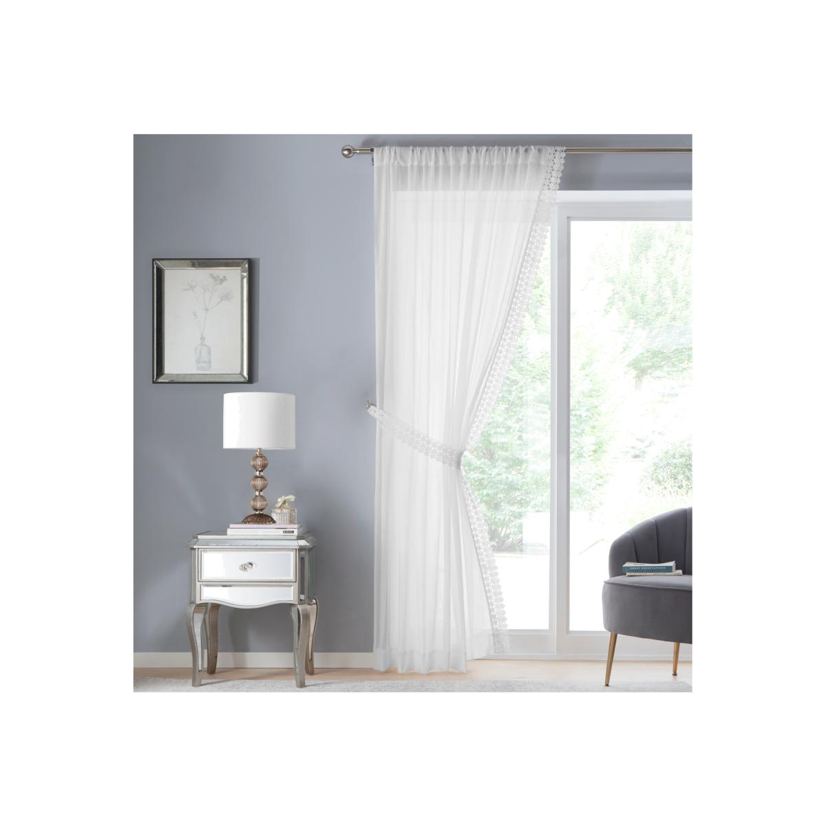 Windsor Macrame Edge Voile with Tie - White / 183cm