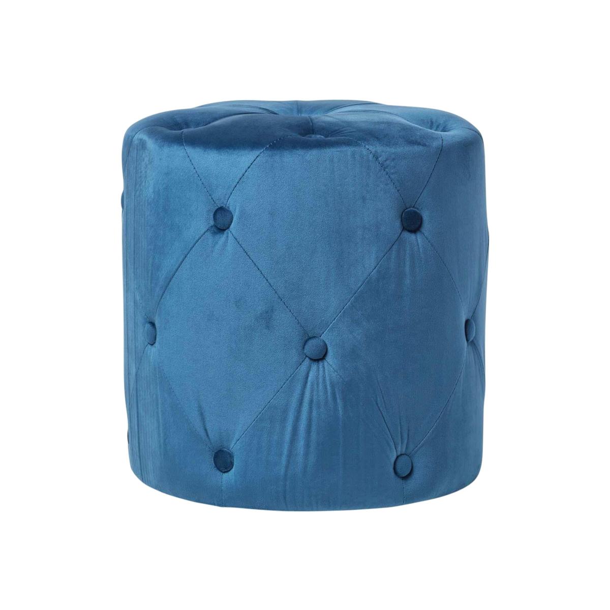 The Windsor pouffe, an exclusively designed statement making footstool from Homescapes. Add a touch of sophistication to your interiors with this super soft round velvet footstool, expertly designed to complement on-trend styles and handcrafted by skilled artisans. Measuring 40 cm tall, the Windsor is upholstered in a deep blue velvet that has a quilted design which is complete with decorative buttons. A multifunctional pouffe that can be used as a footrest, vanity stool, occasional seat or as a simple yet stunning room accessory that will compliment modern and traditional interior styles. A lightweight round pouffe measuring 40 x 40 x 40 cm, Windsor is available in a range of 3 complimentary colours (blue, grey and mustard) and is part of Homescapes exclusive collection of velvet pouffes and footstools. Wipe clean only. No assembly required.