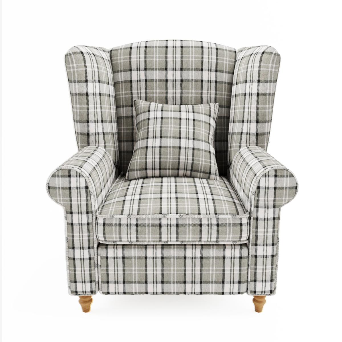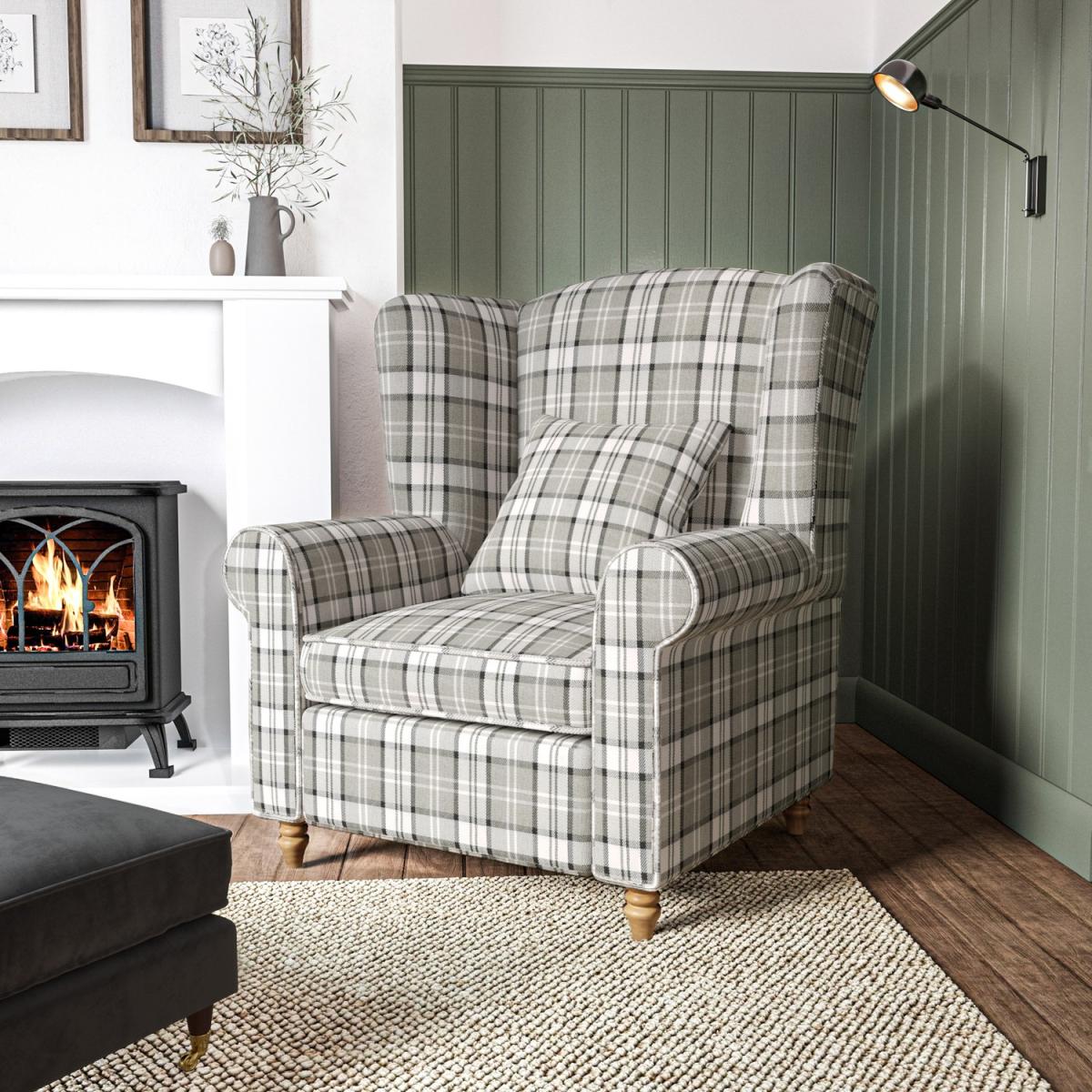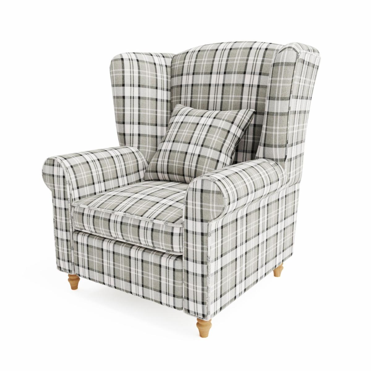Wingback Chair in Grey Tartan Fabric - Rupert