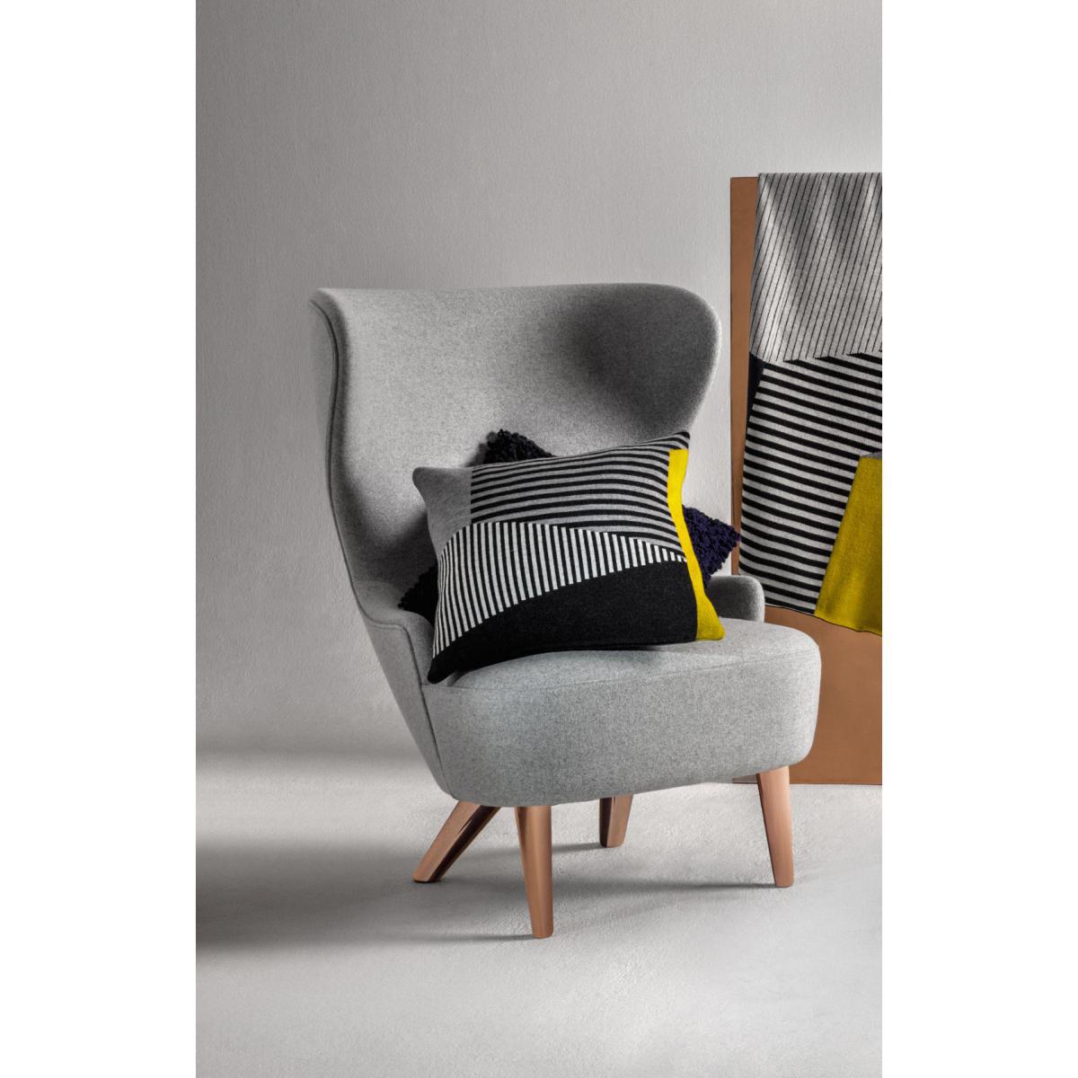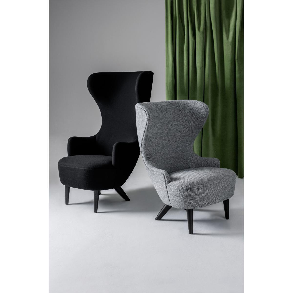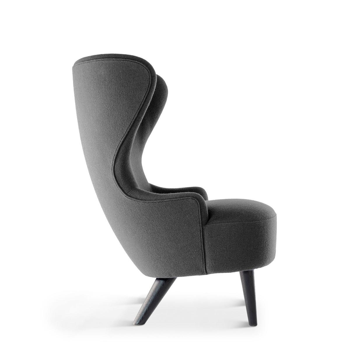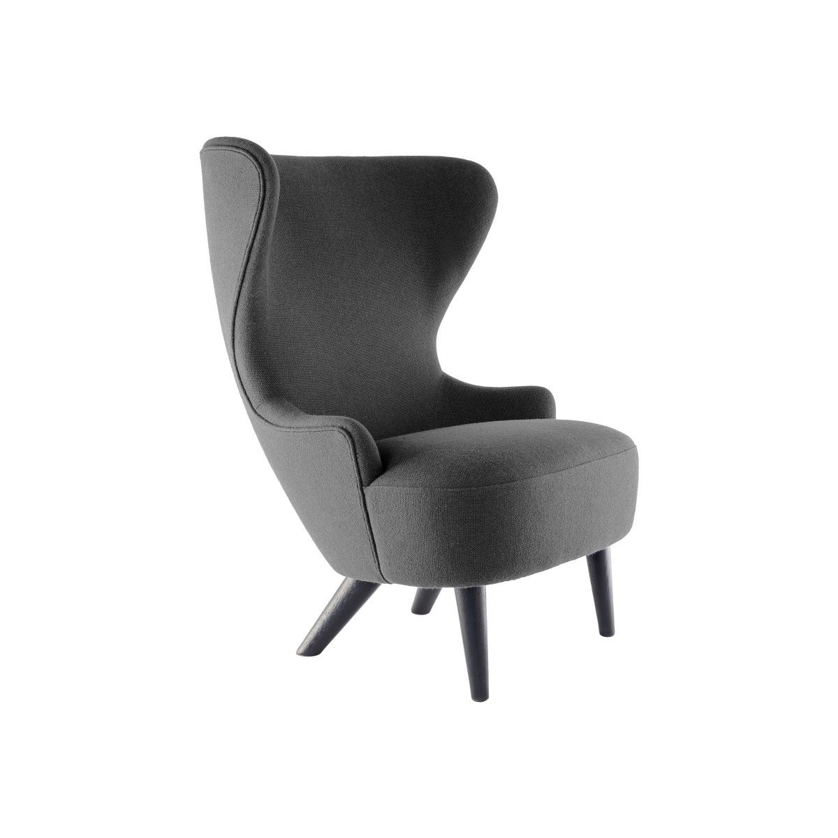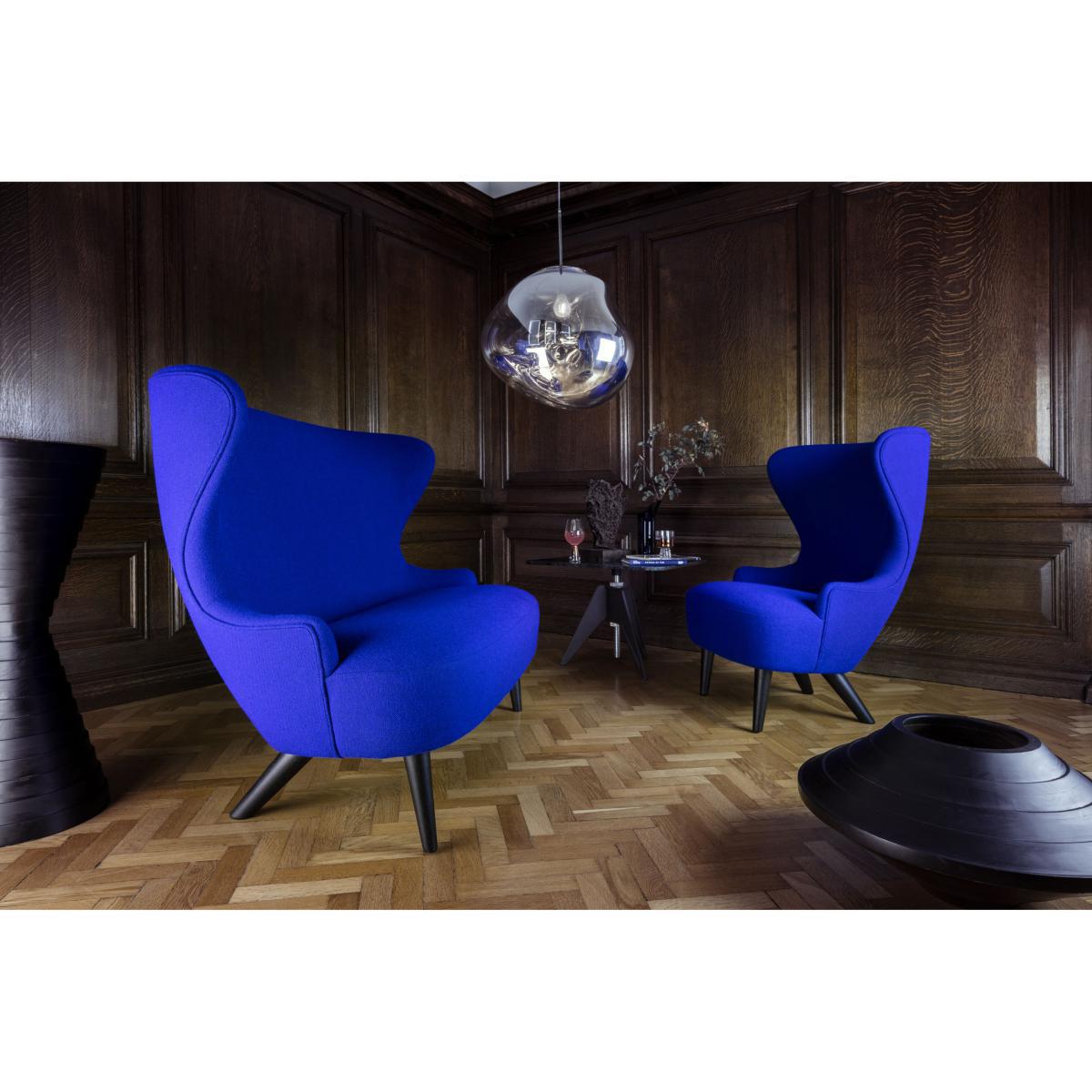 Tom Dixon reissues the Wingback chair for our pleasure. The famous English designer created this superb armchair for a very exclusive private club in London. With its curved shapes, the “Wingback” is the feminine, glamorous version of the classic armchair found in English gentlemen's clubs. This resolutely modern creation has a quality specific to the craft tradition. The generous padding, wide seat and high wrap-around backrest ensure optimal comfort. This chair becomes a screen that envelops us and protects us from prying eyes. Thanks to the sturdy steel springs in the seat, the Wingback will keep its shape over time. The high-end Kvadrat fabric really makes the most of the armchair's lines. The legs are in black lacquered solid oak. From the collaboration between Tom Dixon and George Smith, the Wingback collection combines the best of contemporary design and traditional craftsmanship.