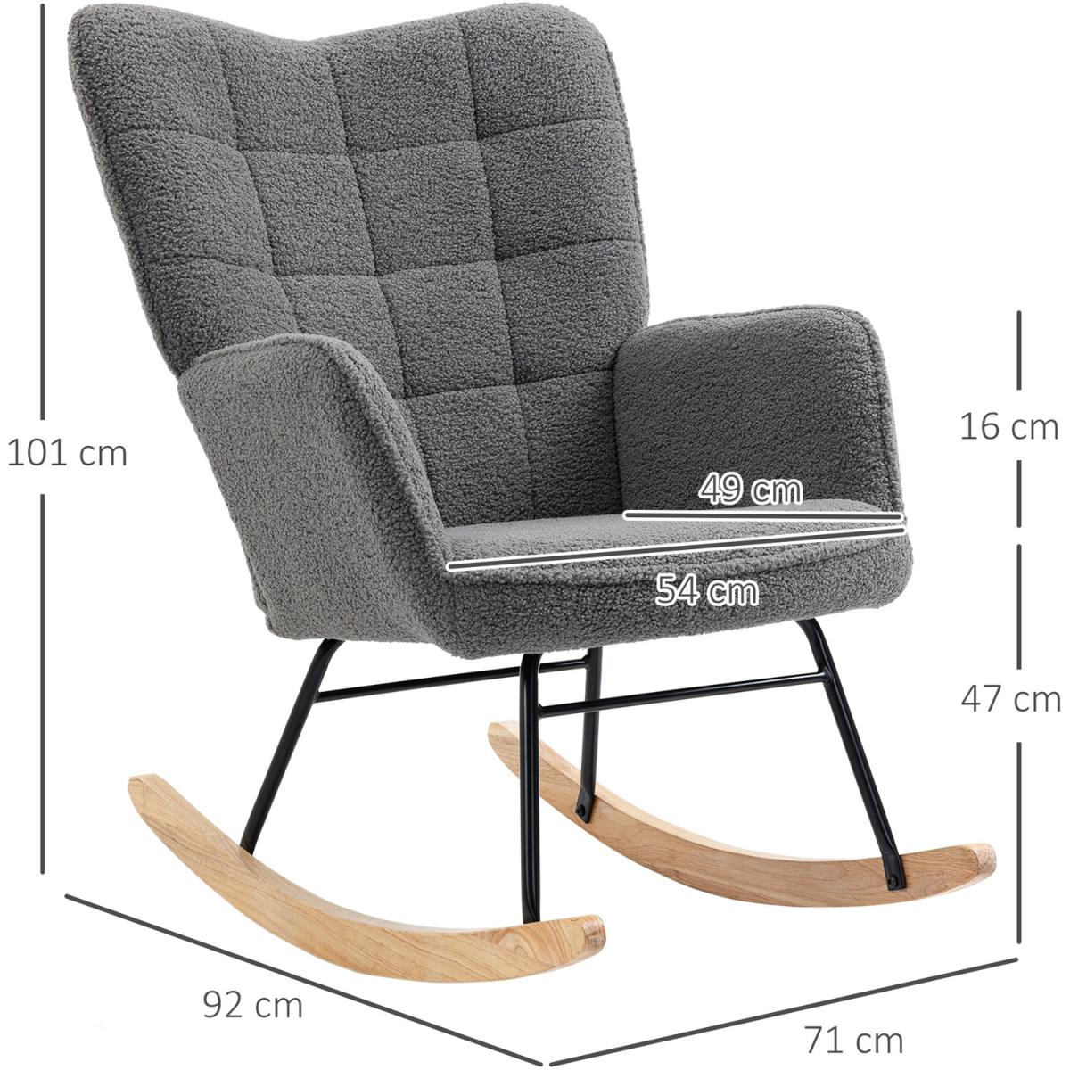 Soft, rocking and spacious - take time out in comfort with this HOMCOM rocking chair. The wingback shape comes in a large size, so there's plenty of room to sink into, with a padded seat for comfort and high back and armrests for support. Metal legs for support, fitted with a curved wooden base - rock forwards and backwards gently. Finished with fleecy upholstery, adding to the overall softness and comfort.