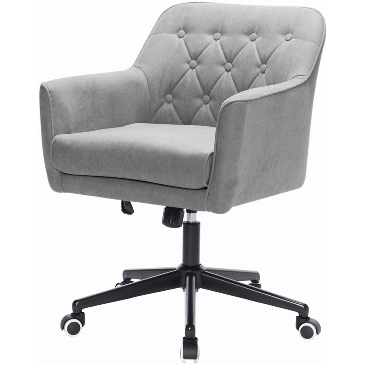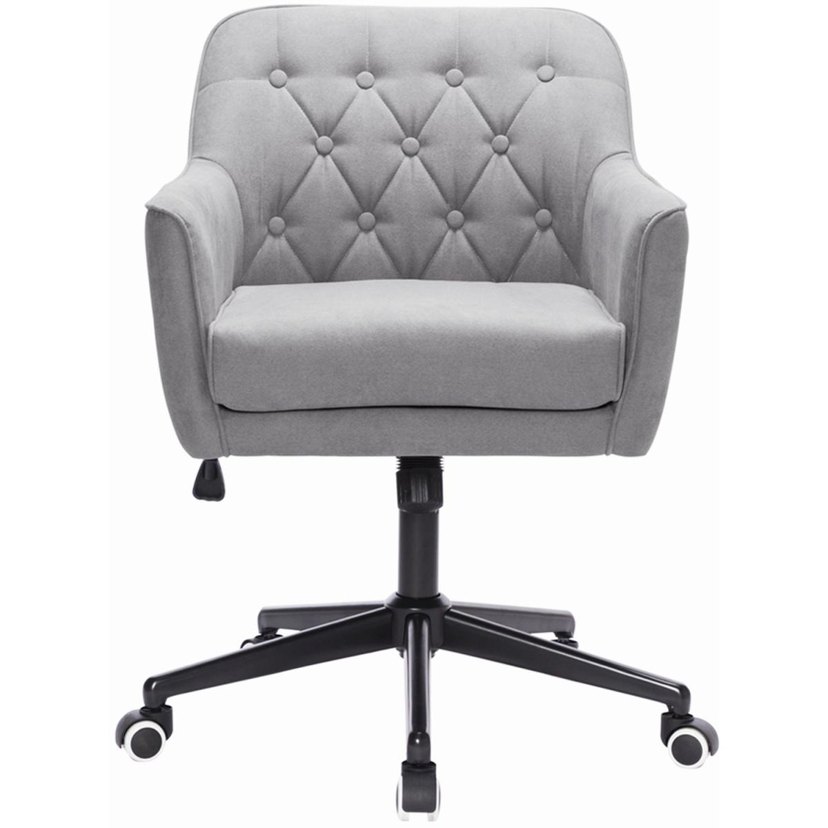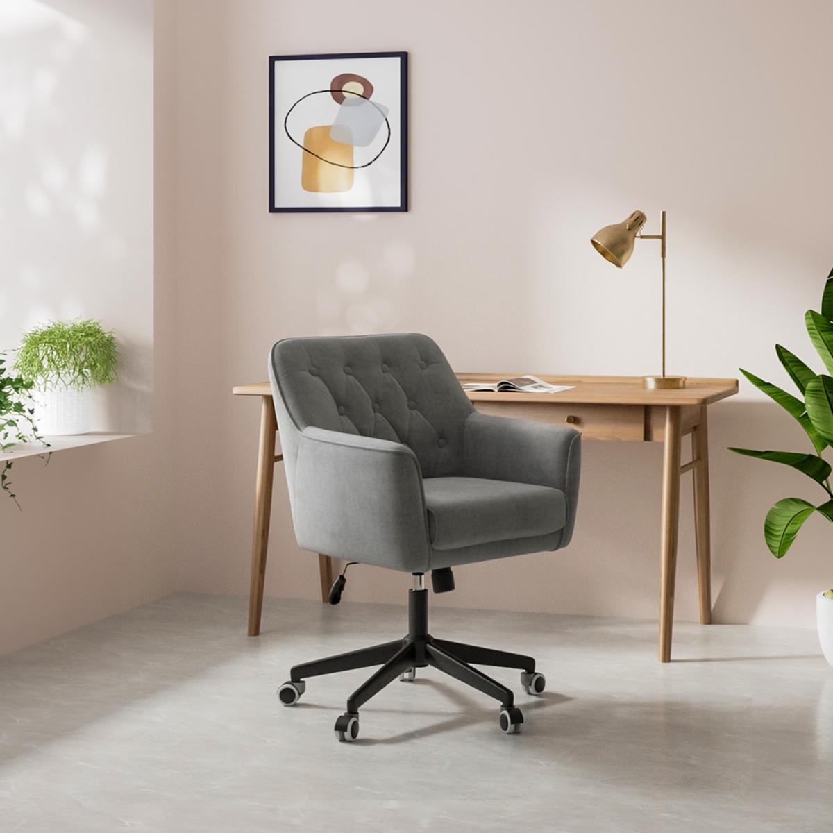 I love this wingback office chair for its blend of classic style and modern practicality. The light grey fabric adds a neutral, sophisticated touch that pairs well with a variety of interiors, from contemporary minimalist to cosy vintage-inspired spaces. Its tufted back and elegant shape make it a statement piece in a home office or creative corner, while the swivel base and casters offer functional versatility. To style it effectively, consider pairing with a sleek glass or wooden desk and layering with textured cushions or throws in contrasting colours for added comfort and visual interest. This chair balances form and function perfectly, making it a versatile choice for elevating your workspace.