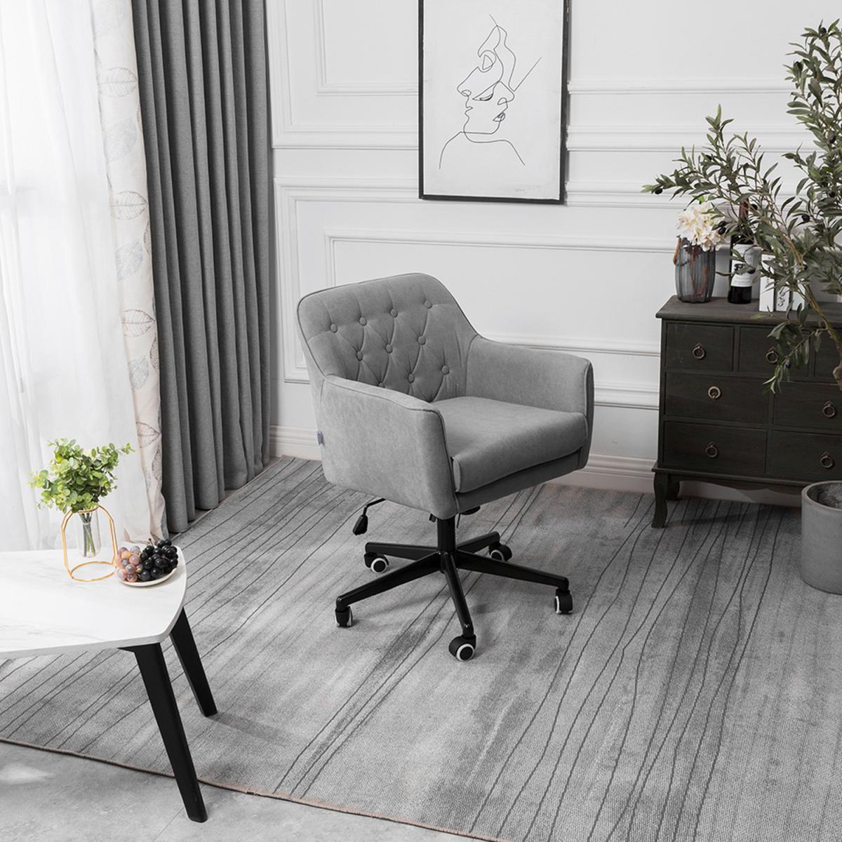 The wingback chair is upholstered in high-quality fabric and features in Rhombus shape design by pulled button on its surface. The comfortable padding offers great cosy and won't cause fatigue after sitting for a long period. The adjustable height feature makes this a practical and versatile addition to an executive office, home workspace, or living room.