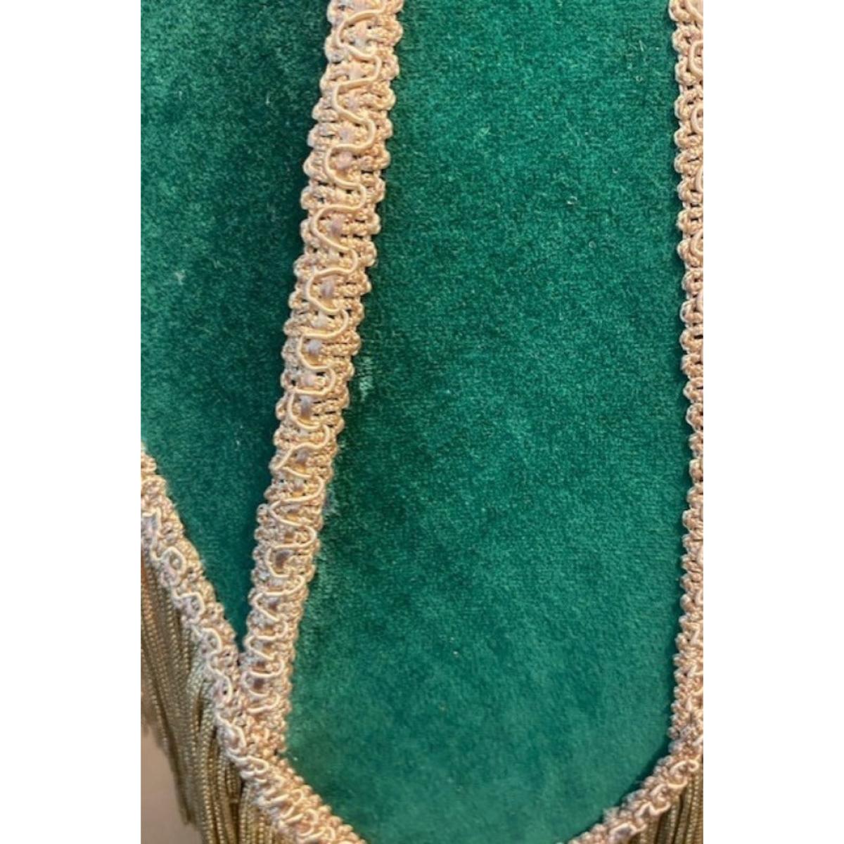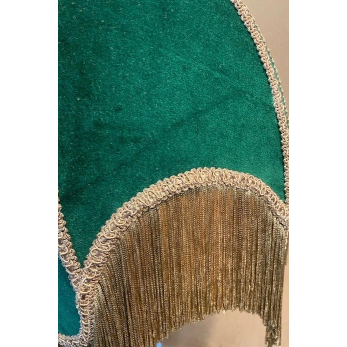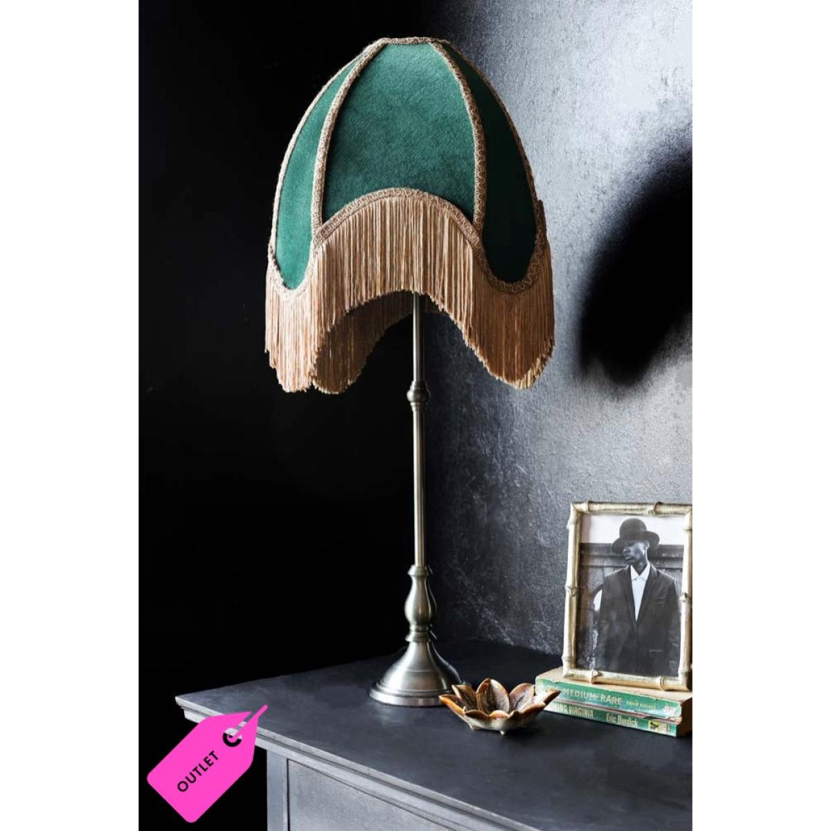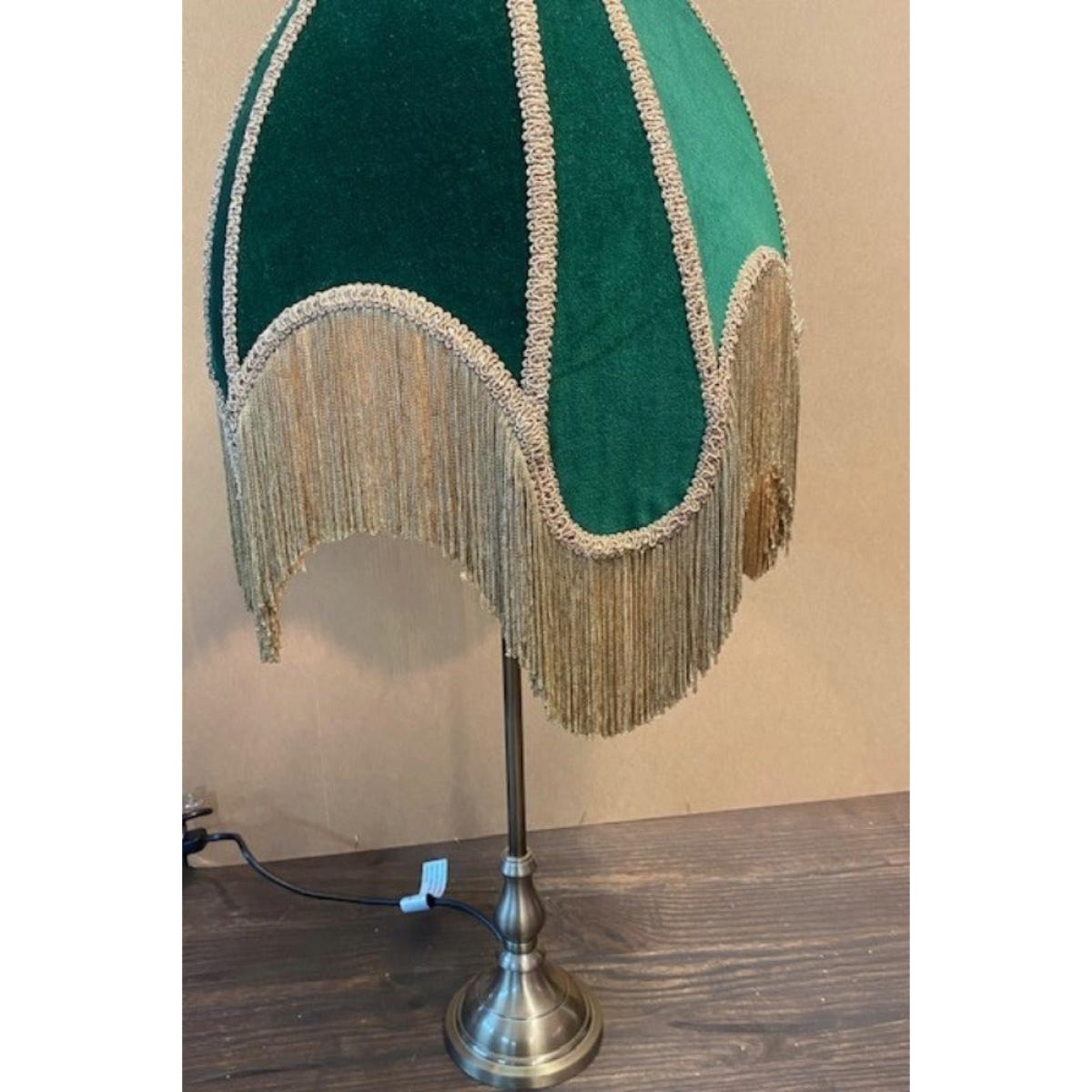 Indulge your vintage dreams with the Winifred Green Velvet Fringe Table Lamp — a perfect piece for the bohemian, detail-loving soul. This Slightly Imperfect lamp features minor flaws in the velvet but remains utterly enchanting, showcasing a lush green velvet shade finished with soft gold fringing. A true statement piece, this fringed beauty may serve as a side lamp, but it effortlessly steals the spotlight. With its elegant nickel base, rich forest-green velvet, and decadent trim, it embodies the essence of laid-back luxury and timeless charm. - Green velvet table lamp with gold fringing - Measures: H75cm x Dia:35cm- Classic metal base with a nickel finish - Requires an E14 bulb max 40W