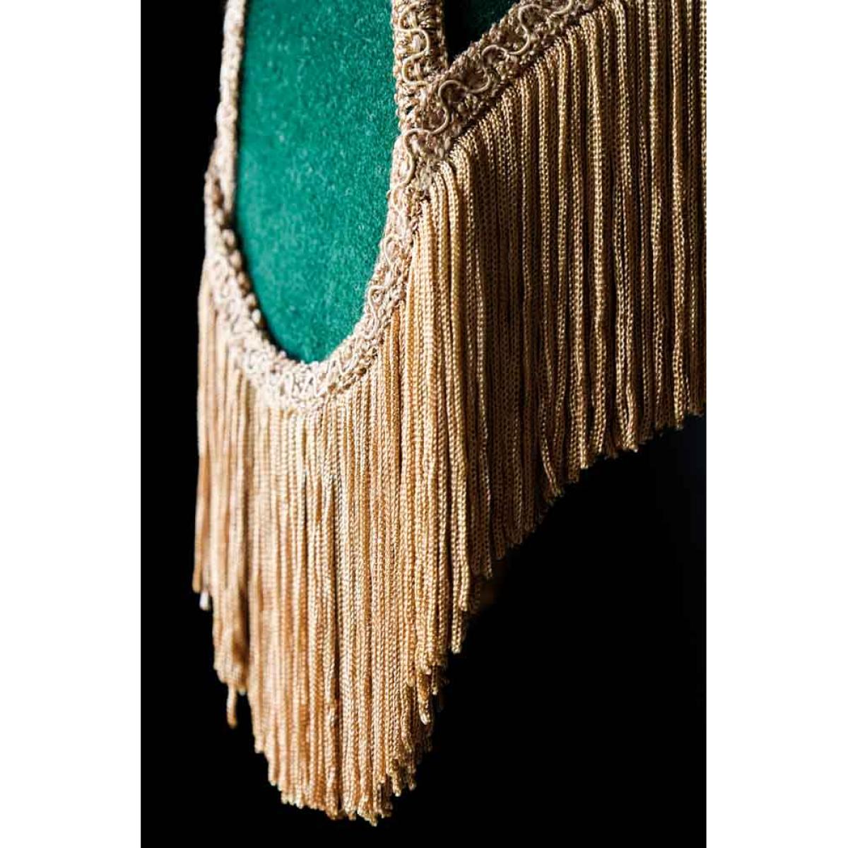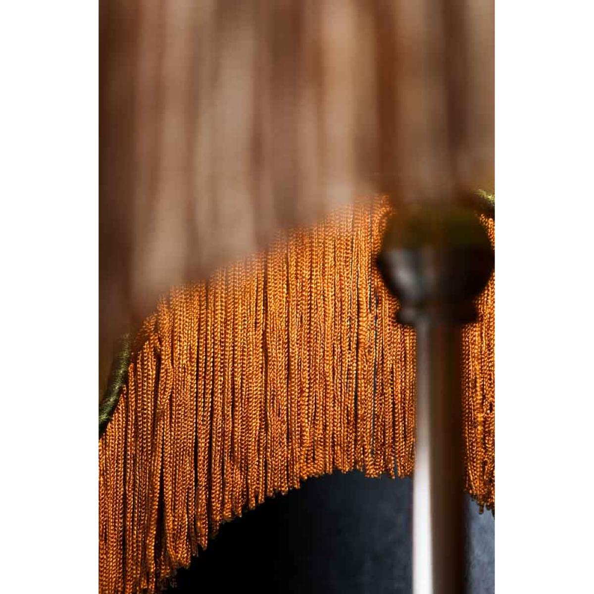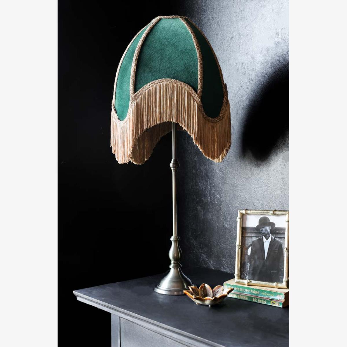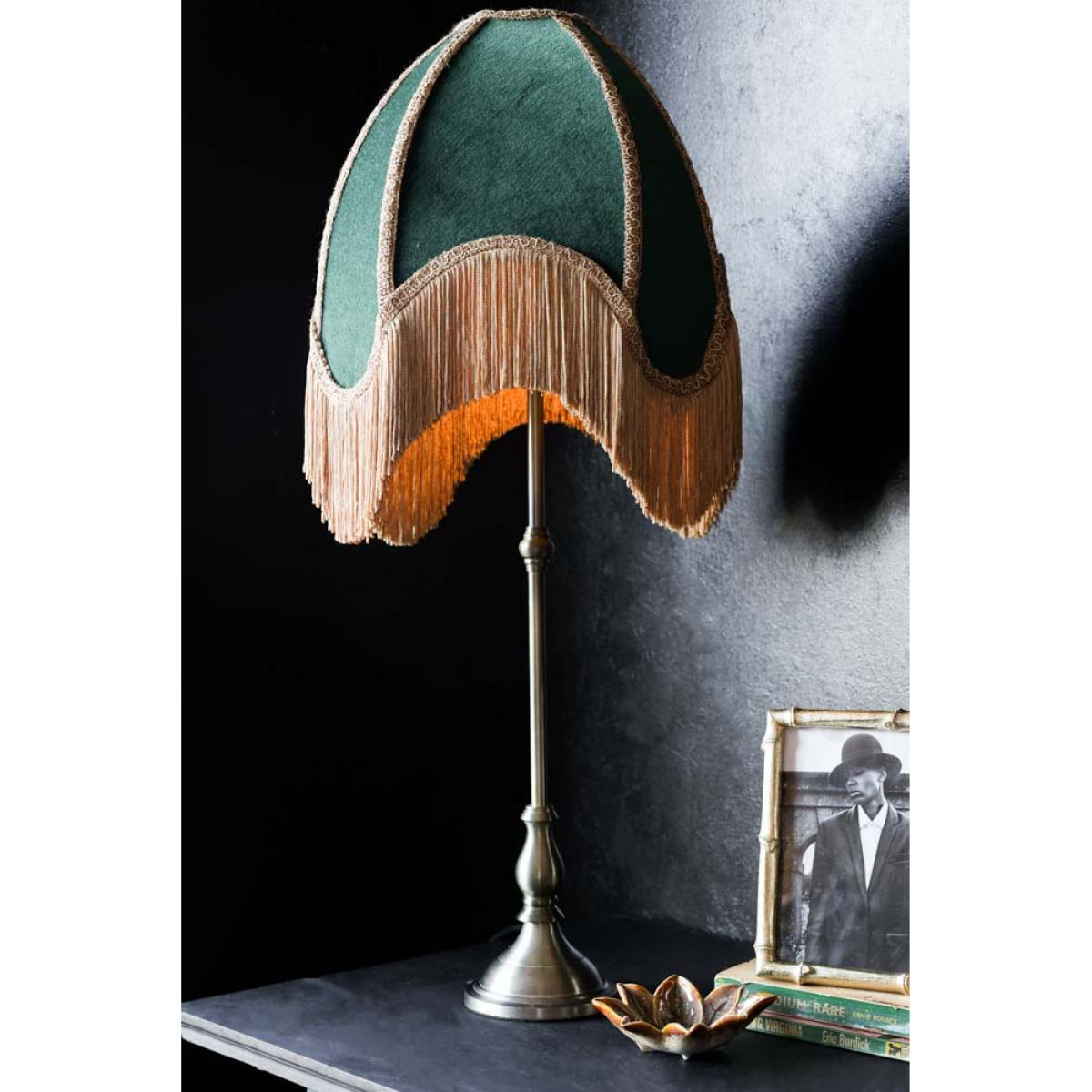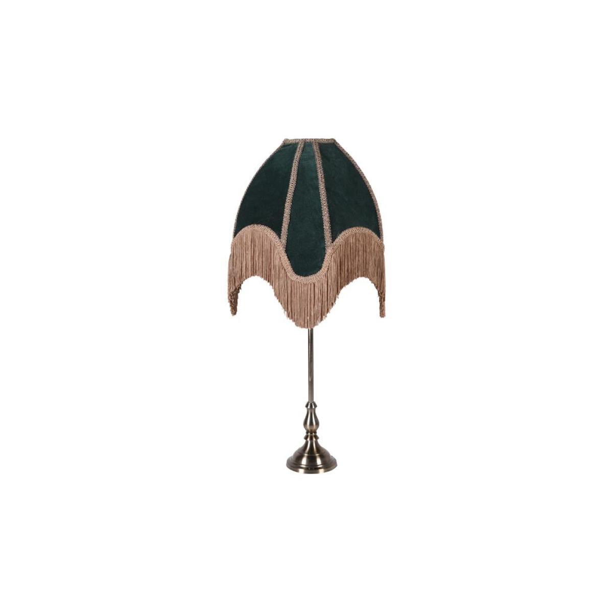 Indulge your wildest vintage dreams with the Winifred Green Velvet Fringe Table Lamp. The perfect table lamp for celebrating your inner bohemian detail-obsessed diva, the design features a gorgeous green velvet lampshade with soft gold fringing. A true hero piece for your home, the fringed table lamp may be a side light, but there is no denying it’s the main event. With gorgeous decorative trim, forest green velvet and a classic nickel base, the table light celebrates the power of laidback luxury, introducing vintage style anywhere from your living space to your bedroom. Perfect for creating the coveted vintage boudoir look, why not style the wonderful Winifred as a bedside table lamp next to the bed to master the art of mood lighting? Alternatively, display the green table lamp with fringe on your side table in the living room to elevate dark corners with boho charm and an inviting glow of light. - Green velvet table lamp with gold fringing - Measures: H75cm x Dia:35cm - Classic metal base with a nickel finish - Requires an E14 bulb max 40W