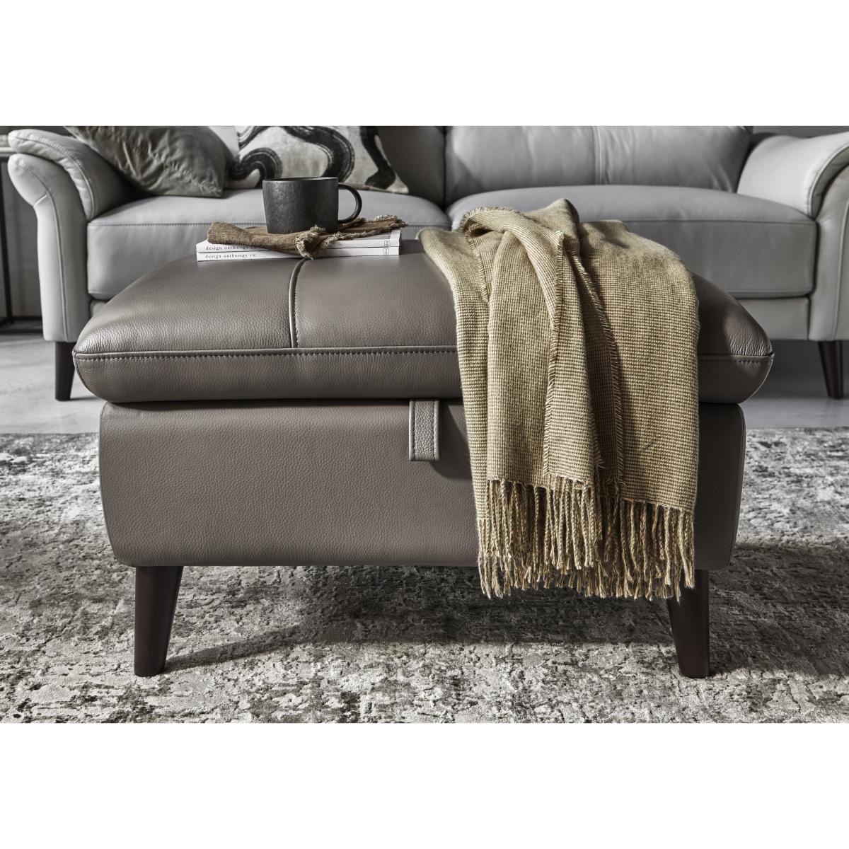 Looking for a leather footstool? This one is a winner, no pun intended. That’s because it has a roomy storage compartment and doubles as an extra seat. It’s also handmade and exceptional value. Why you’ll love it Timeless elegance meets luxurious modern comfort and practicality. High-quality craftsmanship at a great-value price. Roomy hidden storage compartment is so useful. Designed to complement all kinds of interiors from traditional to contemporary. Upholstered in buttery-soft 100% leather in a wide choice of colours. On tapered wood legs. Handcrafted for long lasting and superior comfort. Only at Furniture Village. This storage footstool is part of our Winner range. What you need to know Cushioning: foam. Leather has unique marks and characteristics with variation in colour and texture. Leather softens with use. Smoothing the tops of leather cushions prevents signs of visual comfort. Please read our upholstery care guide for more advice.