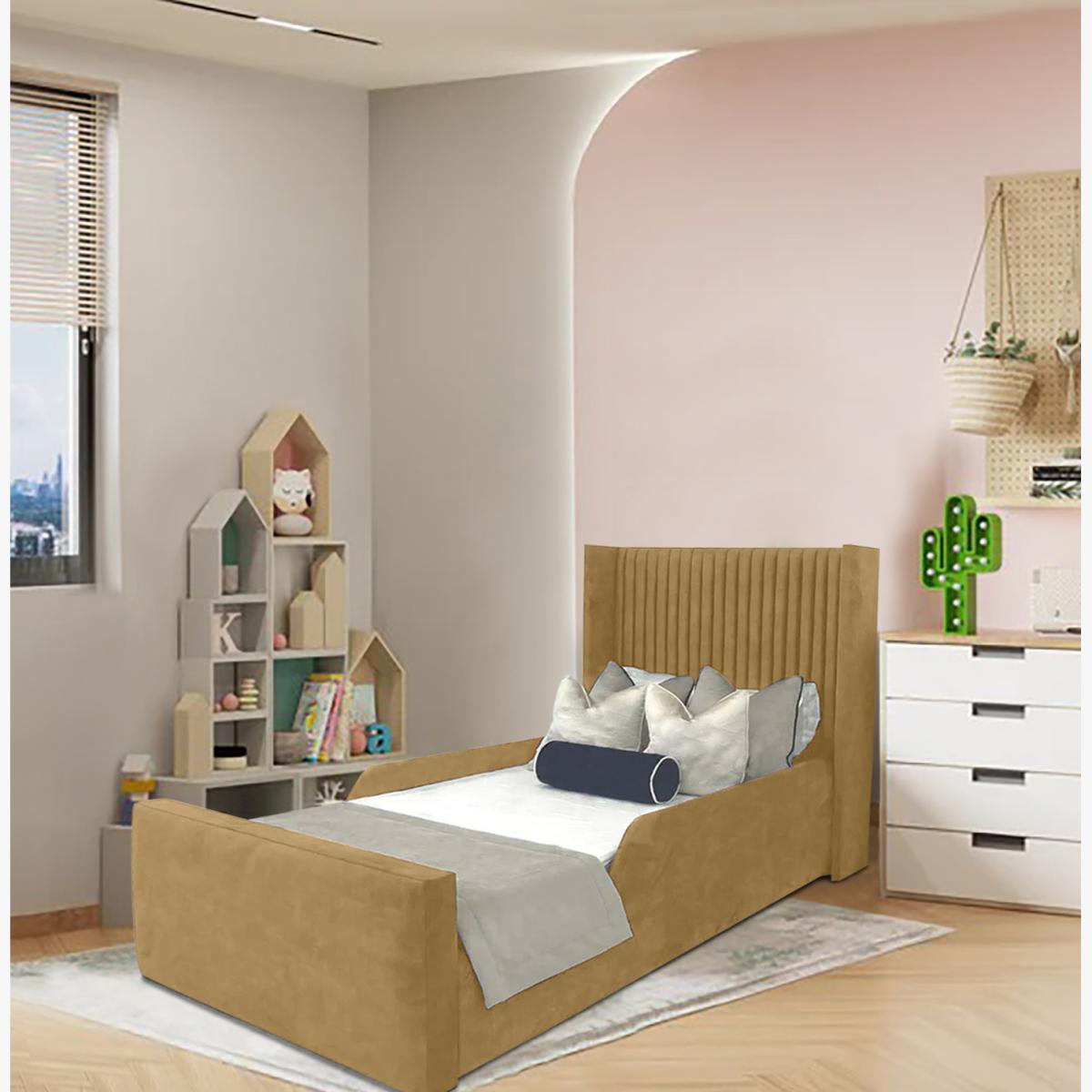 Winnie Kids Bed Plush Velvet with Safety Siderails - Beige / Small Double