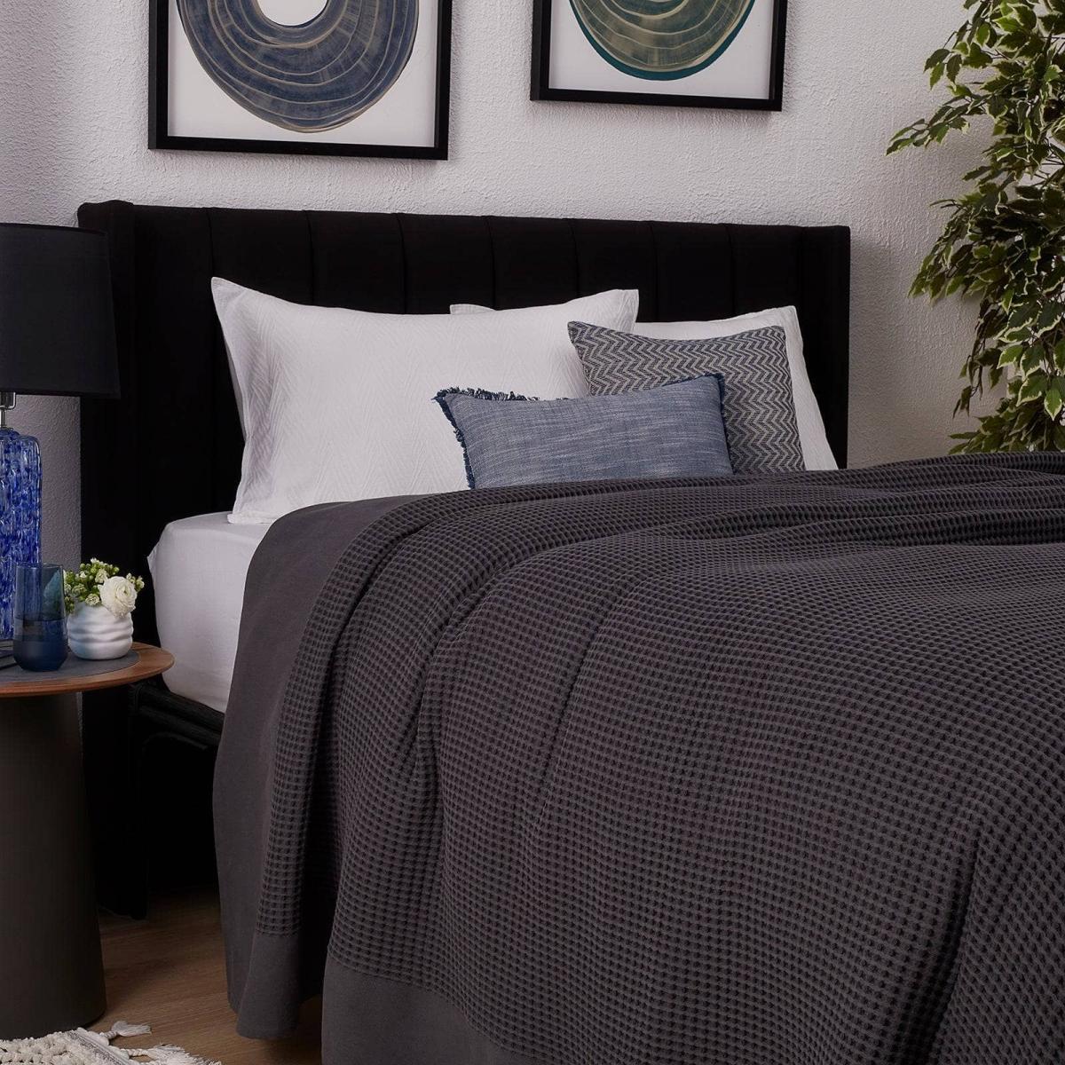 I love this Waffle bedspread for its versatile, neutral tone and cosy texture, making it a great layering piece for many interiors. Its anthracite grey hue works particularly well in contemporary and minimalist spaces, adding depth without overwhelming the decor. I recommend pairing it with crisp white bedding and textured cushions for a modern look, or with other muted tones for a calming, understated bedroom scheme. Practical styling tips include folding it neatly at the foot of the bed for a tidy appearance, or draping it loosely over the sides for a relaxed, inviting feel. Its 100% Turkish cotton composition also ensures it’s both breathable and easy to care for, making it a stylish yet practical choice.