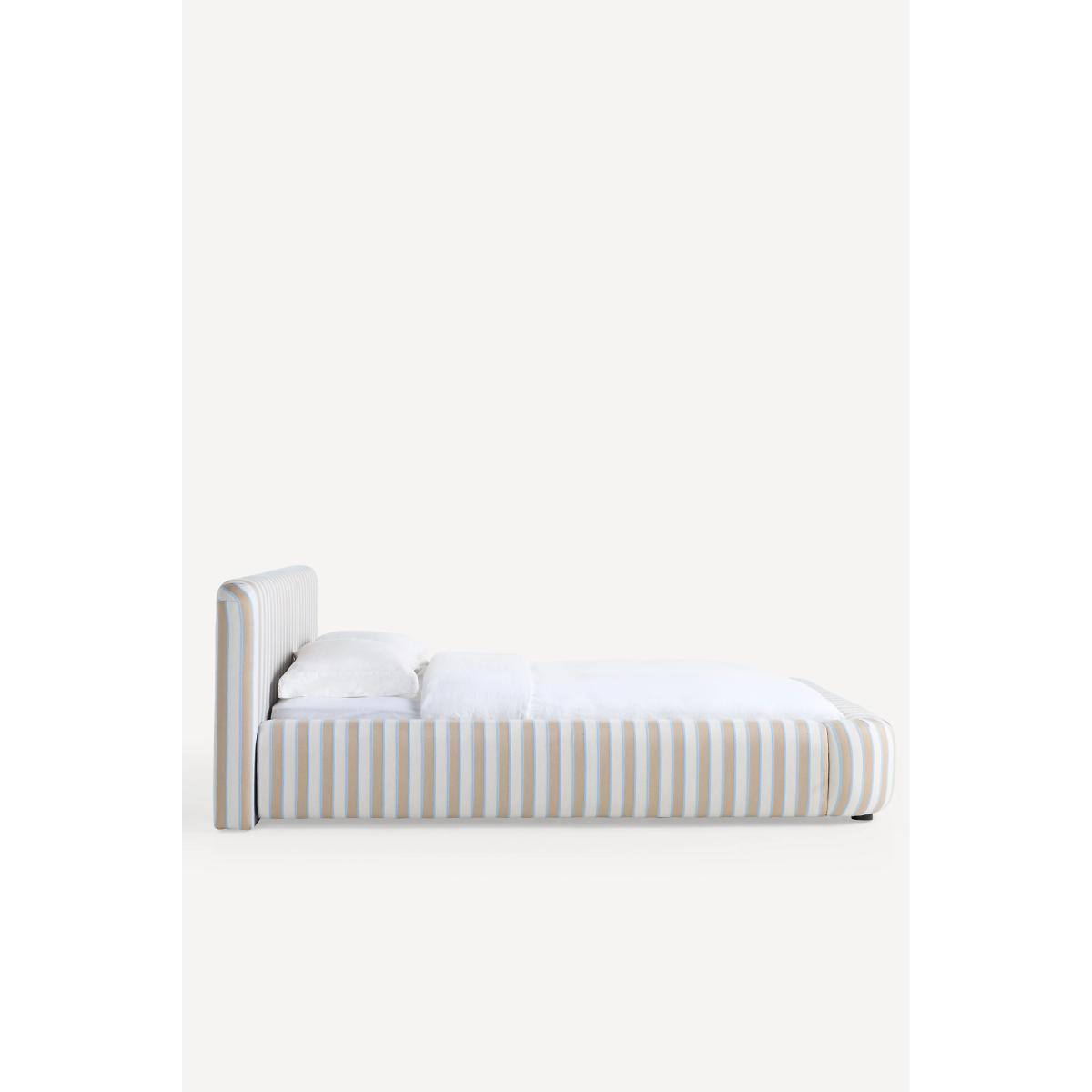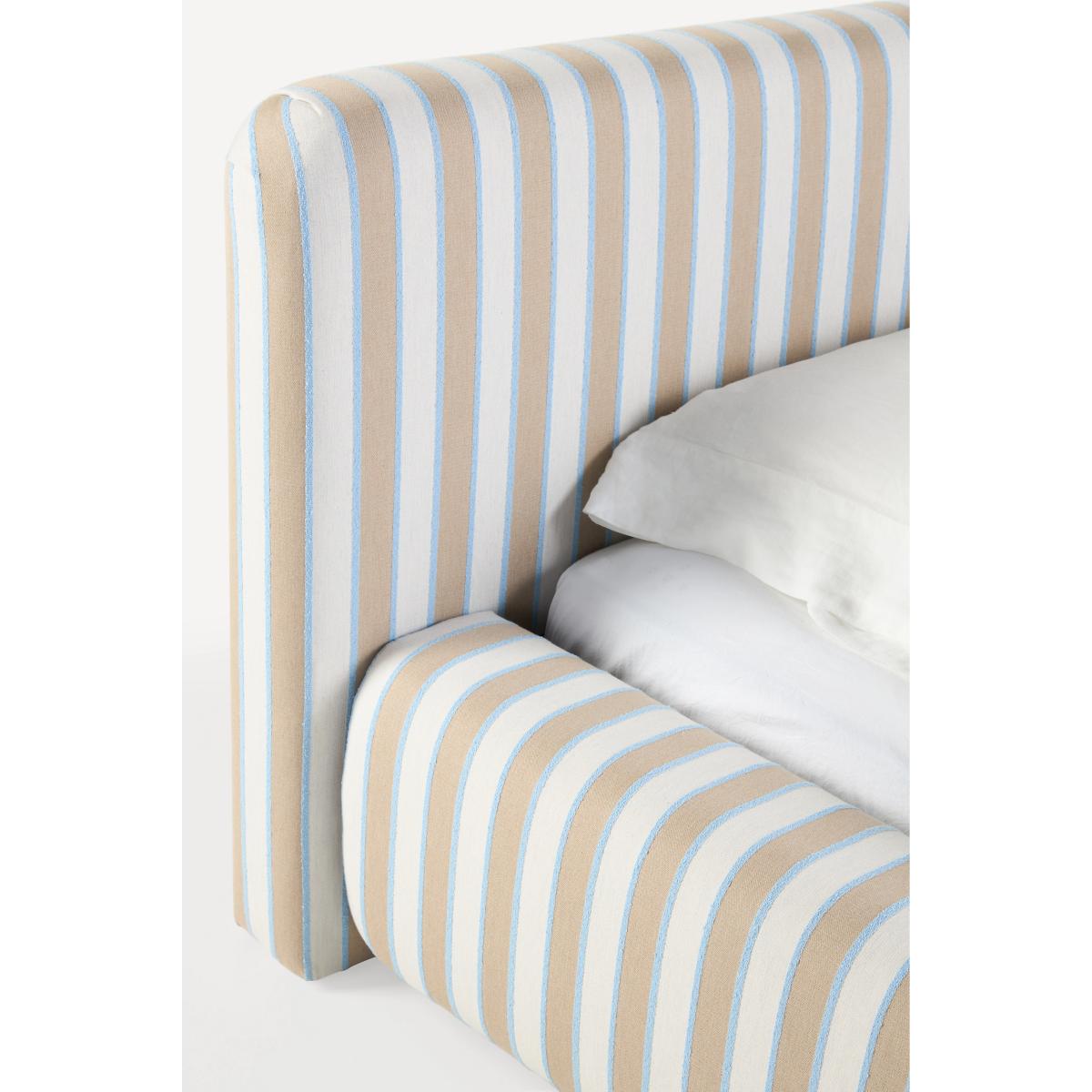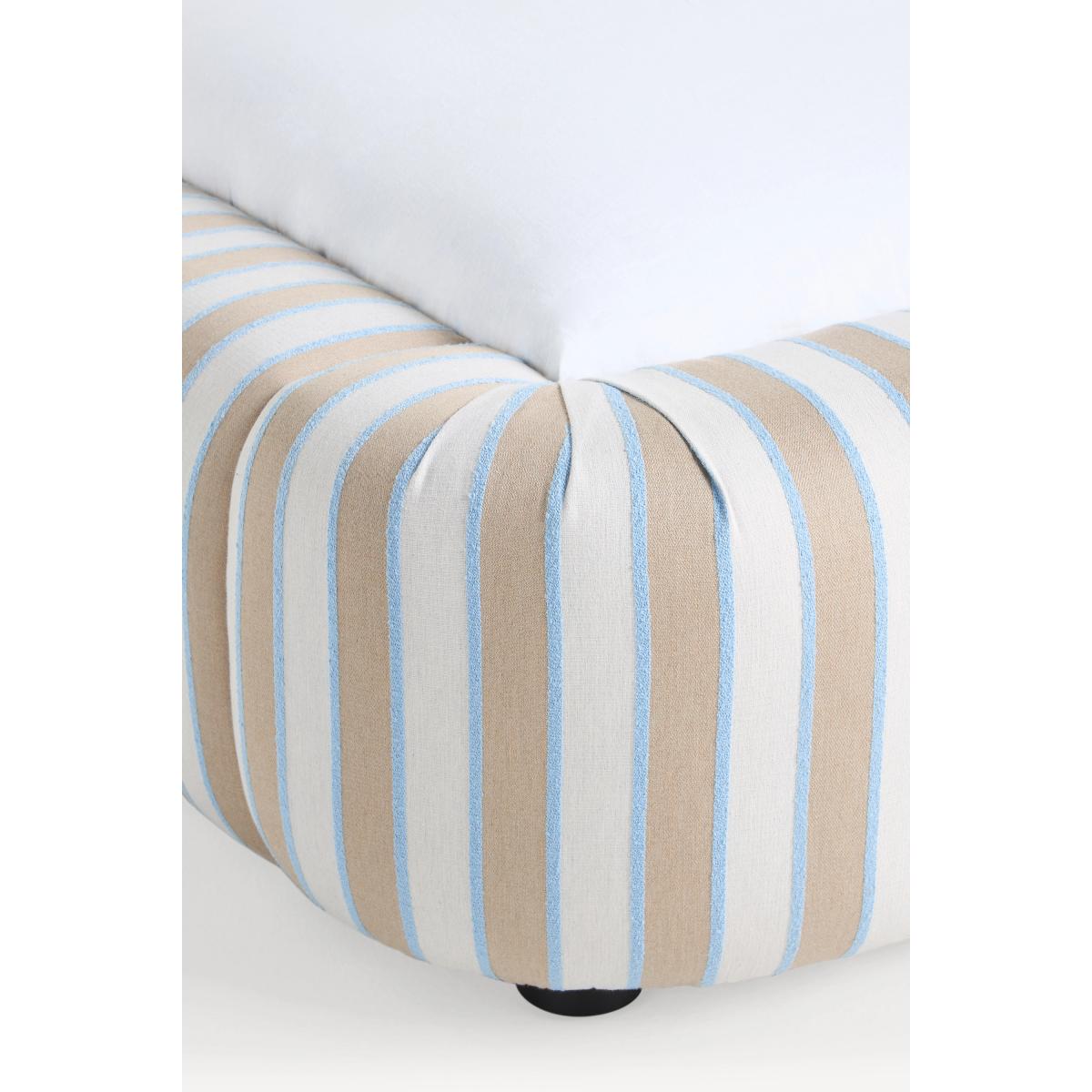 With rounded cushions that border the entirety of the frame, this silhouette beckons with feelings of warmth and coziness. * Woven upholstery: 100% polyester * Foam and fiber fill * Back of headboard not fully upholstered * Kiln-dried hardwood frame * Wooden legs are not removable * Birch wood slat support system; does not require a box spring * Professionally clean * Easily assembled upon delivery * Imported