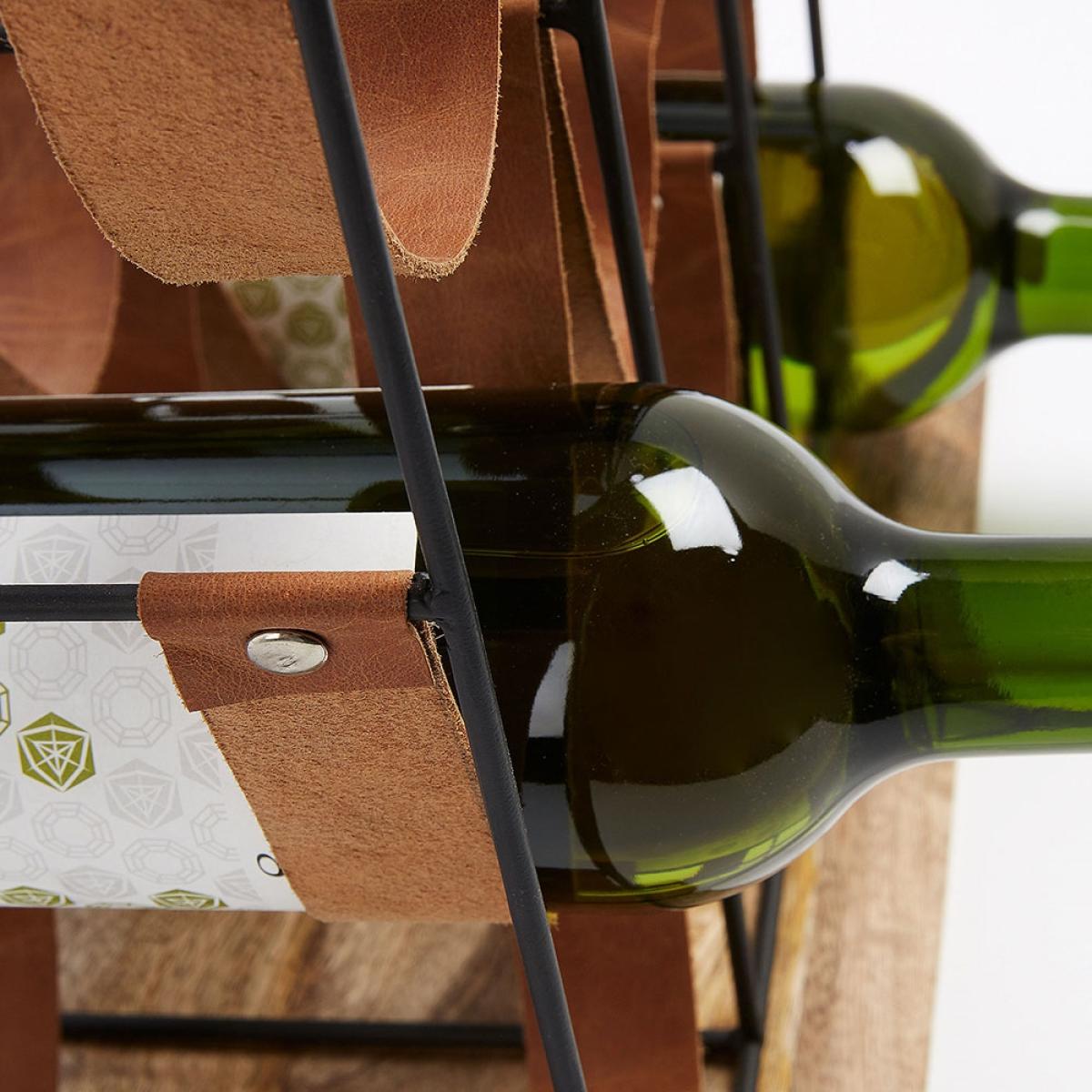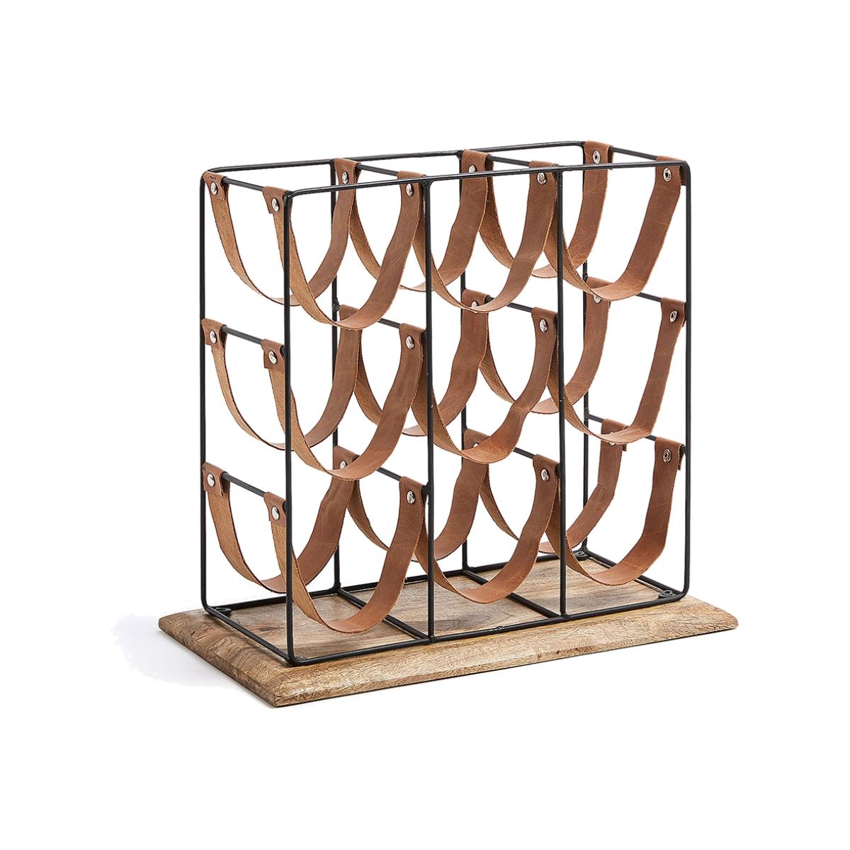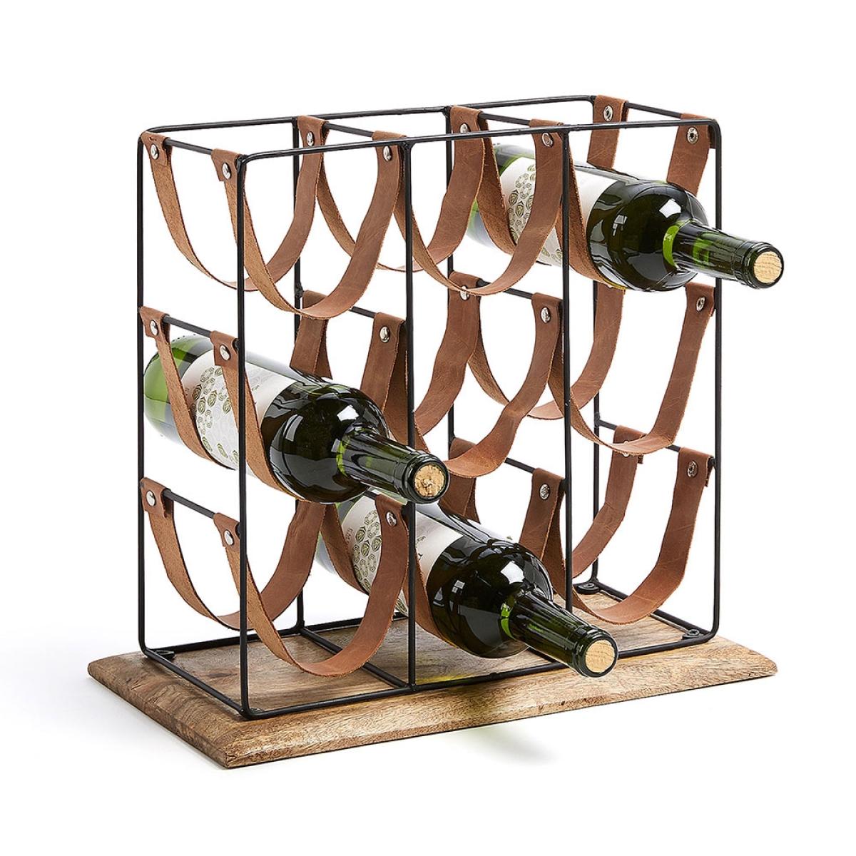 Display and store your favourite vinos with the Winnoe Wine Rack. Holding up to 9 bottles, the leather sling design will keep your reds, whites and ros. É. S safe! Perfect in the kitchen or dining room, pop one on top of a sideboard ready and waiting for your next dinner party or quiet night in. Made from natural mango wood with a black metal frame, it's certainly easy on the eye. Now which bottles will get pride of place?.
