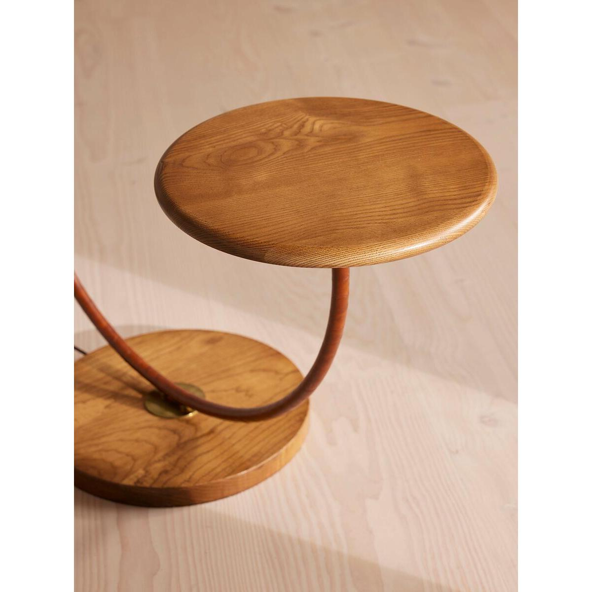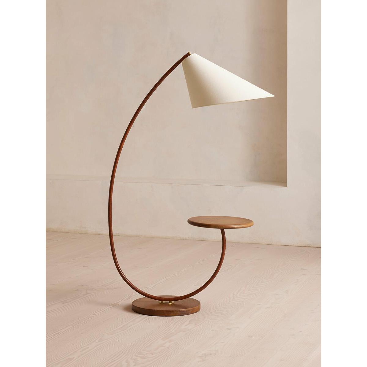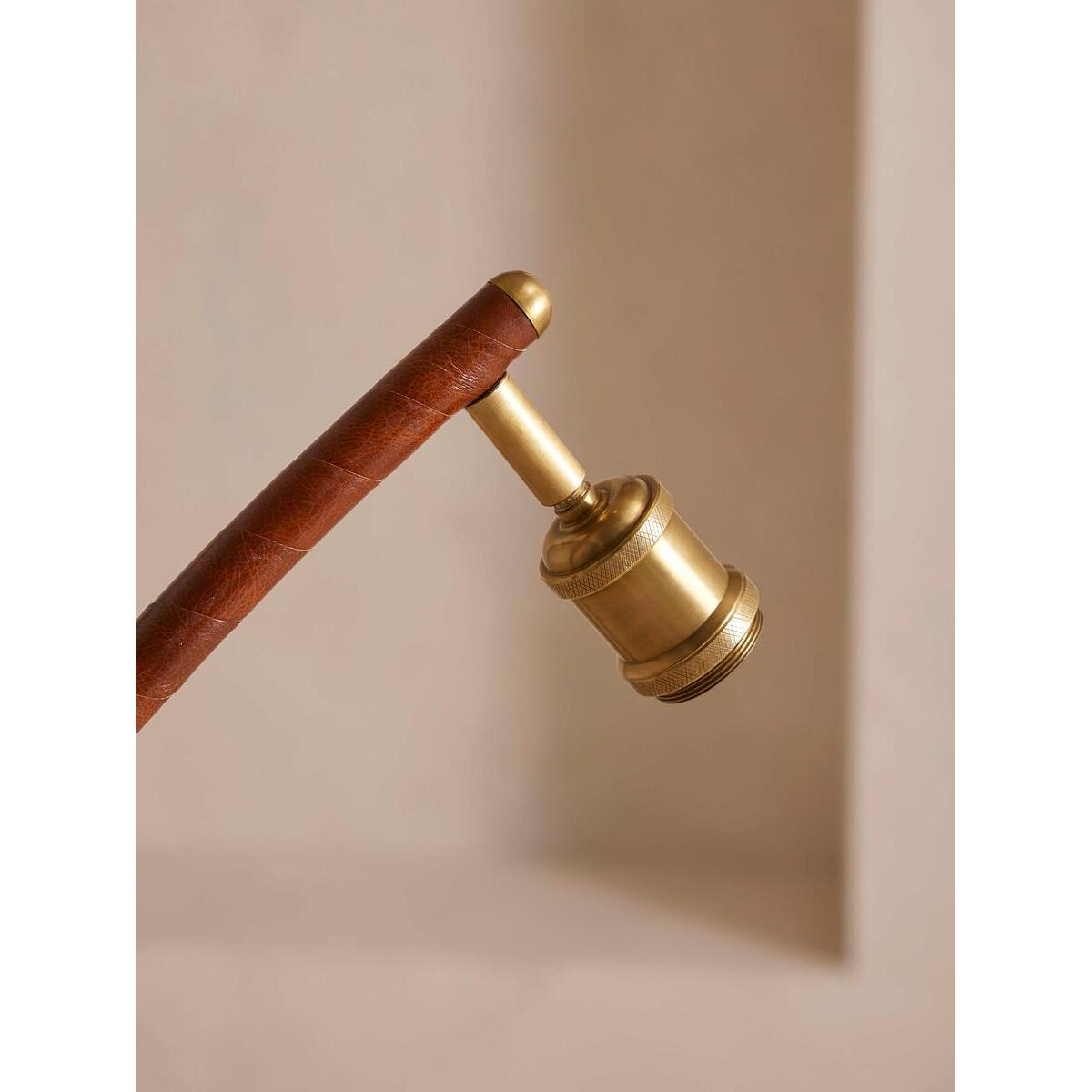 Our Winona floor lamp considers both style and function in one distinguished design. Inspired by Soho House Amsterdam, the sculptural arch shape has a leather-wrapped arm with a turned solid oak base and a co-ordinating side table top. A tapered linen shade futher elevates this unique piece to create a stand-alone statement in any corner of the home. All of our portable lamps are fitted with dimmer switches, allowing you to tailor the light level to your mood. Arch floor lamp and table in one Leather-wrapped antique brass arm Natural linen tapered shade Turned solid oak base and table top Recommended bulb:Tala 6W Globe LED Inspired by Soho House Amsterdam