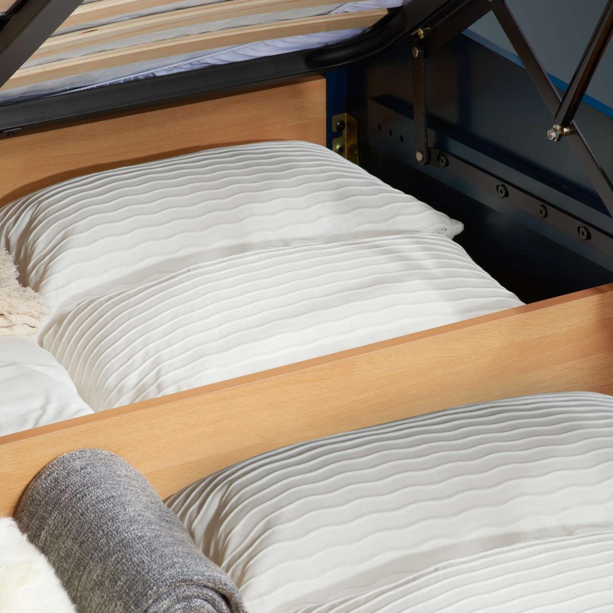 I love this navy Winslow Ottoman bed because of its clean lines and versatile colour that works well in both modern and traditional interiors. Its practical storage solution makes it ideal for maximising space in bedrooms, especially in rooms with limited footprint. The navy hue adds a rich, sophisticated touch that pairs beautifully with neutral tones or can be a statement piece when styled with patterned cushions or textured throws. For a cohesive look, consider styling with coordinating furniture or accessories in natural woods or soft greys to keep the space feeling calm and inviting. This bed’s understated yet stylish design makes it a practical centrepiece that doesn’t compromise on style.