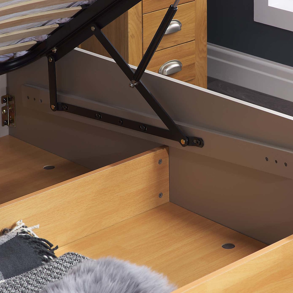 This stunning bed frame features spacious storage space beneath the bed, gas pistons to allow for easy opening and sprung slats to ensure fantastic mattress support and ventilation. Please note, unfortunately we cannot deliver this item to Northern Ireland or the Channel Islands.